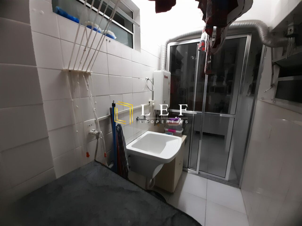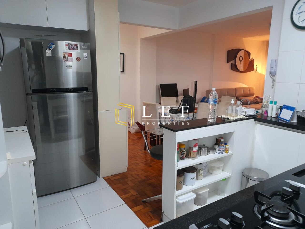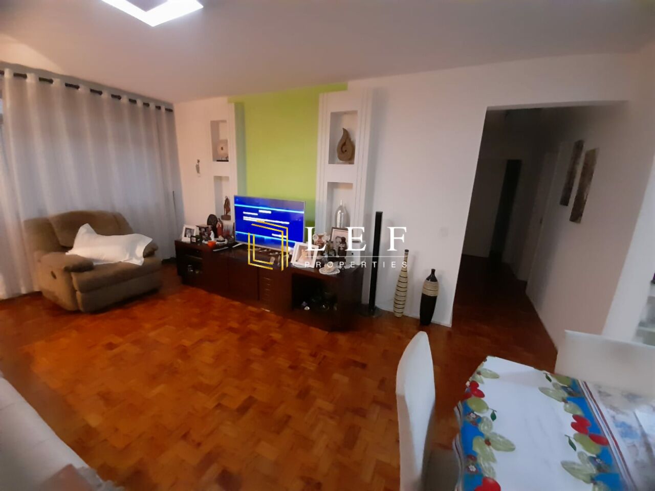Apartamento dispõe de 2 dormitórios, sendo 1 suíte, living para 3 ambientes, banheiro social, cozinha, despensa e área de serviços com quarto e banheiro para empregada, totalizando 100m2.