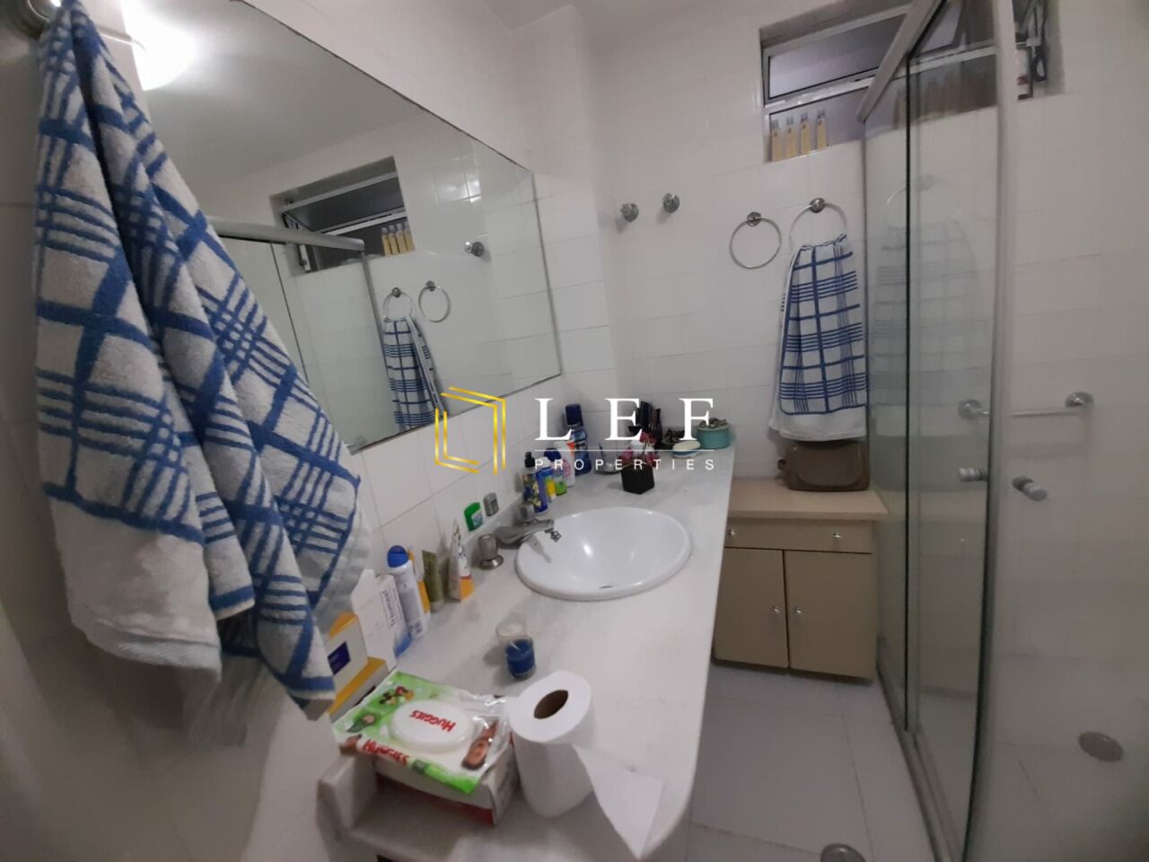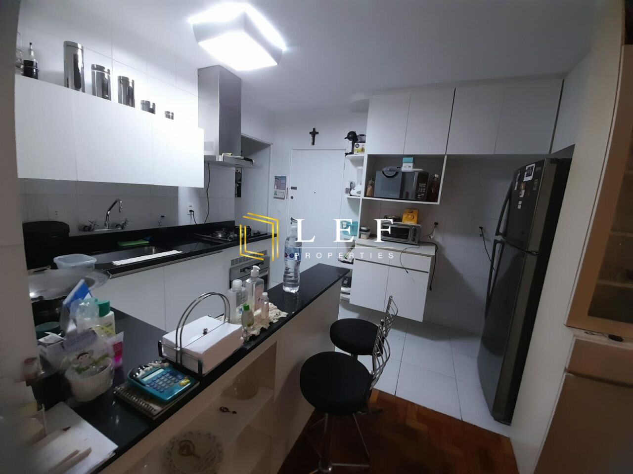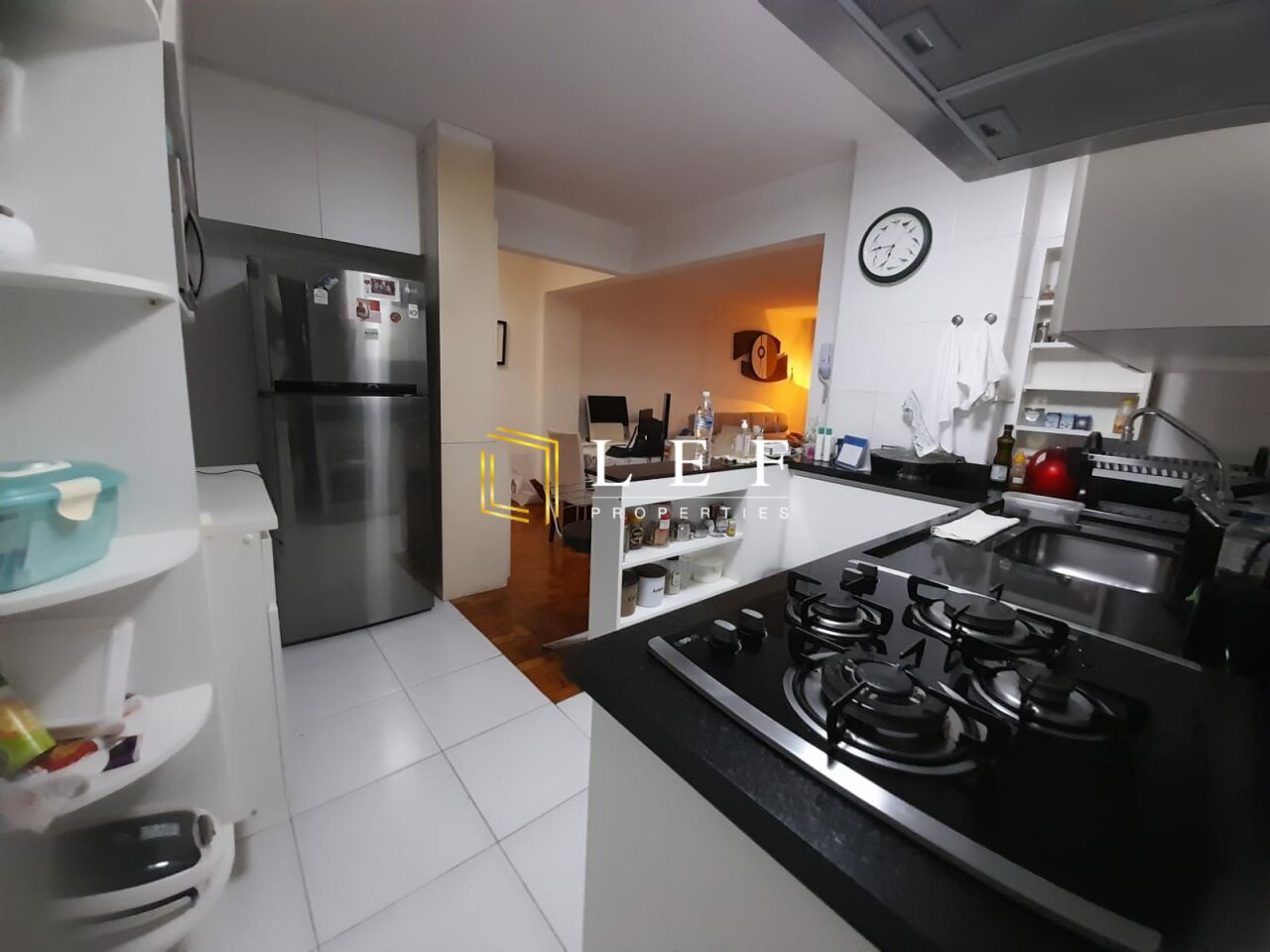 Apartamento dispõe de 2 dormitórios, sendo 1 suíte, living para 3 ambientes, banheiro social, cozinha, despensa e área de serviços com quarto e banheiro para empregada, totalizando 100m2.