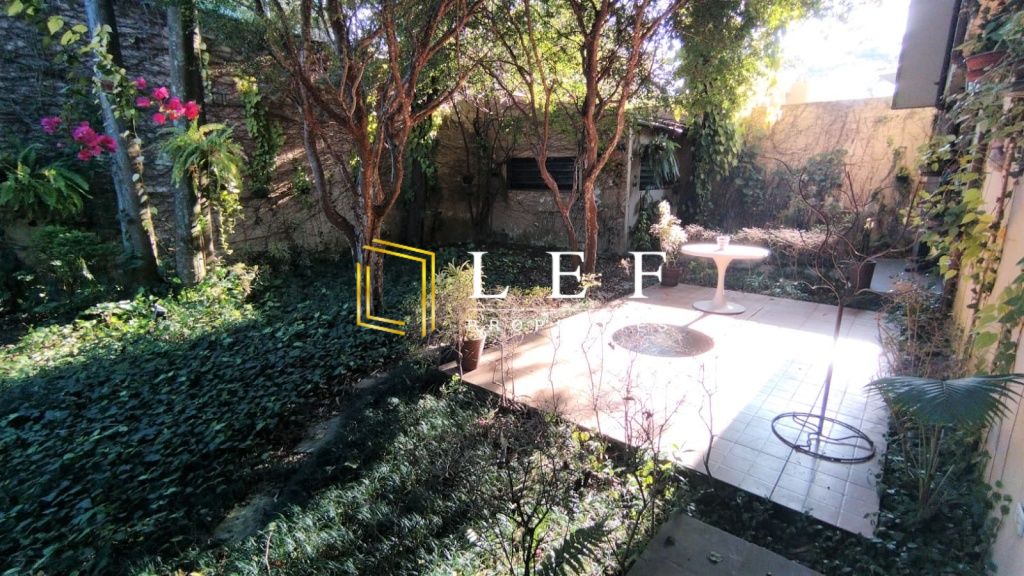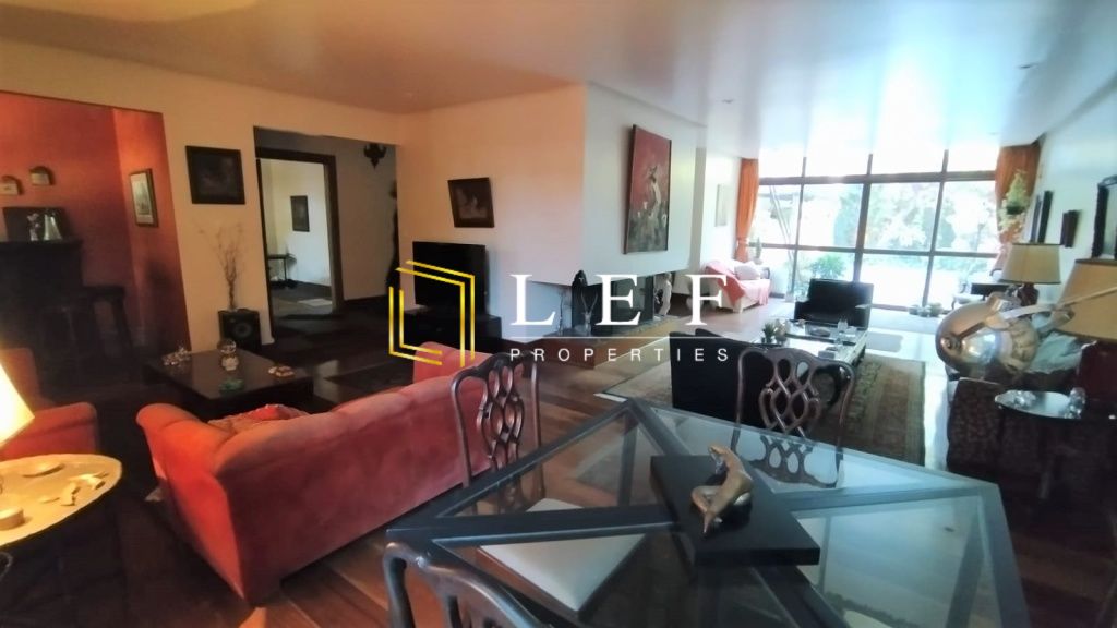 2 jardins amplos e frondosos, com piscina, sala ampla com lareira e bar, vista para os jardins.