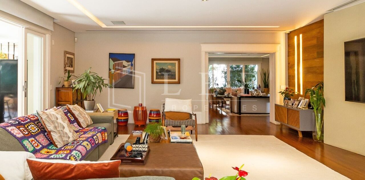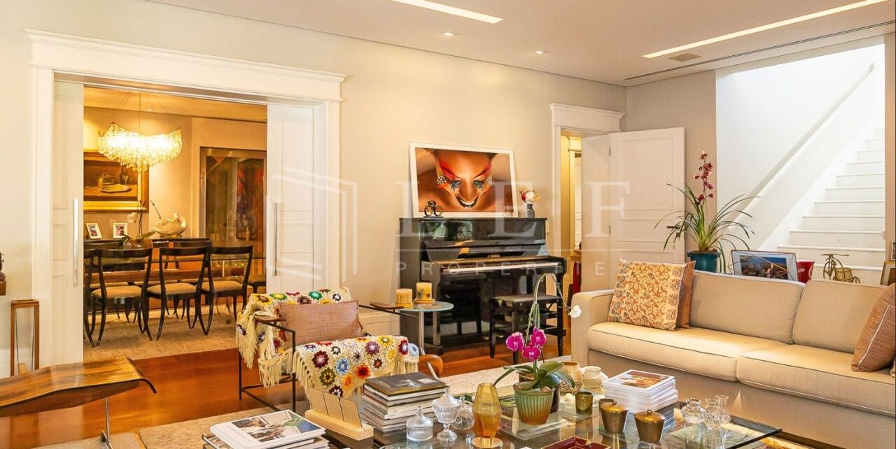 Esta residência de alto padrão é um verdadeiro ícone de sofisticação, onde a arquitetura se encontra com o bem-estar. Com 580m² de área construída em um generoso terreno de 1.072m², cada espaço foi concebido para elevar a experiência de morar. O living, totalmente integrado aos jardins, convida a luz natural para o interior, criando uma conexão orgânica com o lazer privativo que inclui piscina e um espaço gourmet impecável. É o cenário perfeito tanto para grandes recepções quanto para momentos de tranquilidade absoluta. Destaques do Projeto: Acomodações de Luxo: 4 suítes amplas, com destaque para a master equipada com banheiros senhor e senhora e closets individuais. Conveniência e Tecnologia: Adega climatizada, escritório privativo, climatização completa e gerador próprio. Segurança e Logística: 6 vagas de garagem e sistema de segurança de última geração. Localizada em uma das ruas mais arborizadas e valorizadas do Jardim América, a propriedade oferece a rara combinação de máxima privacidade com fácil acesso aos melhores clubes e escolas de São Paulo.