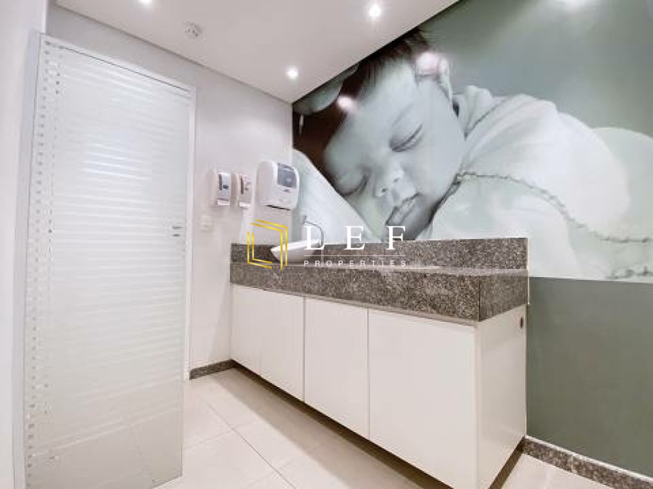 Térreo com pé direito duplo, recepção com catracas, piso em granito, ar condicionado, copa do bebê com espaço para amamentação e banheiro para portadores de necessidades especiais.