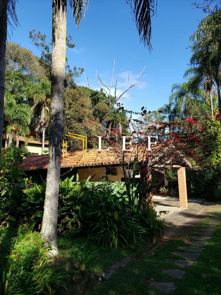 Casa 1 com 400m² térrea, estilo moderno em concreto armado aparente. 3 dormitórios, sendo 1 suíte, lavabo, mais 1 banheiro, cozinha, lavanderia, garagem coberta, 2 quartos e 1 banheiro para funcionários. Jardim de inverno, sala de jantar e estar amplos. Lareira. Cozinha com armários Kitchen.