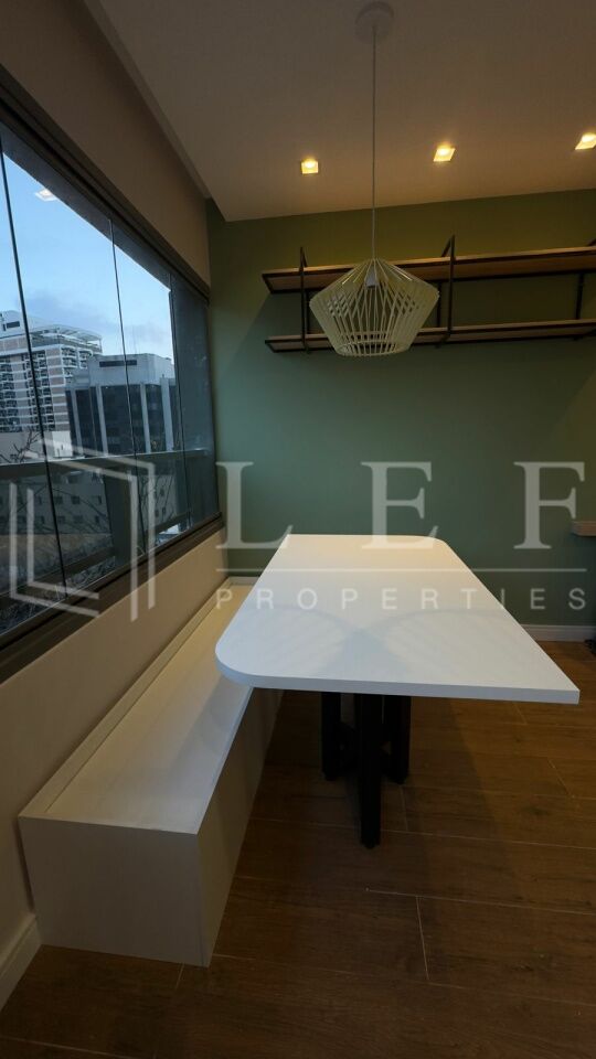 Apartamento dispõe de 1 suíte, living para 2 ambientes com varanda, lavabo e cozinha, totalizando 44m2.