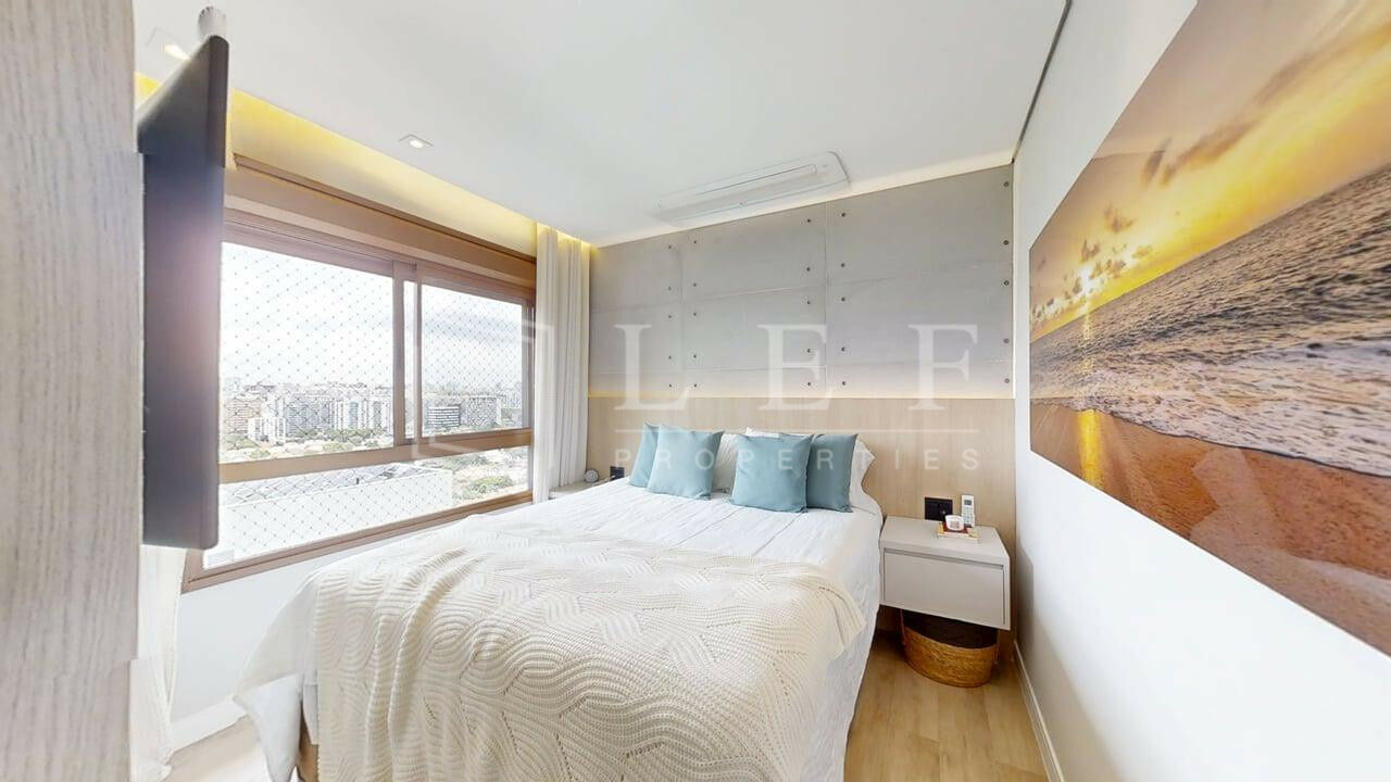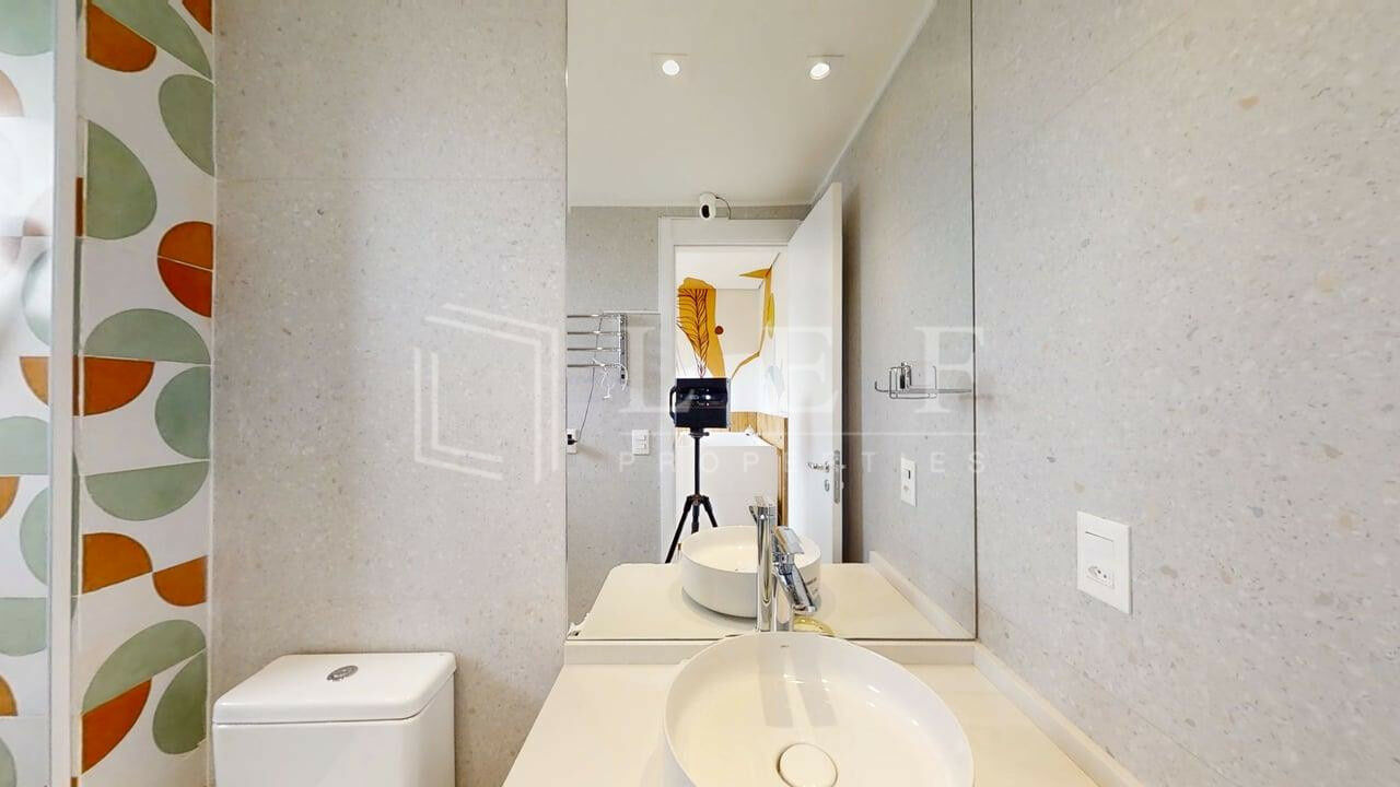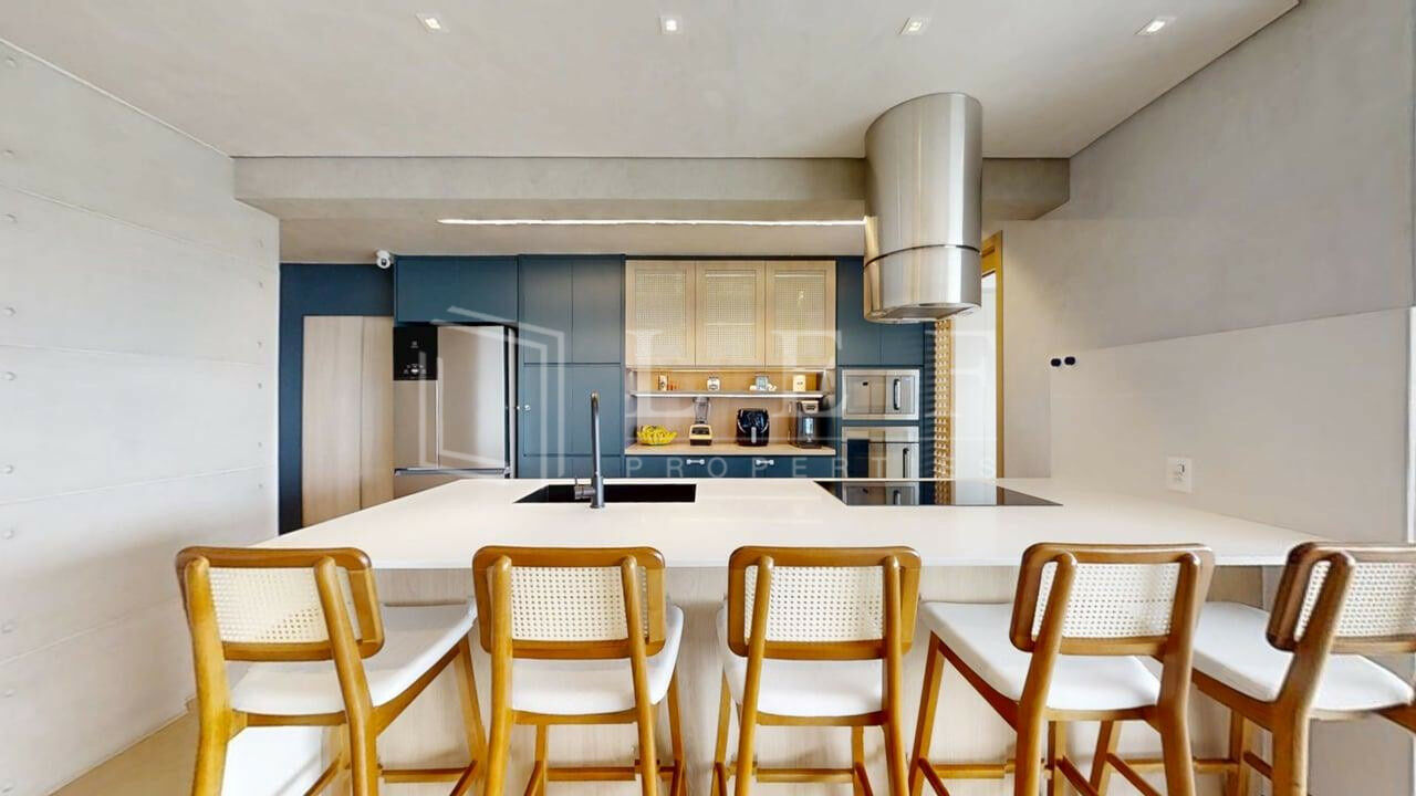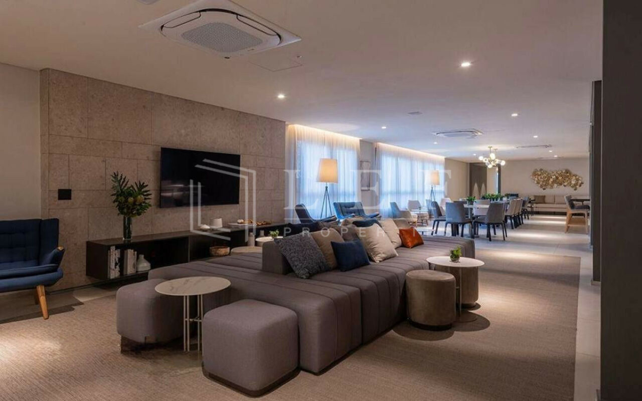 Este apartamento de 147 m² no Condomínio Stella Campo Belo combina projeto assinado, automação completa e um design sofisticado em cada detalhe. A sala em três ambientes integra estar, TV e gourmet com perfeito equilíbrio, enquanto a cozinha americana apresenta cristaleira, adega climatizada e eletros de alto padrão. O escritório oferece privacidade total, e a área de serviço traz soluções modernas, como varal automatizado. São três suítes confortáveis, incluindo uma master impecável, com super closet simétrico, penteadeira e um banheiro revestido em pedras naturais Hijau, equipado com chuveiro de teto e janelas acústicas. O apartamento conta com móveis planejados em Nogueira Florida, painéis mimetizados que ocultam portas, sofá automatizado tipo ilha e uma mesa de jantar orgânica assinada. A varanda gourmet possui churrasqueira a gás com coifa inox e exaustor próprio. A tecnologia é um diferencial: som ambiente, Alexia integradas, rede cabeada MESH, janelas motorizadas com sensores de chuva, rolo automatizado na varanda, iluminação indireta em todo o imóvel e duchas com mono comando.