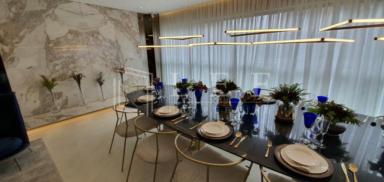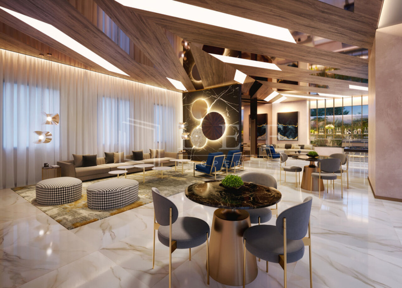 Lazer com academia, brinquedoteca, lounge externo com lareira, lounge bar, espaço gourmet com pergolado retrátil, piscina com SPA Arquitetura atemporal, clássica/contemporânea, guarda corpo em vidro, detalhes em molduras e frisos na torre, pé direito duplo nno lobby, pavimento do lazer elevado Acabamento diferenciado, suíte com terraço, banheiro da suíte master com espaço para banheira ou 2 chuveiros, terraço técnico separad