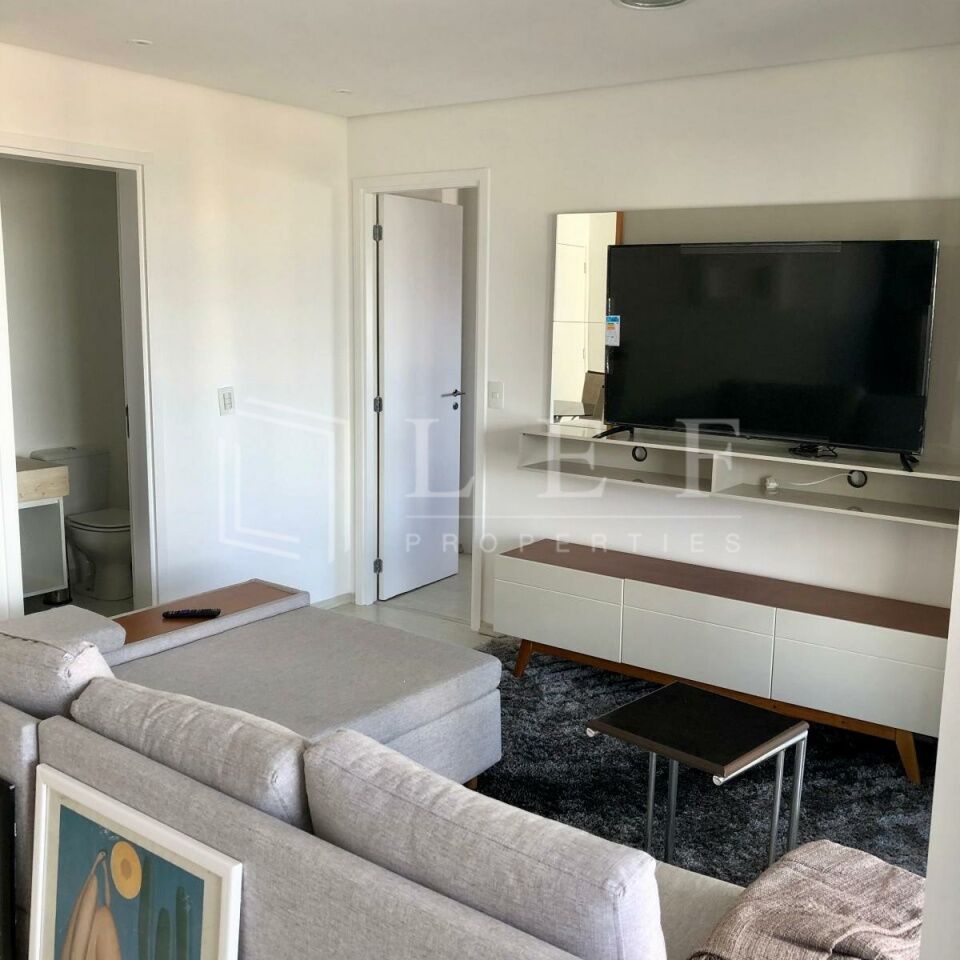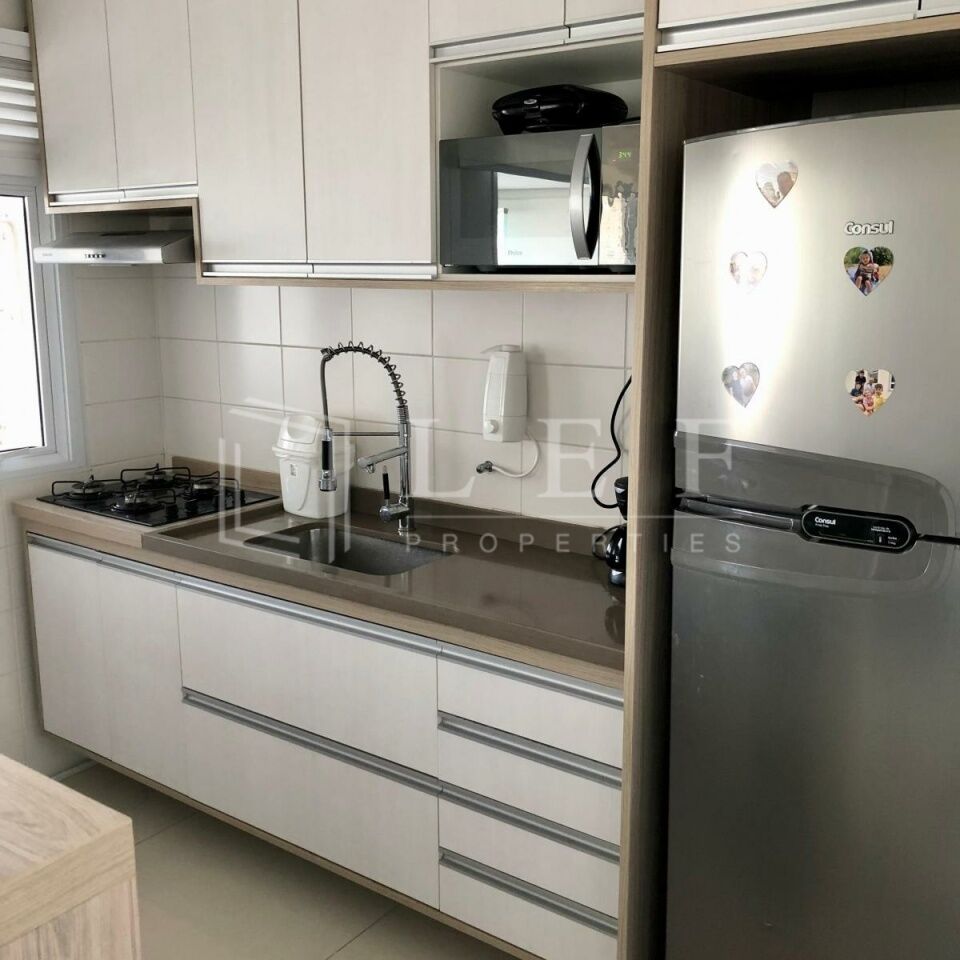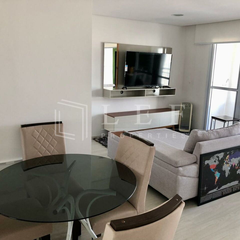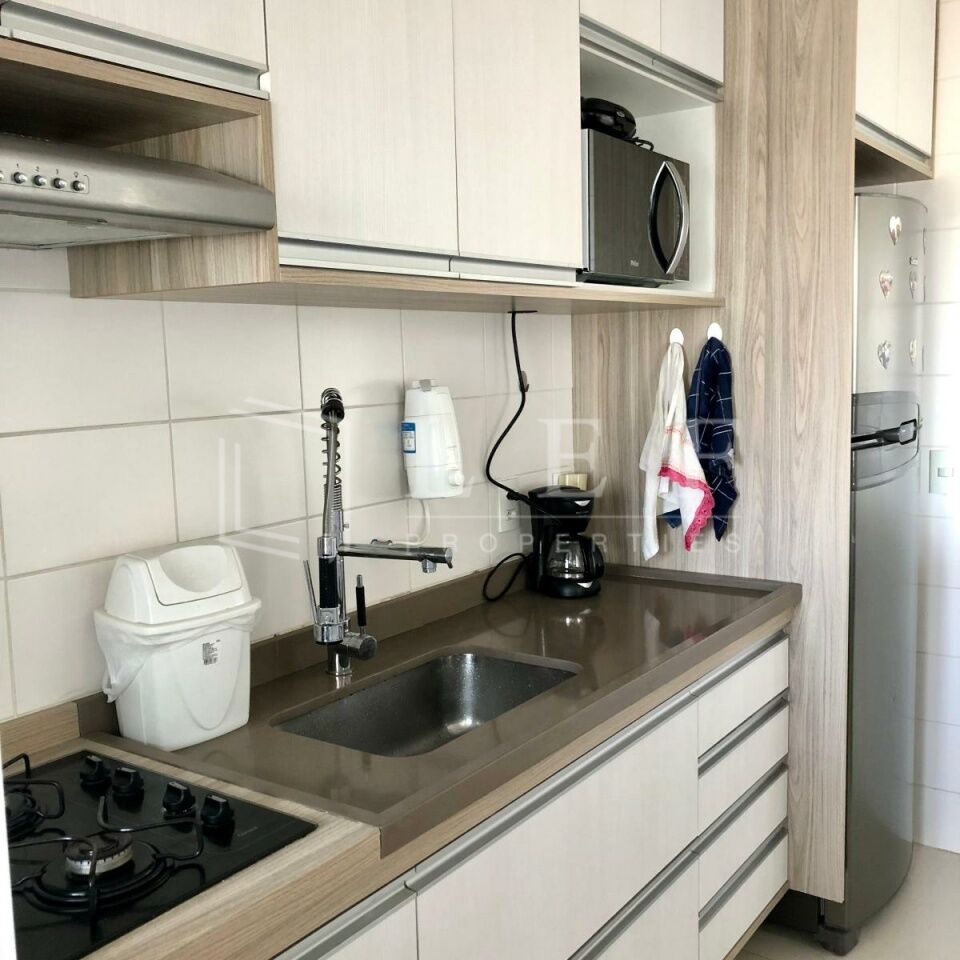 Apartamento mobiliado, dispõe de suíte, living para 2 ambientes, varanda, banheiro social, cozinha americana e área de serviços, totalizando 74 m².