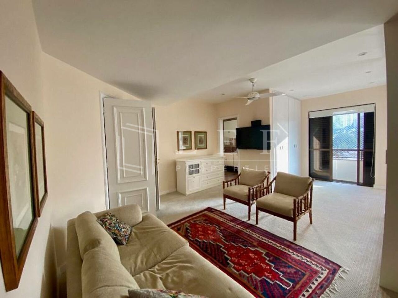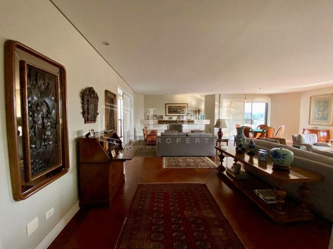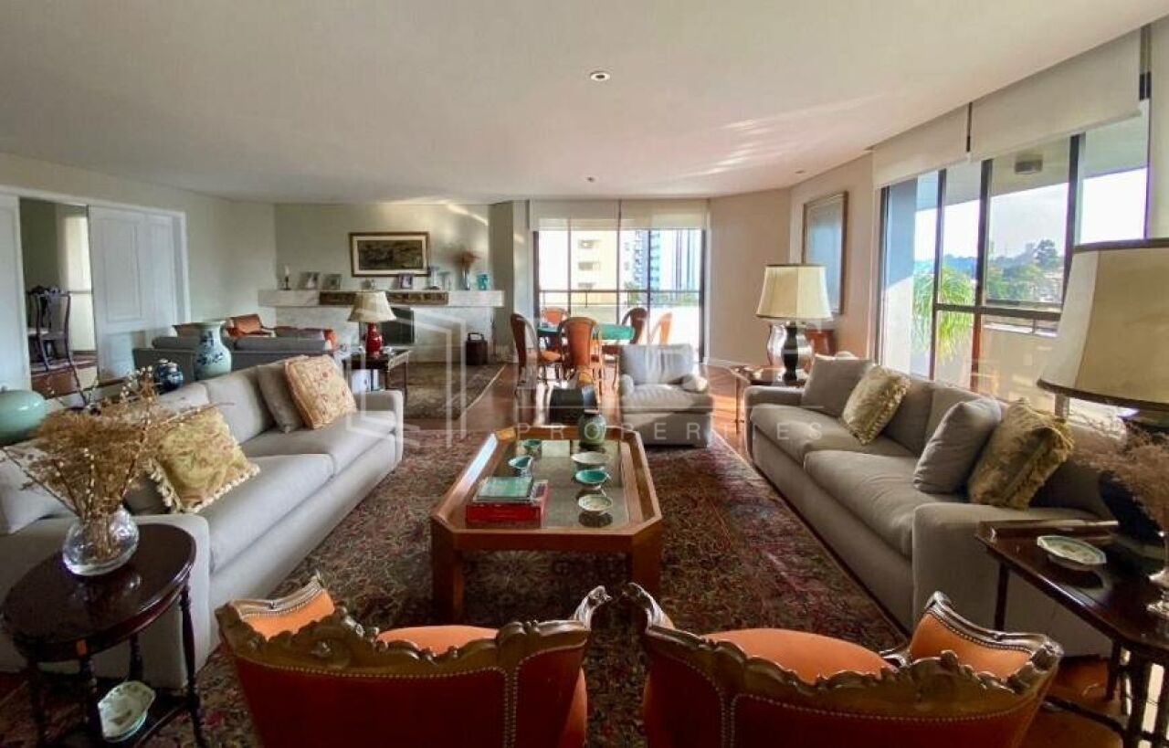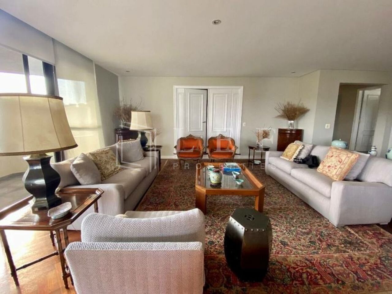 Apartamento dispõe de 4 suítes, living para 3 ambientes com varanda, banheiro social, lavabo, copa, cozinha e área de serviços com quarto e banheiro para empregada, totalizando 312m2.