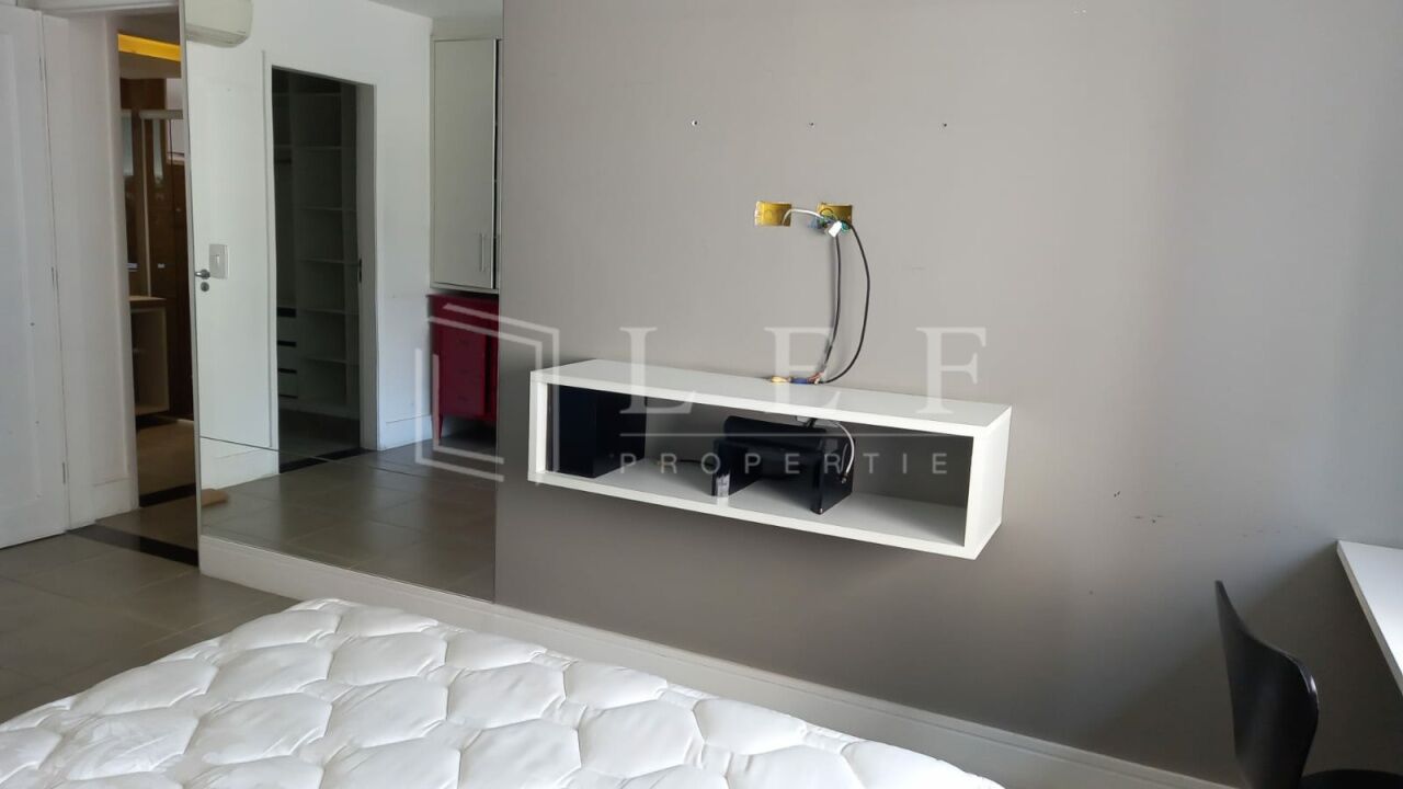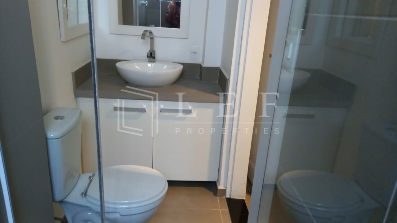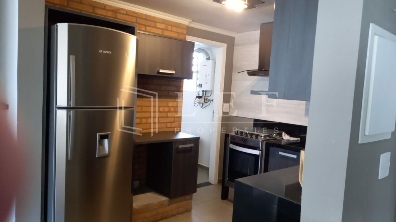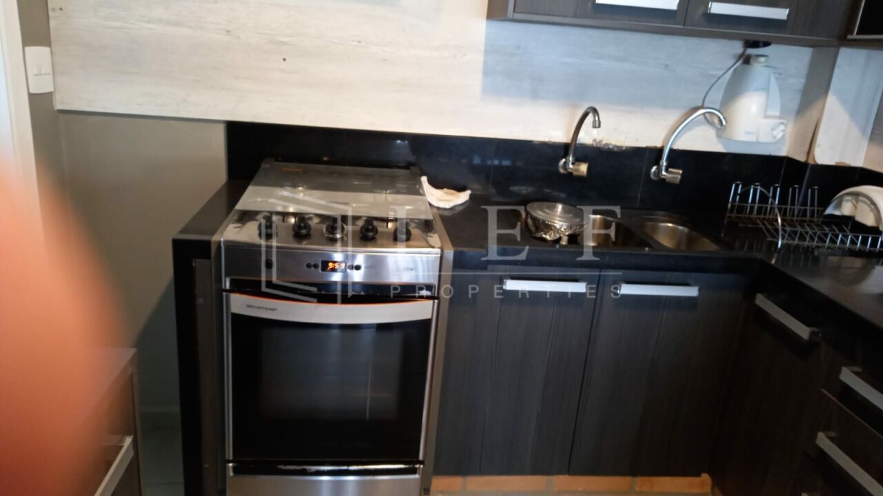 closet, lavabo, sala ampla, cozinha aberta para sala, e área de serviço. Apartamento possui ar condicionado quente e