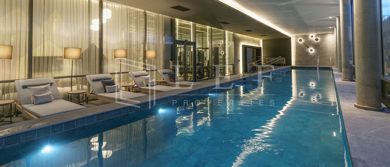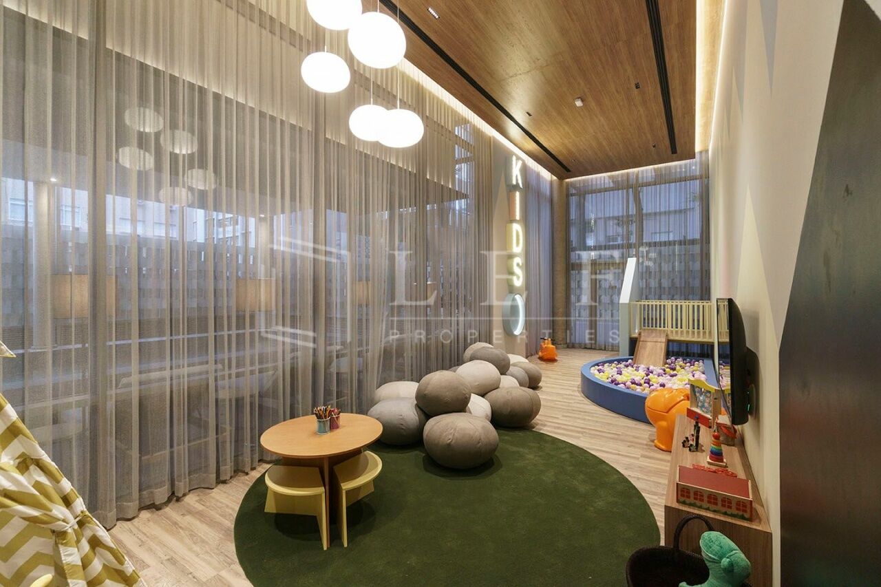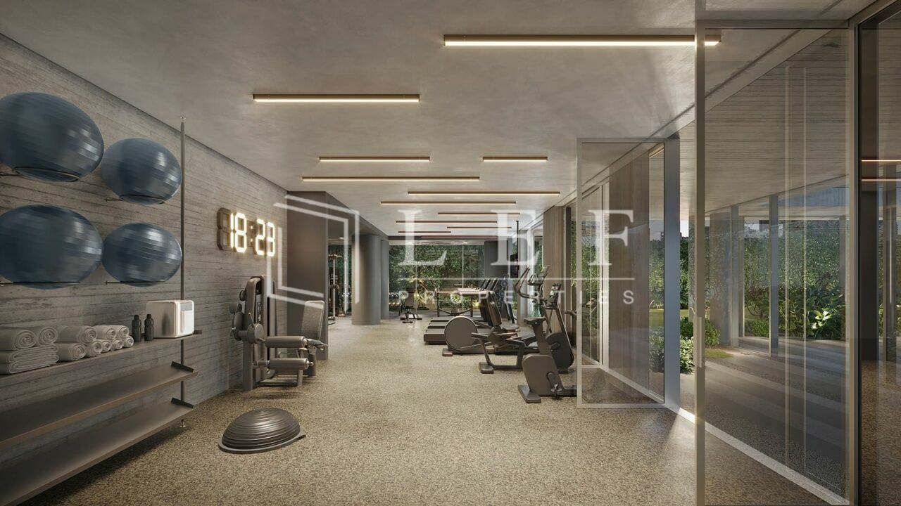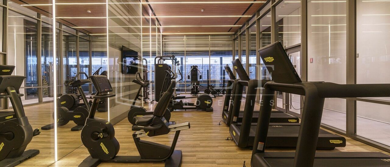 Guarita, sala de motorista, sala delivery, hall social com dois elevadores, espelho d´água, salão gourmet, lounge externo de apoio ao salão gourmet, brinquedoteca, playground, fitness, vestiários, sauna e piscina coberta com raia de 20 m.