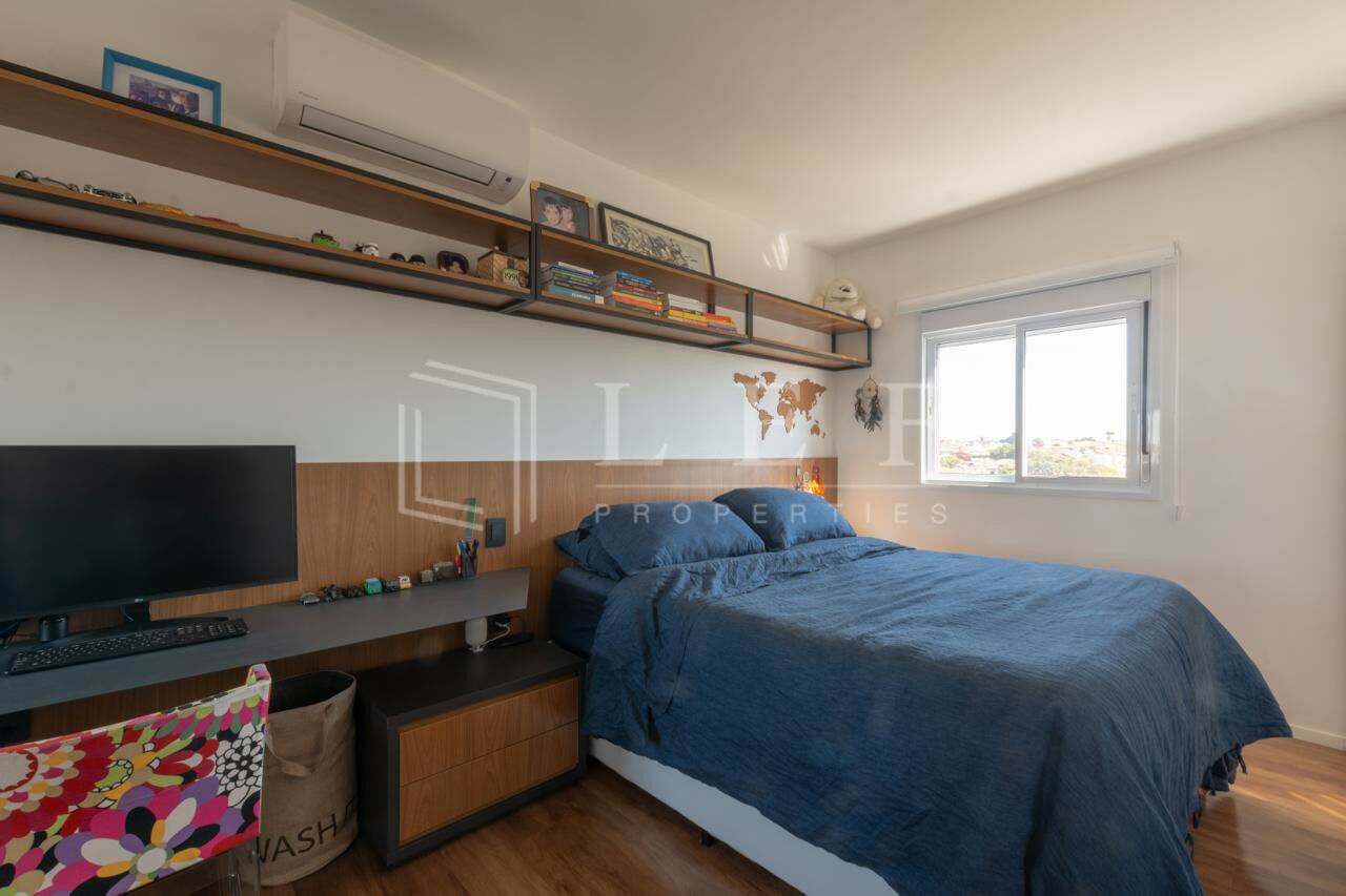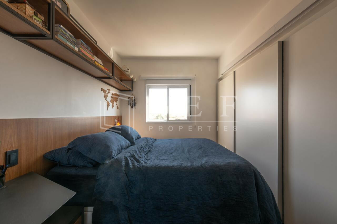 Apartamento com 1 suíte, sala com sacada e bar, além de segurança com porta blindada, 1 vaga de garagem. Totalmente decorado e mobiliado. Reformado para uso próprio. Condomínio com portaria 24h, academia, piscina, salão de festas, churrasqueira, playground, lavanderia coletiva e espaço gourmet.