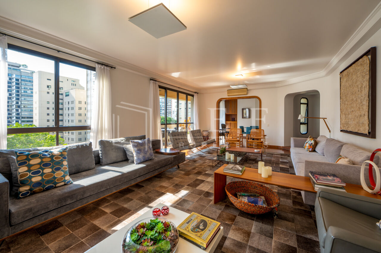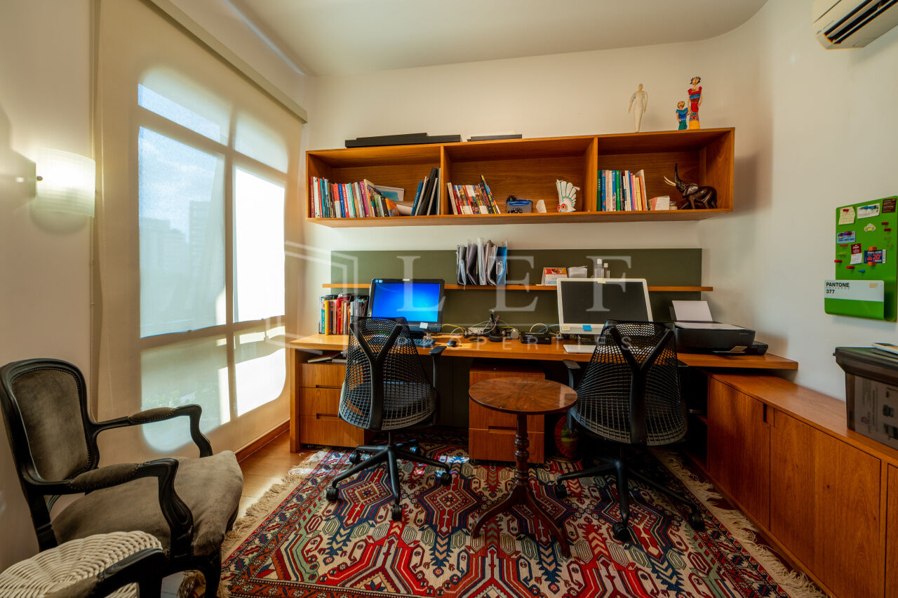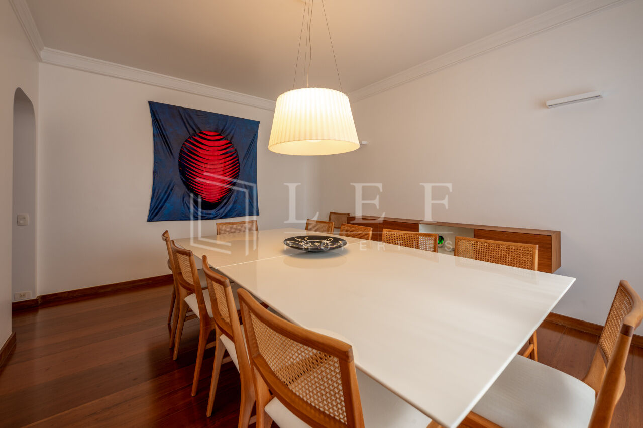 LEFPR: Venda, apartamento maravilhoso, na melhor localização da Vila Nova Conceição, próximo ao Parque do Ibirapuera, vista para o verde das copas das árvores do entorno. Com 4 dormitórios, sendo 3 suítes uma master com 2 banheiros, eler e ela, A quarta suíte foi unificada com outra suíte mas pode ser revertida facilmente. Um por andar com hall privativo, sala de estar, lavabo, cozinha, área de serviço, espaço gourmet, varanda na sala e suítes , possui 4 vagas de garagem, mais imenso depósito privativo. Condomínio com academia, playground, imponente salão de festas, sala de bilhar e muita segurança.
