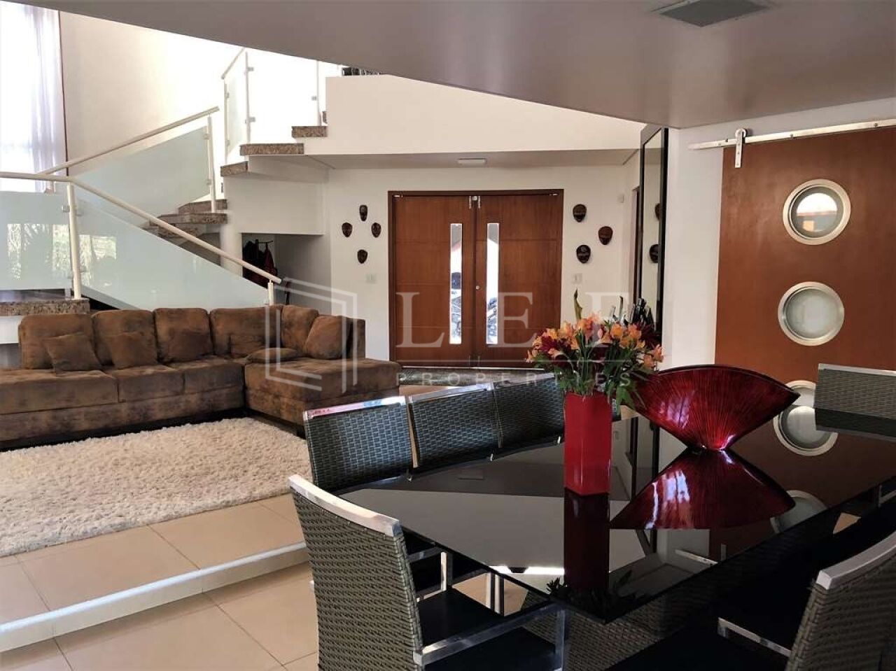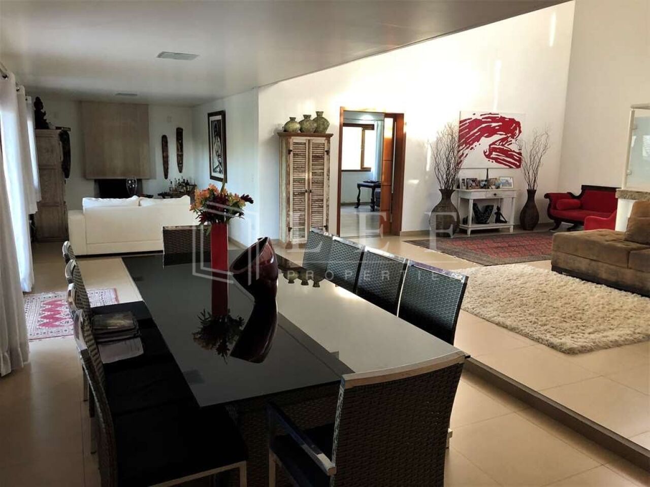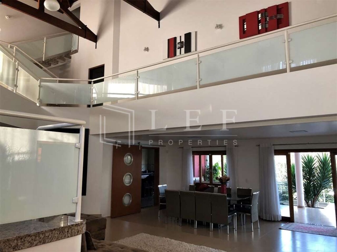 - Living para quatro ambientes, com pé direito duplo e lareira;