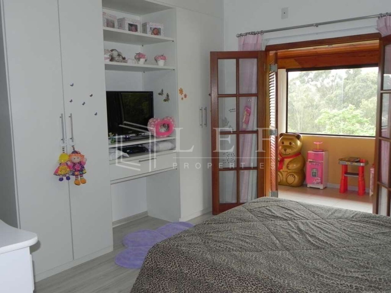 - Sala de home theater isolada por portas de correr;