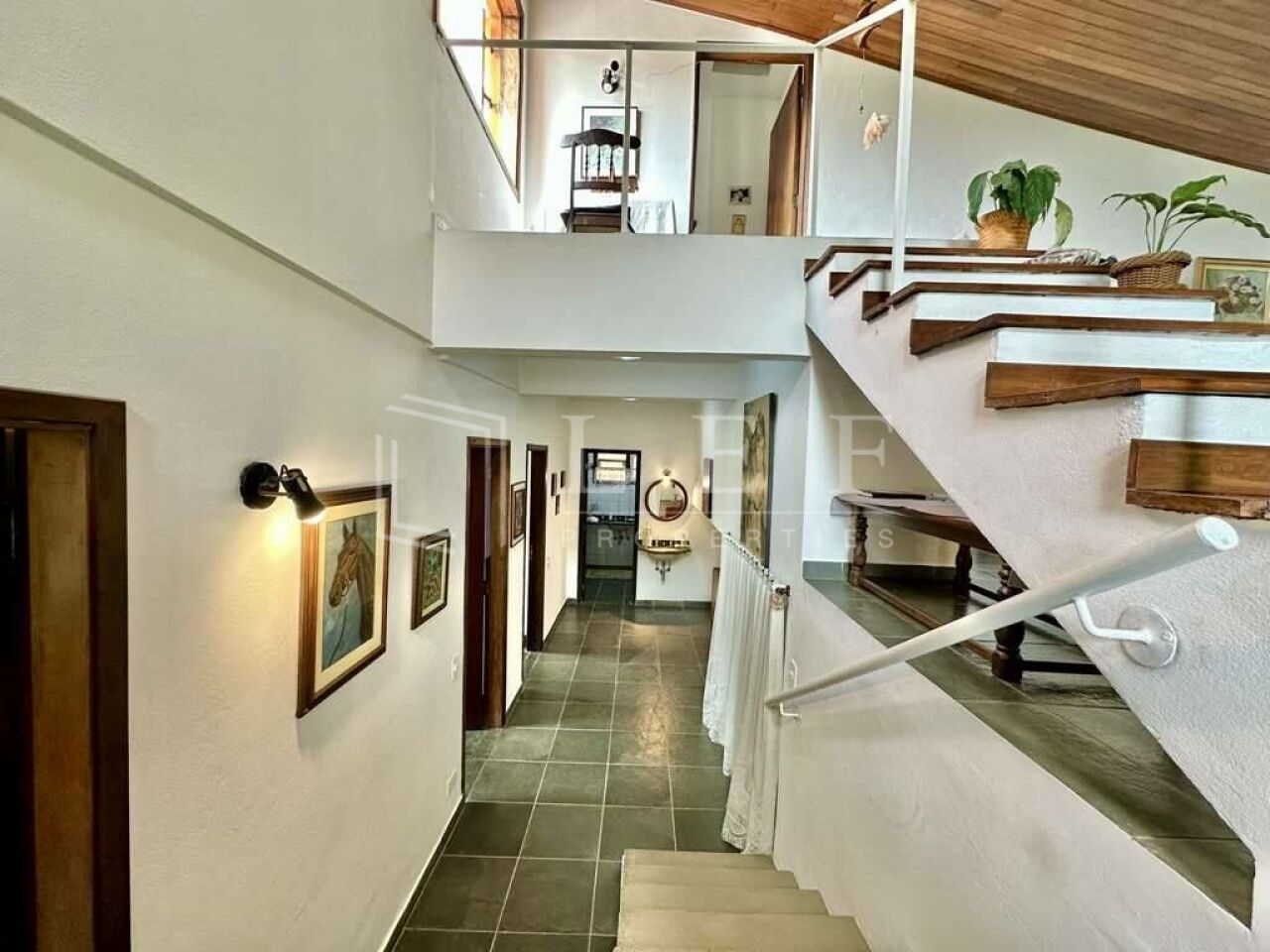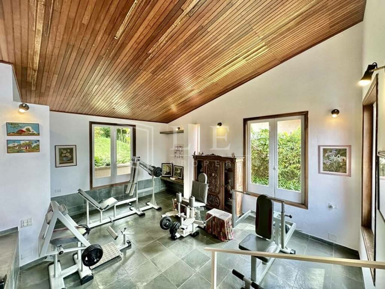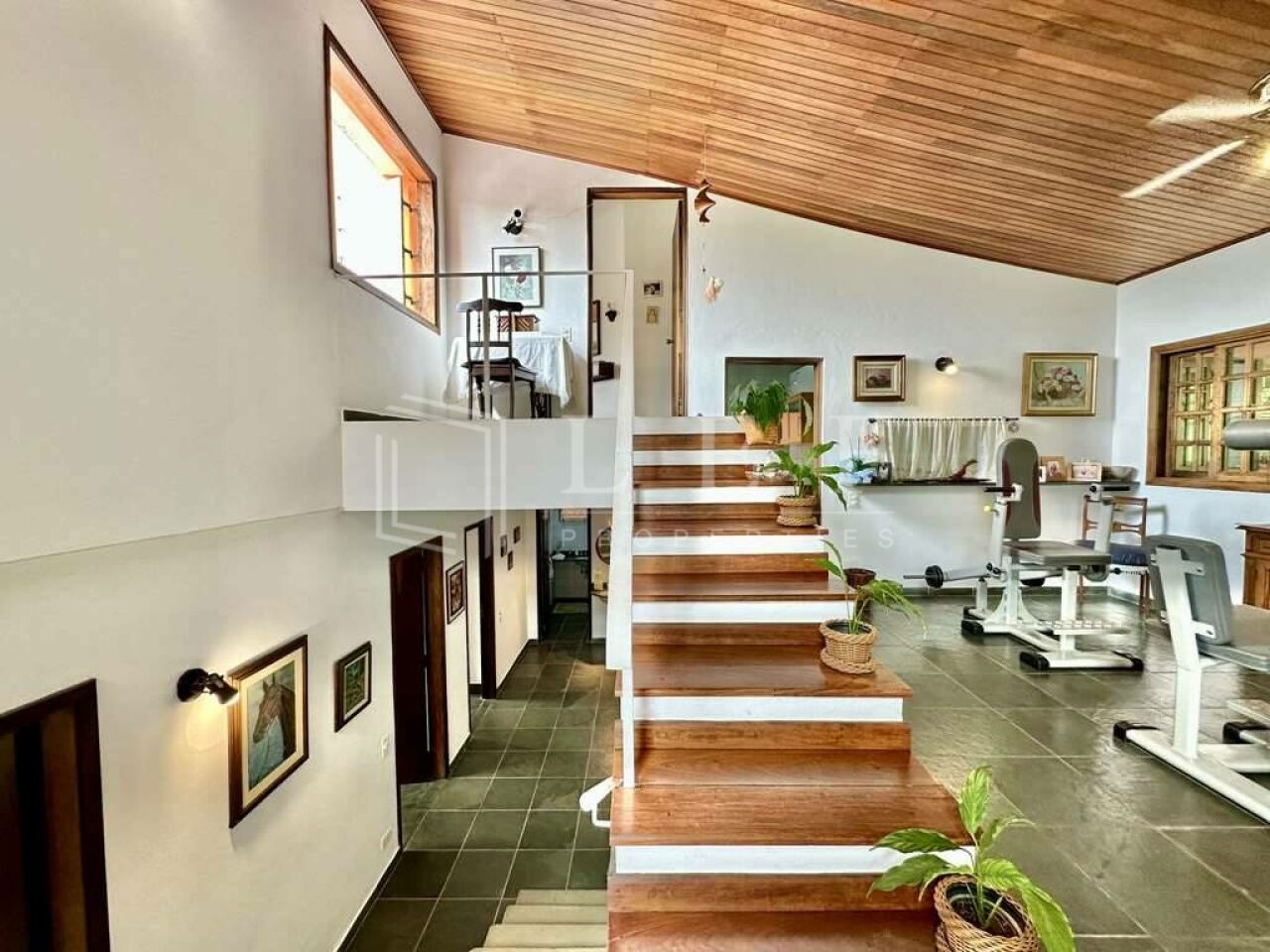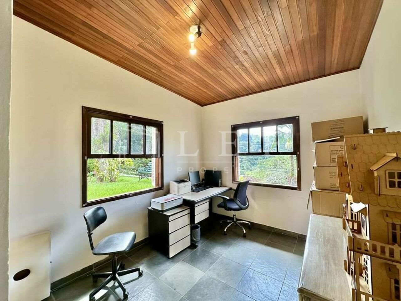 Pisos em Ardósia, revestimento de madeira e Miracema no quintal.