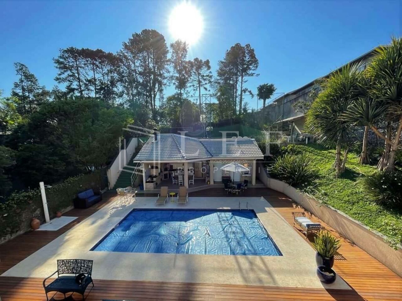 Jardim de entrada com 2 gazebos.
