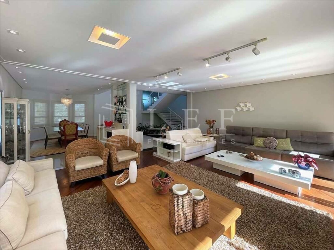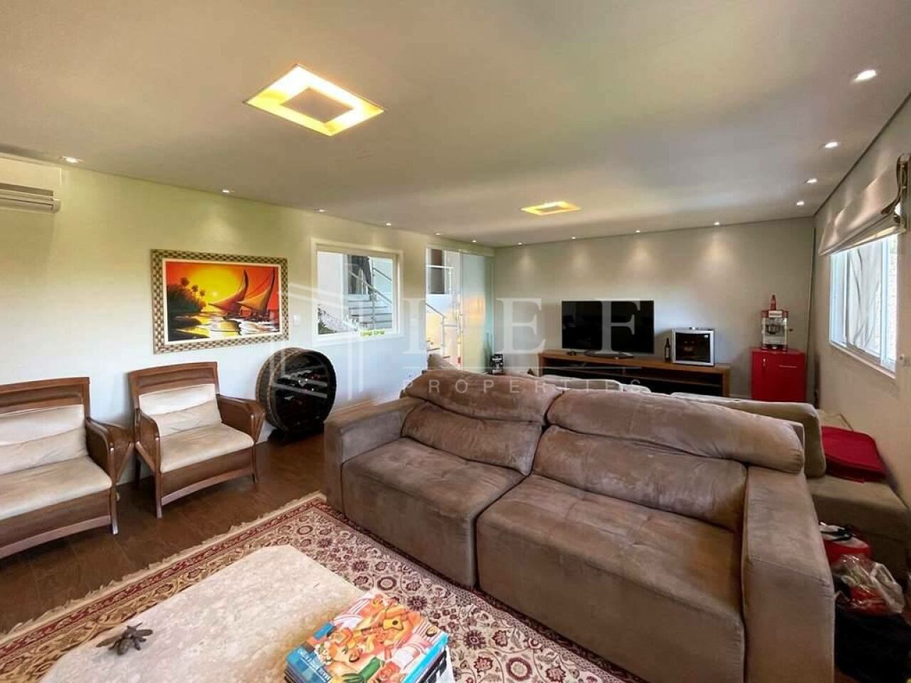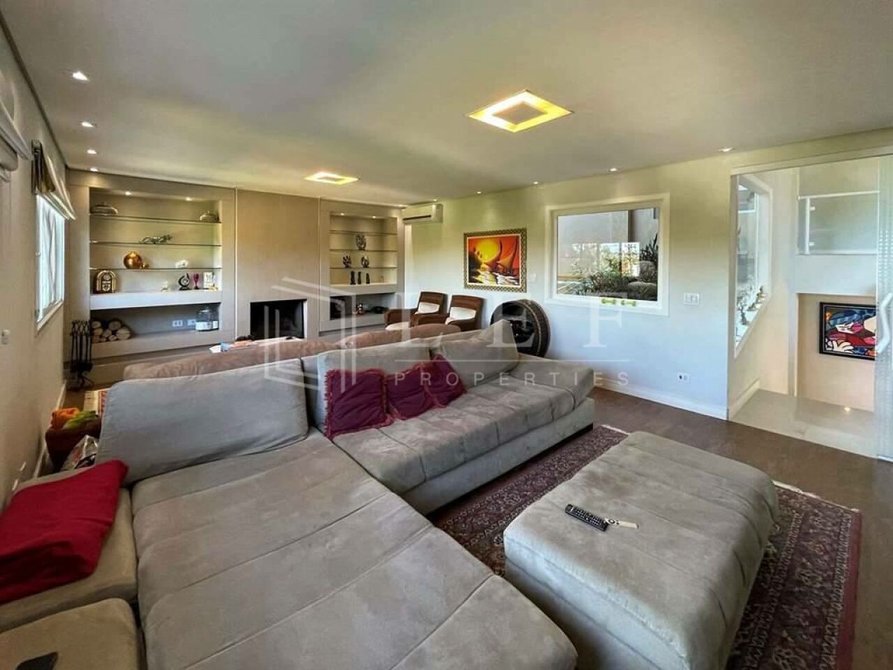 Family room multiuso num grande piso intermediário, com lareira e jardim de inverno. Ideal para Home Theater.