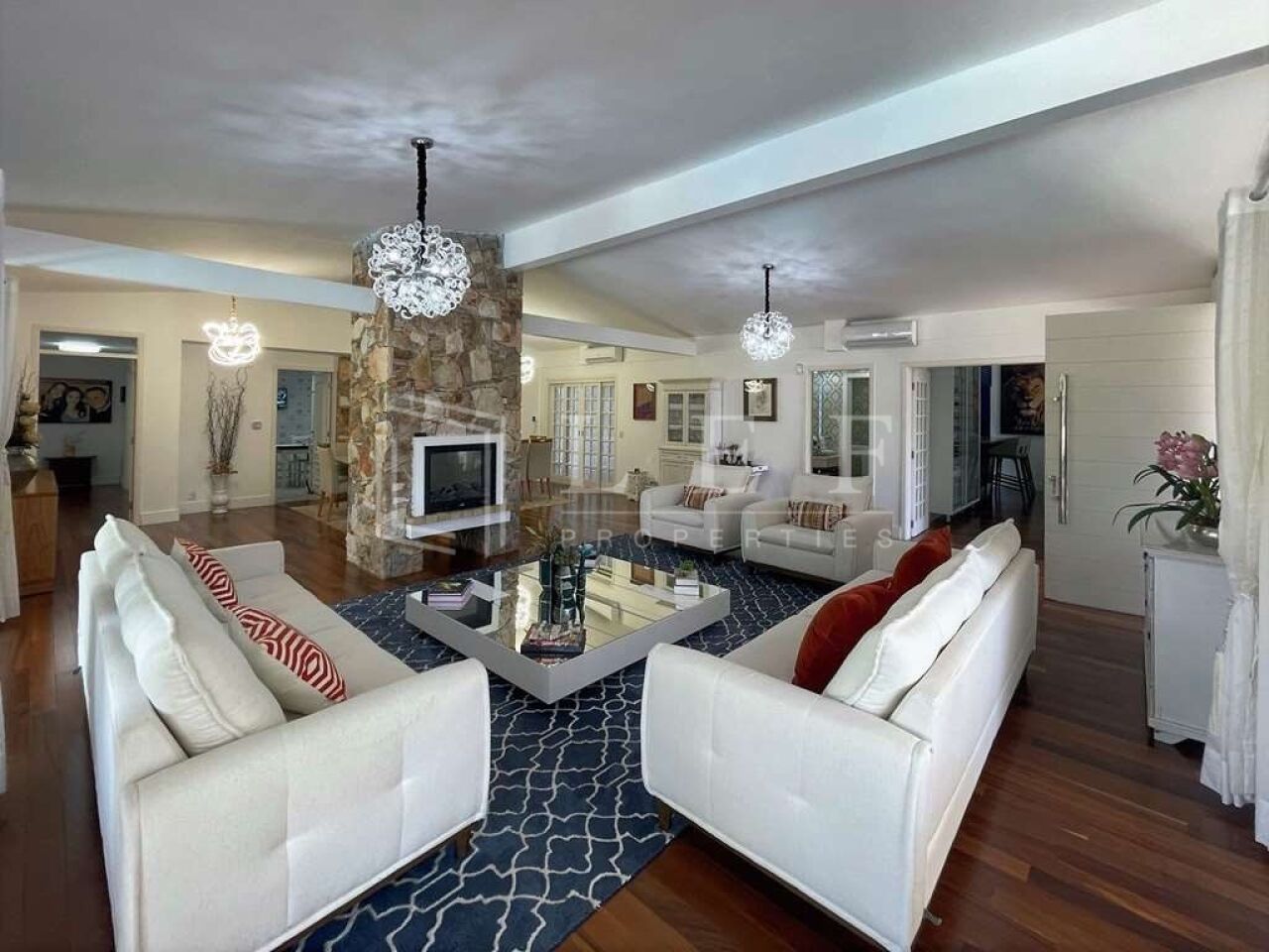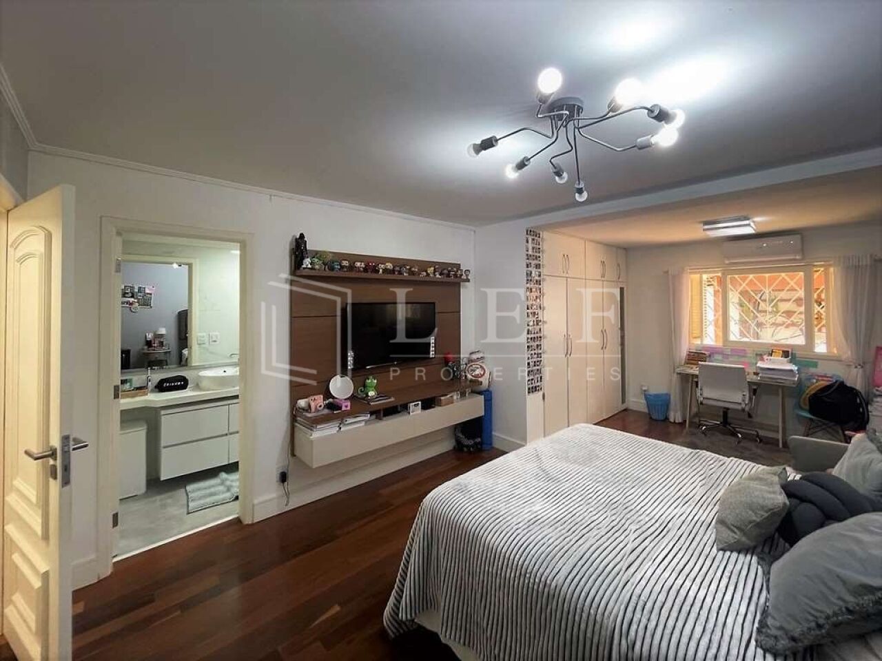 - 4 dormitórios com armários, sendo 3 suítes com . A master com 70m², varanda com vista para o jardim e piscina, com guarda corpo de vidro e alumínio, sala de vestir.