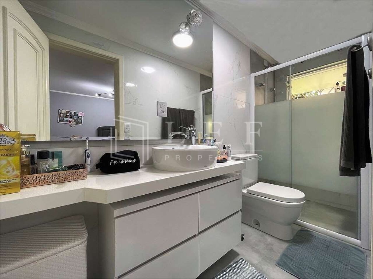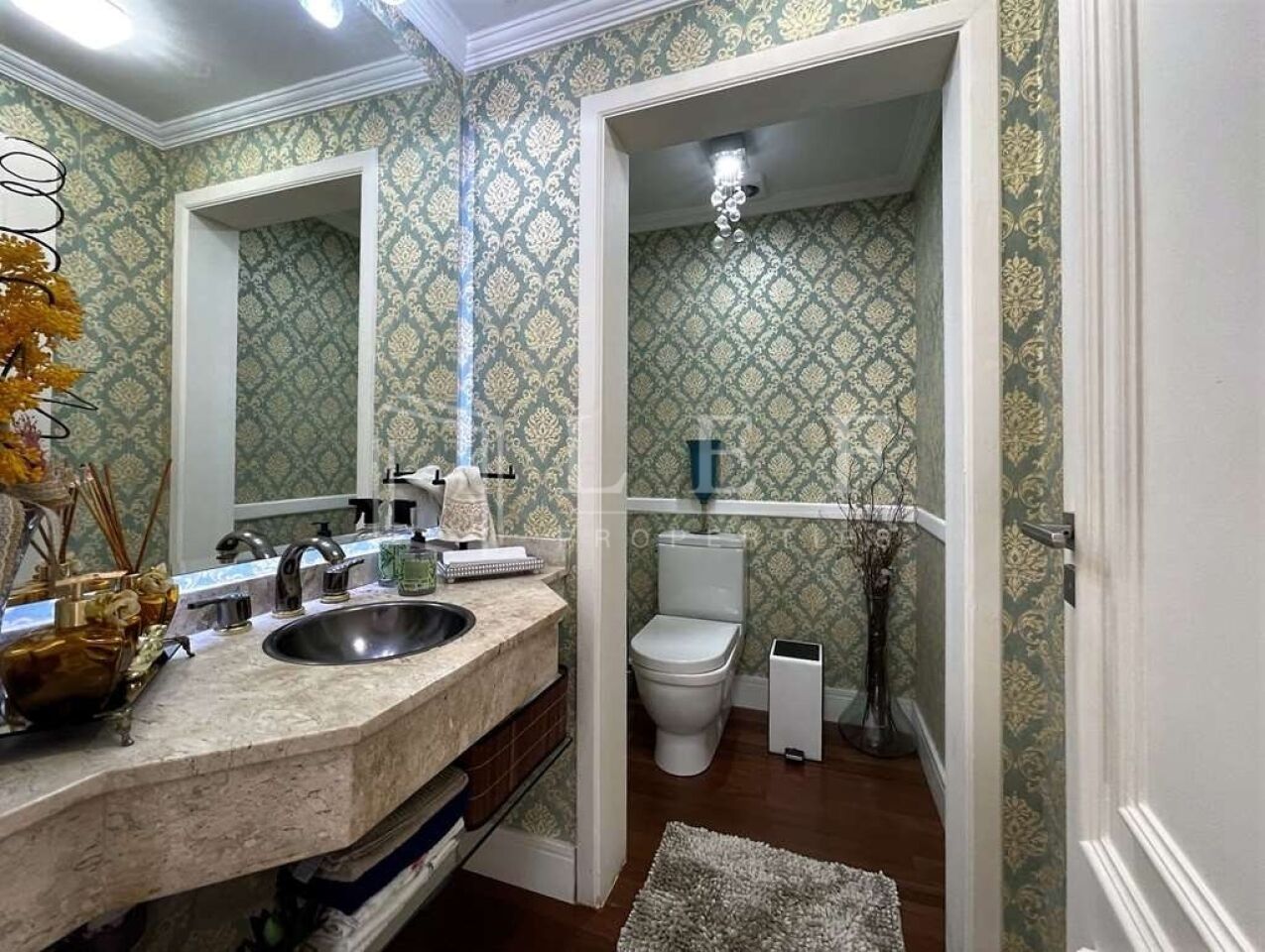 - Banheiros com espelhos, tampos em resina, gabinetes, box de vidro e nichos, sendo a máster com sala de banho, 2 cubas, hidro dupla panorâmica e jardim interno.