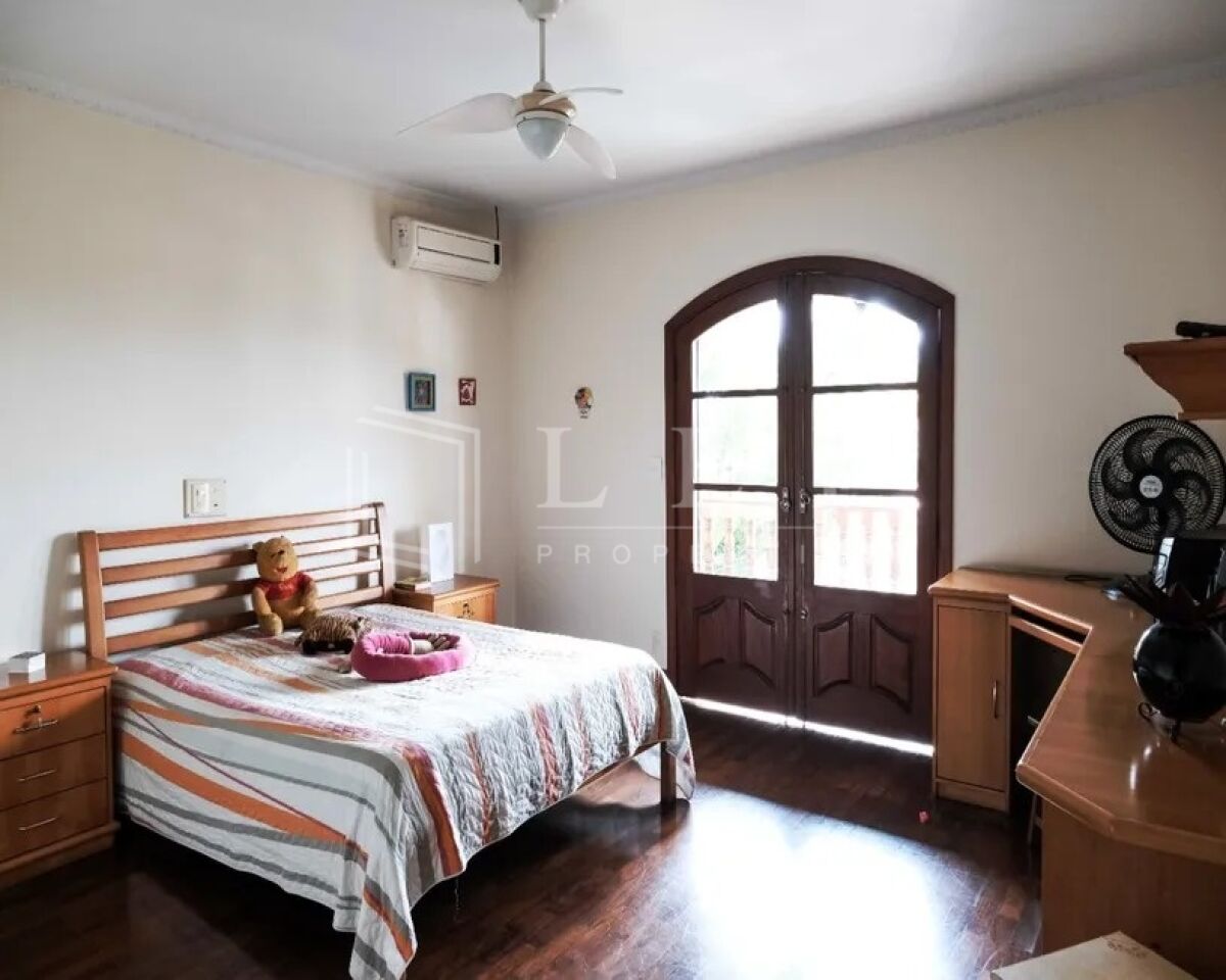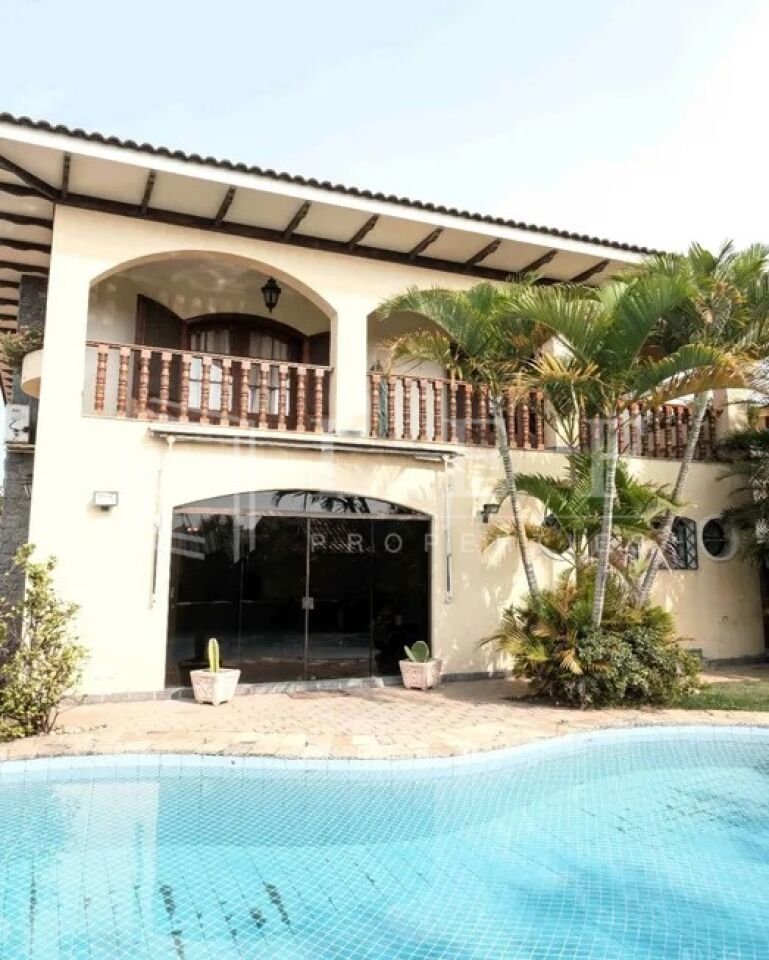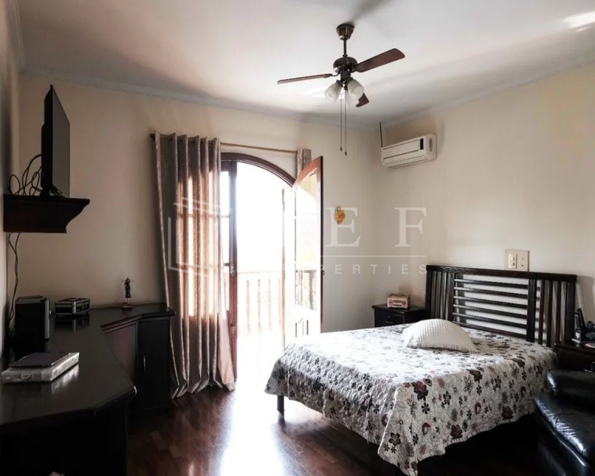 Excelente sobrado residencial de 590m² , com sala de estar com lareira, sala de jantar, sala de Tv, lavabo, copa e cozinha com armários, 04 suítes master com hidromassagem e closet, todos os ambientes bem iluminados e arejados, área de serviço com 01 dormitório e 01 wc, vaga coberta para 5 carros, 01 wc de apoio para motorista, lazer com piscina, churrasqueira, forno de pizza e salão de festas.