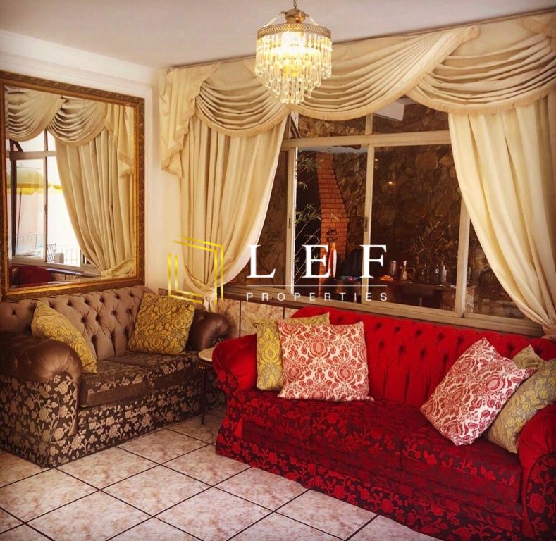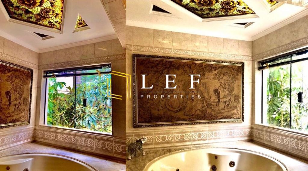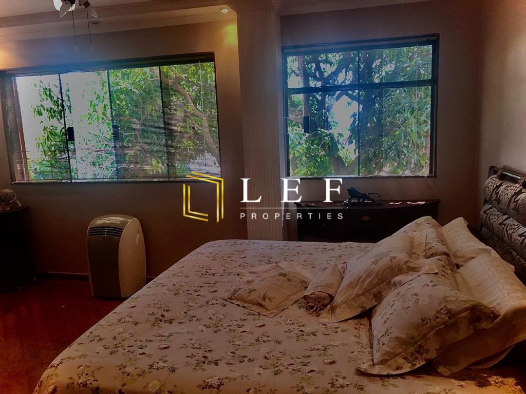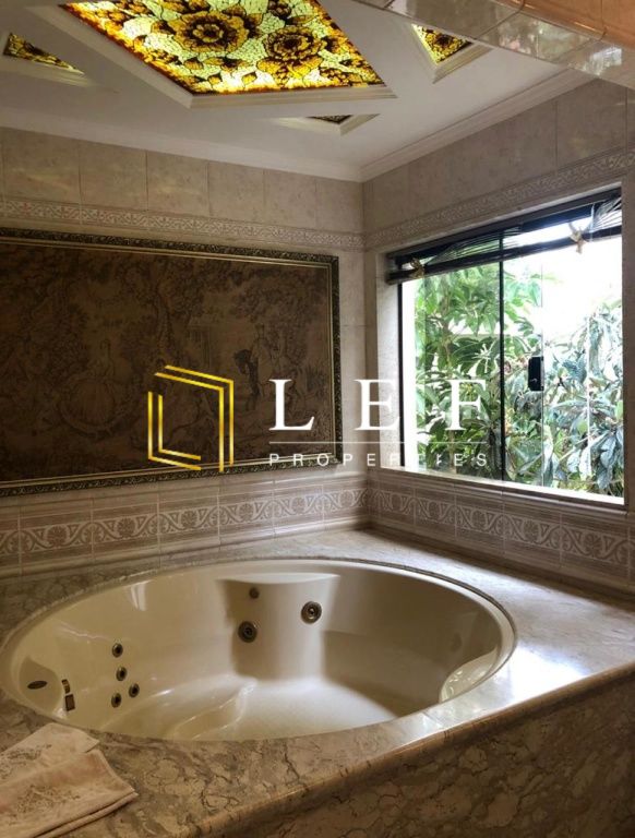 Possui 5 banheiros, 6 dormitórios sendo 3 suítes compostas por 1 suíte master com closet e hidrospa, 1 suíte studio estilo loft adaptável a sala de ginásticas com lavatório ou consultório e 1 suíte com varanda e vista para a área de piscina. Escritório com armários embutidos, sala para 2 ambientes toda envidraçada com barzinho, sala de jantar, lavabo, 2 cozinhas, área de despensa, lavanderia, quarto de empregada com banheiro, piscina, churrasqueira, saunas seca e a vapor.