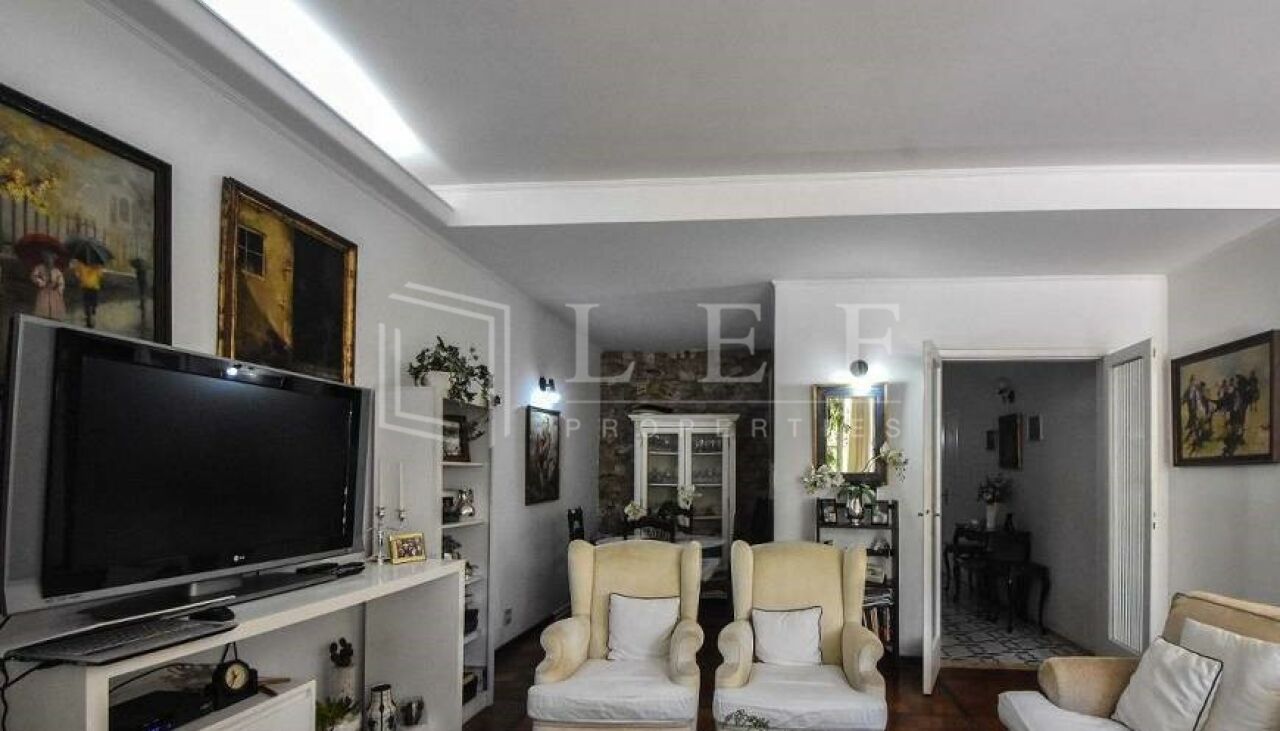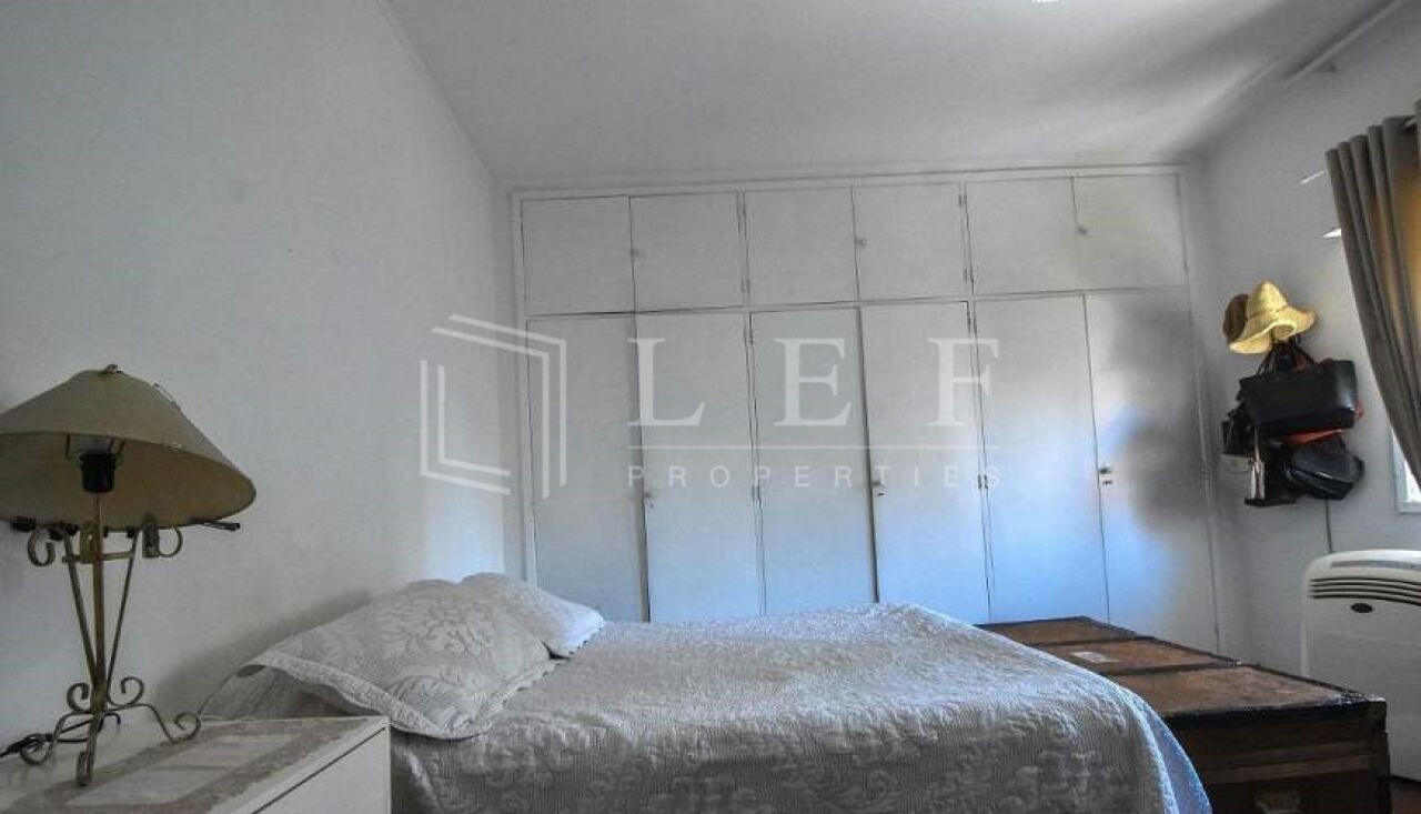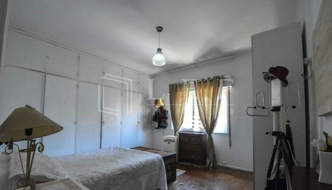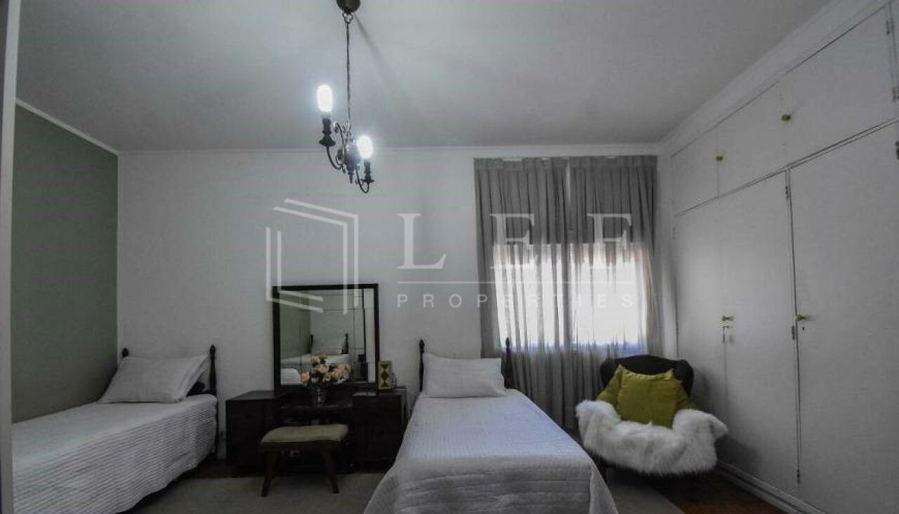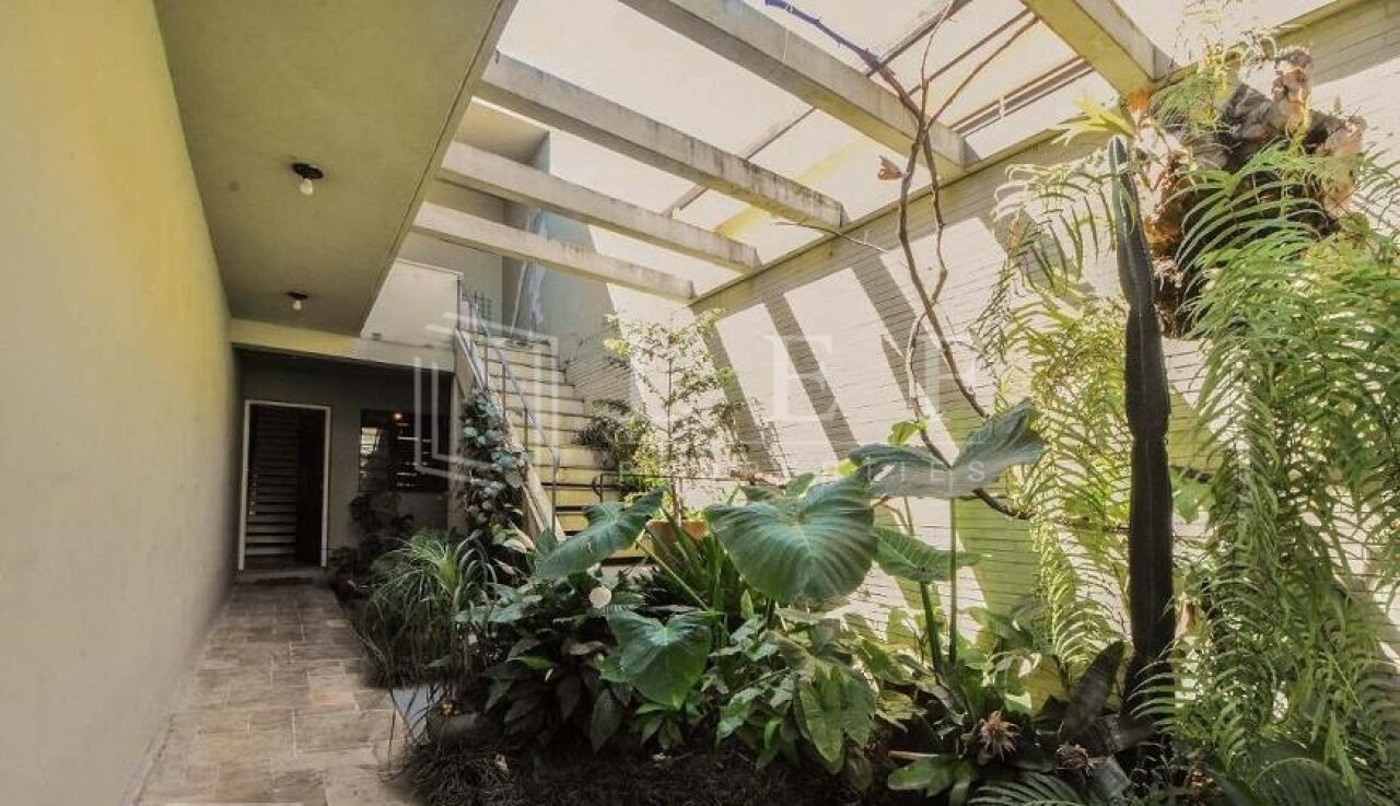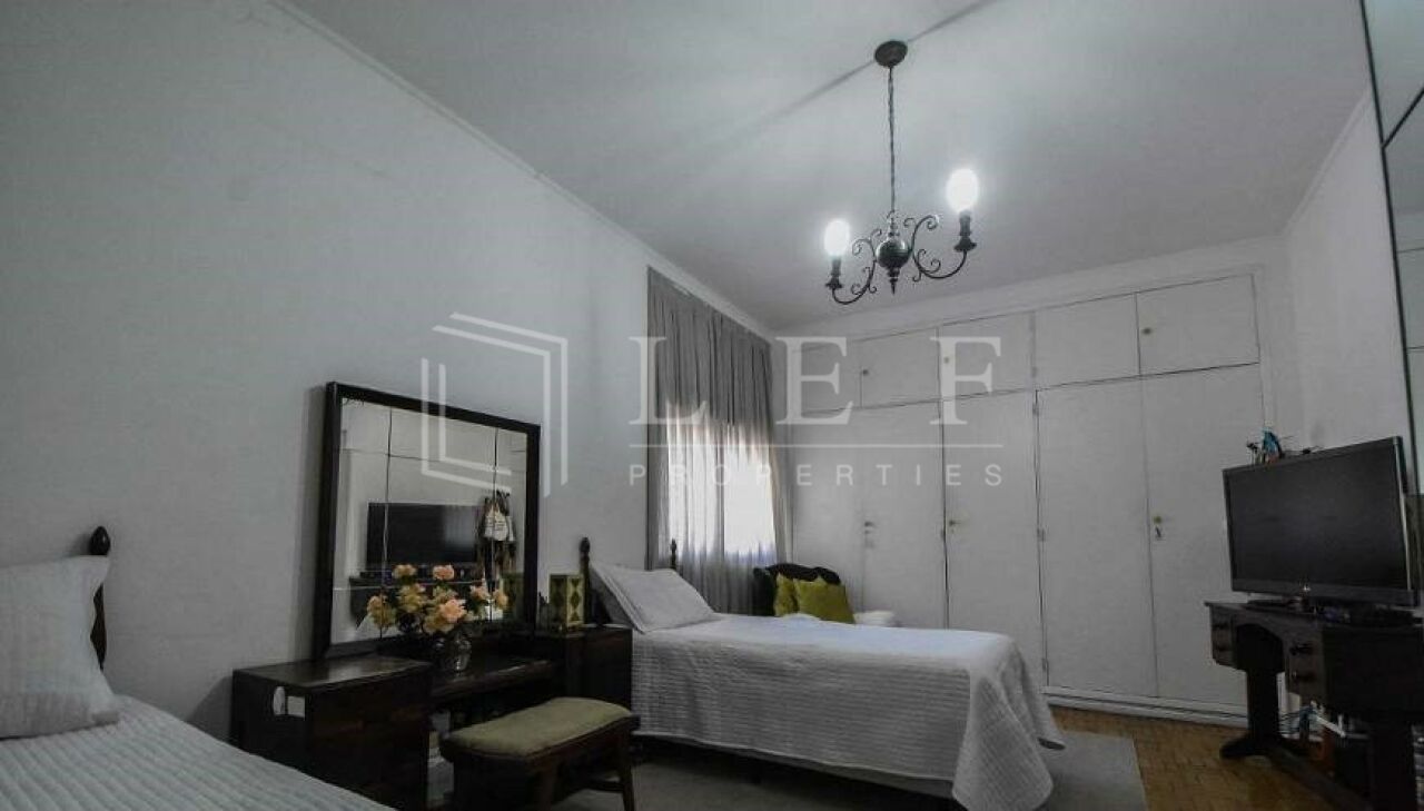 Sobrado dispõe de 5 dormitórios, sendo 2 suítes, living para 3 ambientes com lareira, lavabo, sala de jantar com acesso ao jardim, banheiro social, copa, cozinha e área de serviços, com quarto e banheiro para empregada, totalizando 370m².
