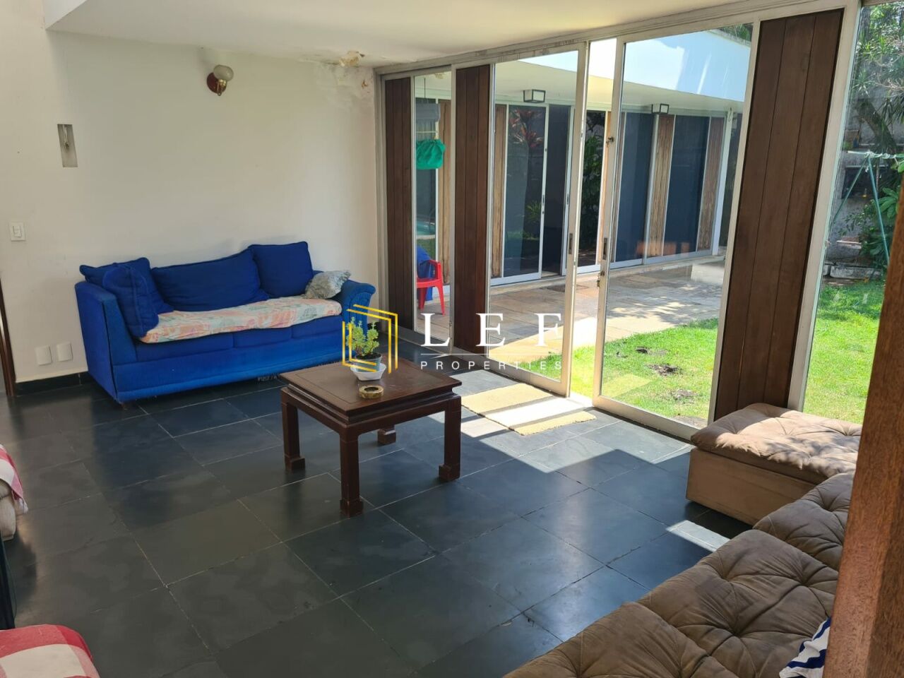 Salão de festas aberto para a piscina