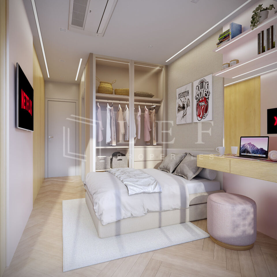 flexibilidade para outras configurações, como adaptação de uma suíte para sala íntima/home office ou 2