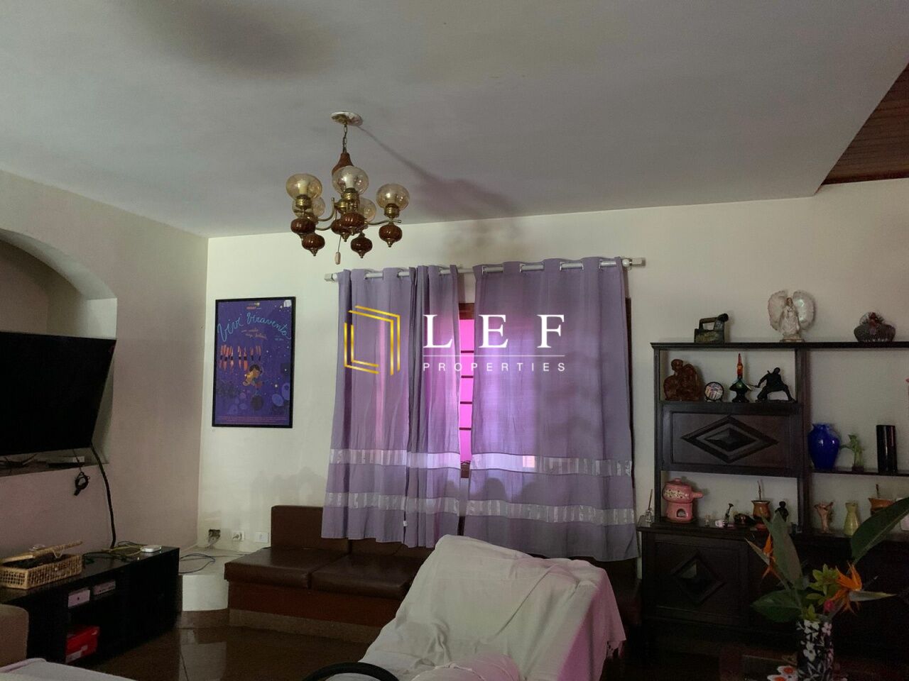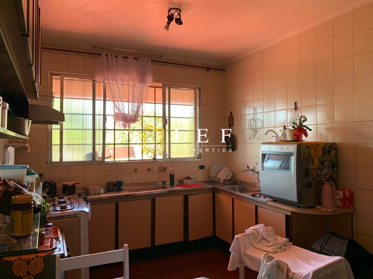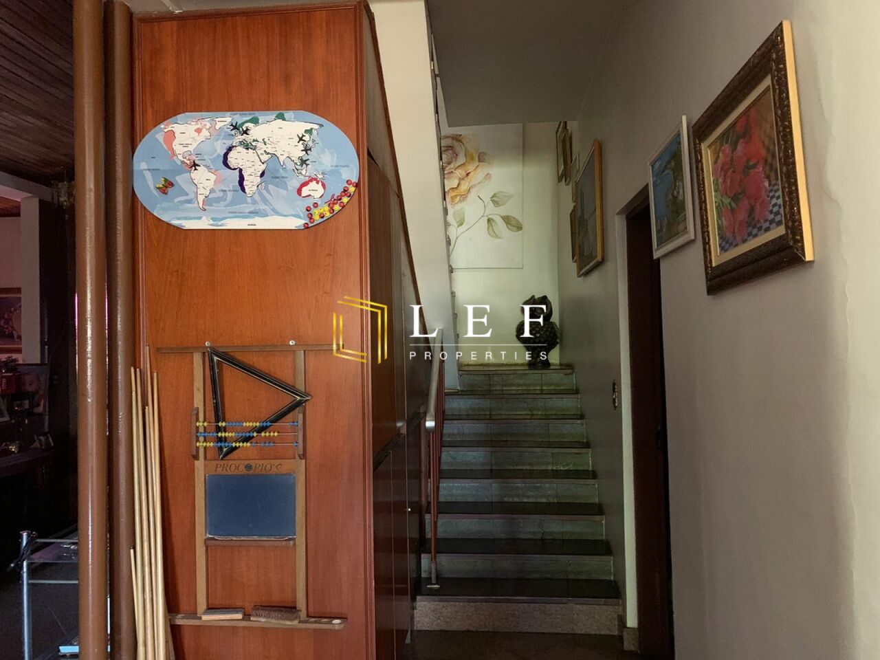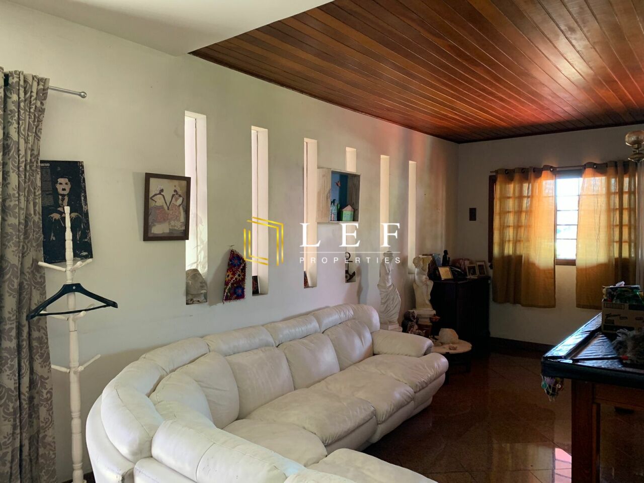 Sobrado dispõe de 6 dormitórios e living para 2 ambientes com ar condicionado, cozinha e área de serviços com quarto e banheiro para empregada, totalizando 490m².