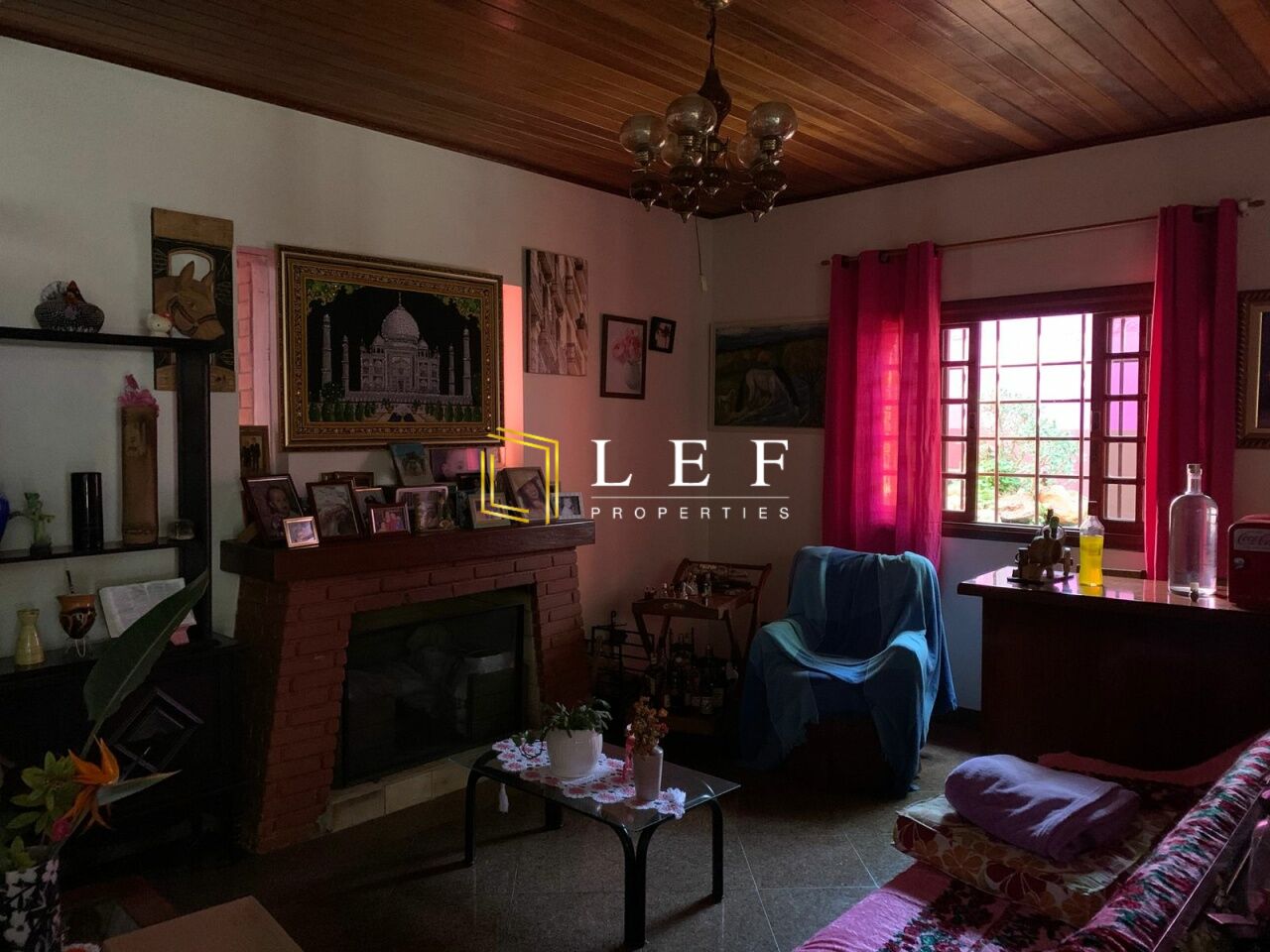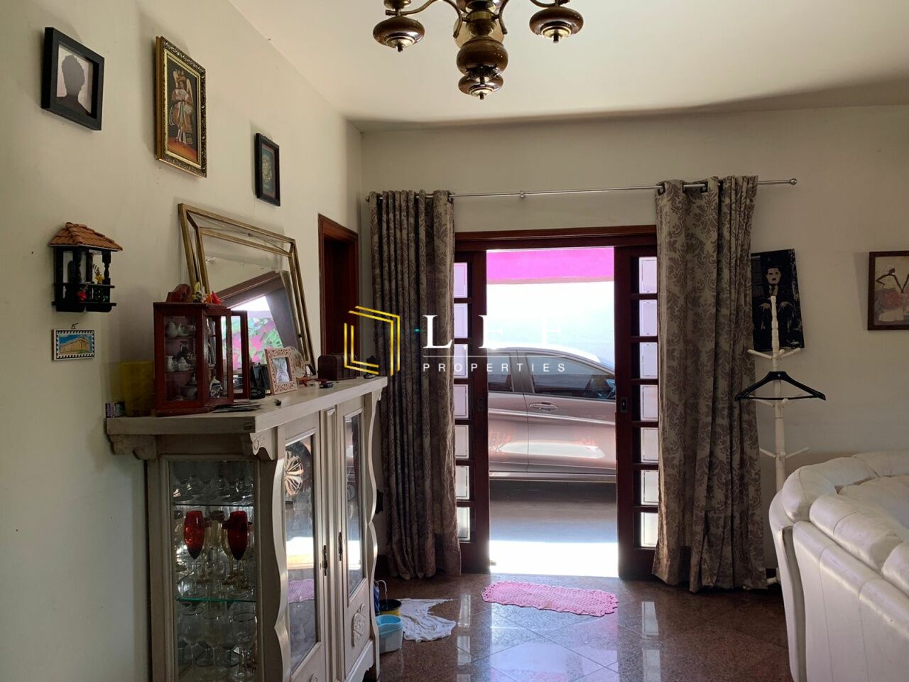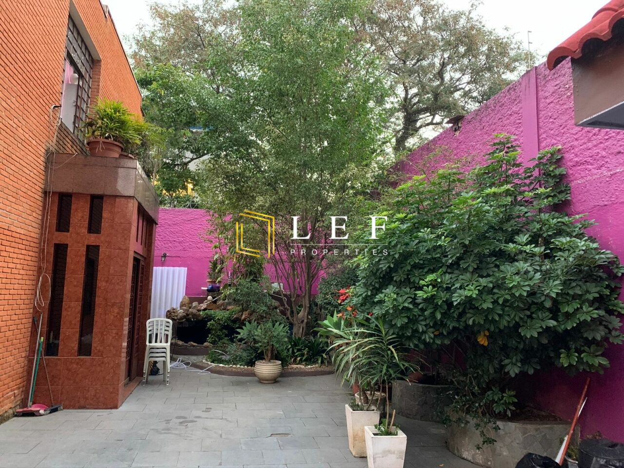 Sobrado dispõe de 6 dormitórios e living para 2 ambientes com ar condicionado, cozinha e área de serviços com quarto e banheiro para empregada, totalizando 490m².