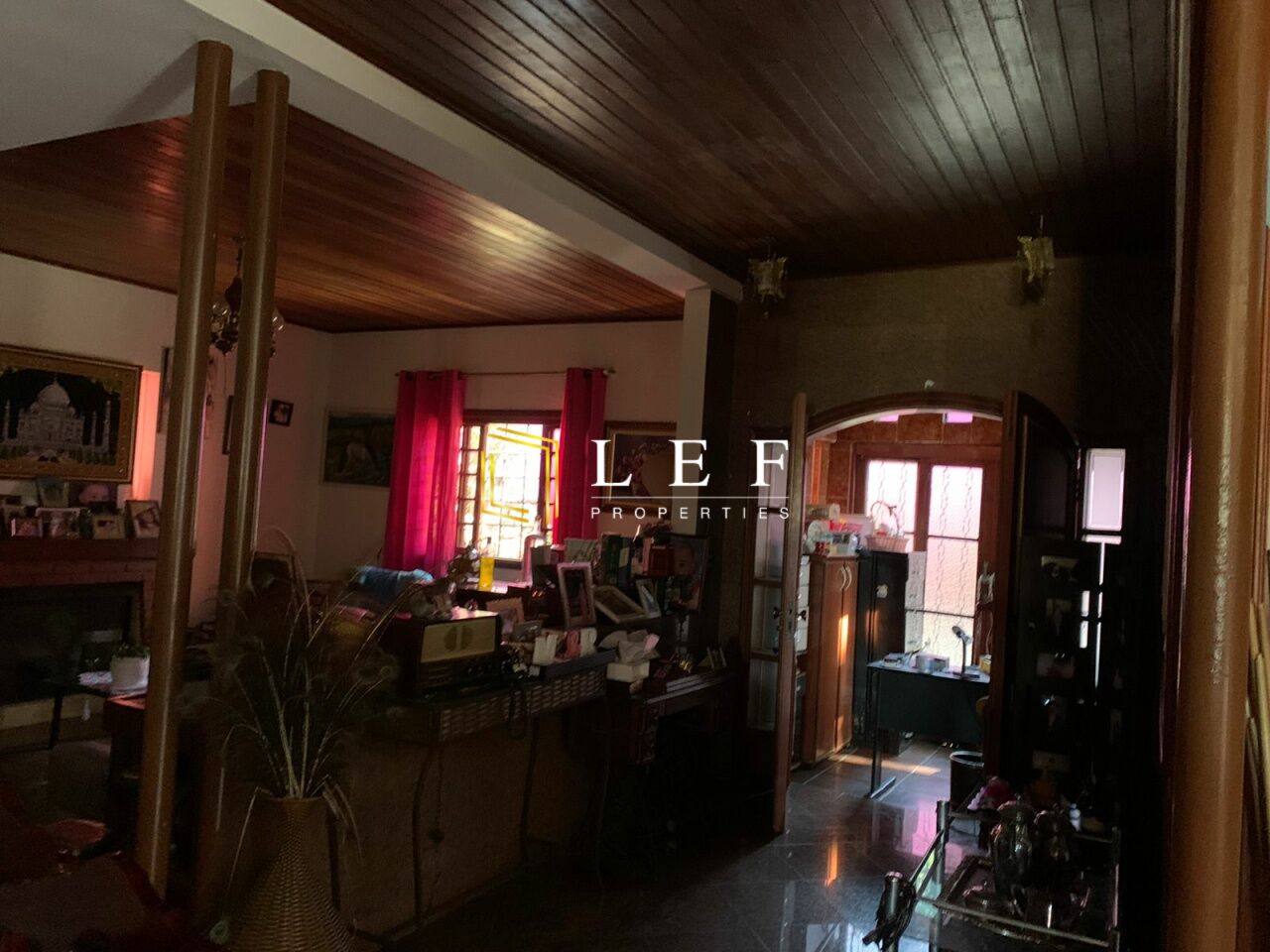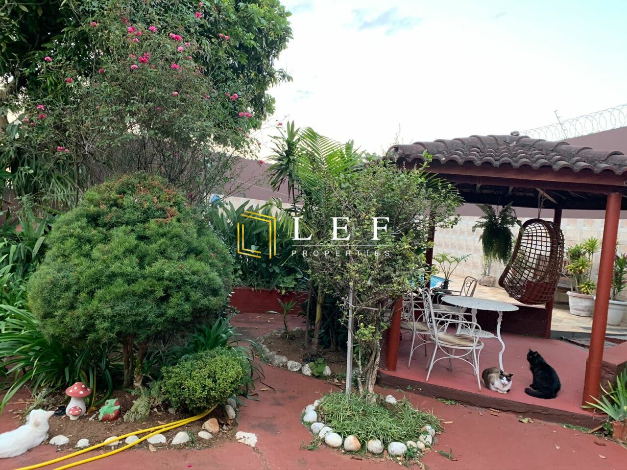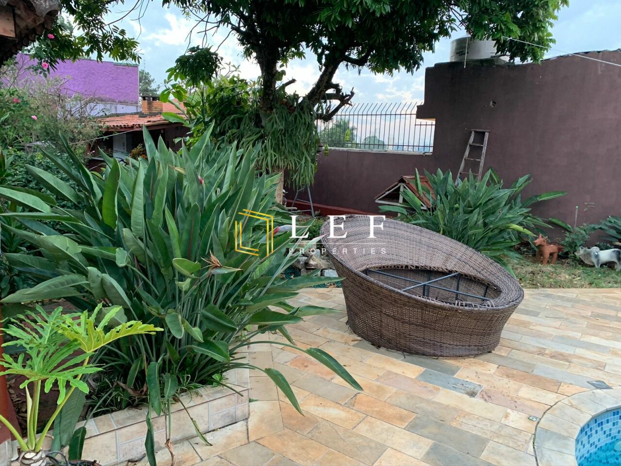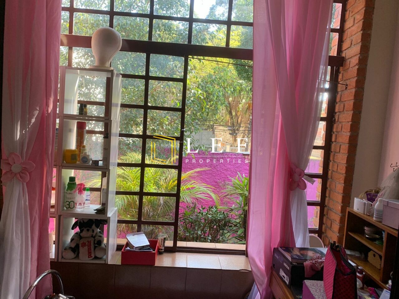 Sobrado dispõe de 6 dormitórios e living para 2 ambientes com ar condicionado, cozinha e área de serviços com quarto e banheiro para empregada, totalizando 490m².