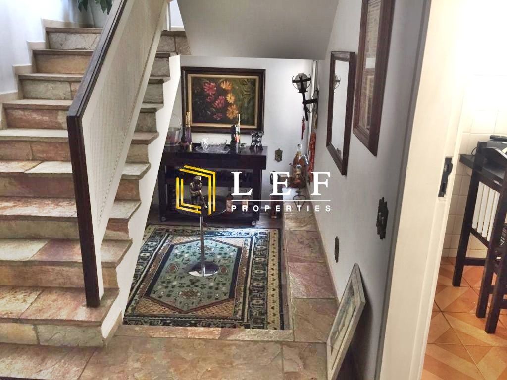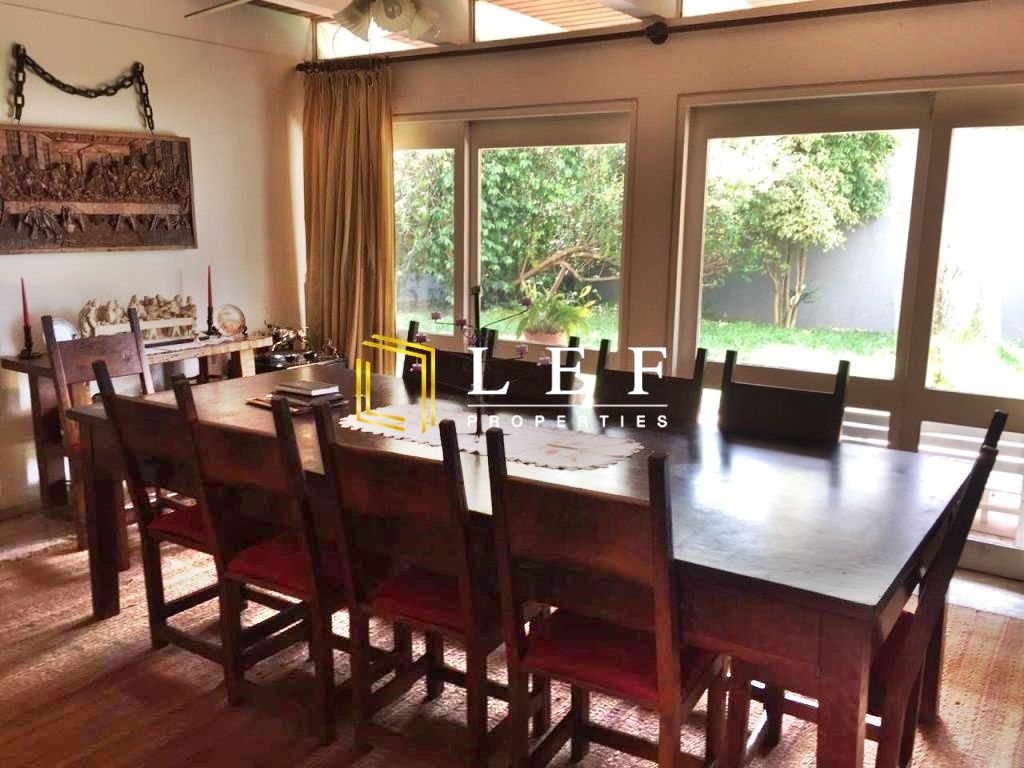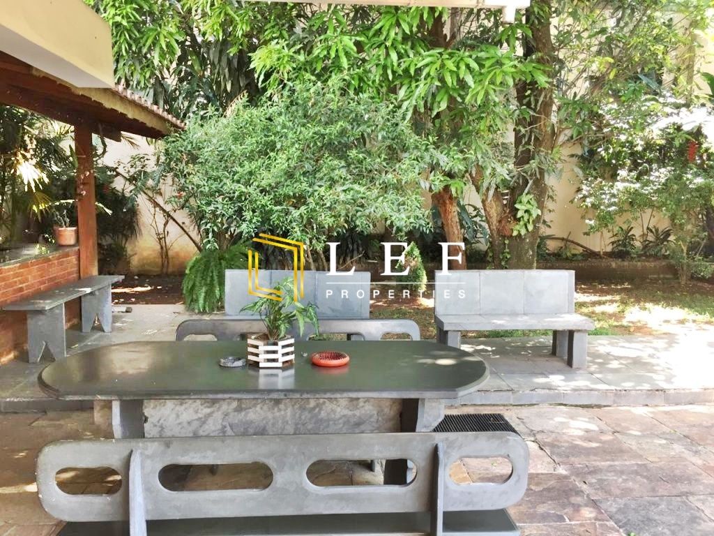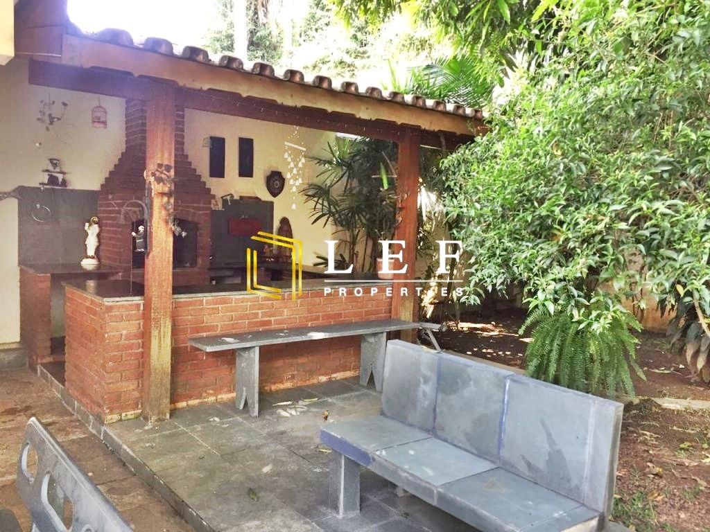 Churrasqueira grande, 3 salas grandes, lavabo, sala de bebidas com lareira, todas com piso em pedra, cozinha grande, lavanderia, 2 quartos de empregada com banheiro, canil, casa gramada, árvores frutíferas, portão automático, dispensa na garagem.