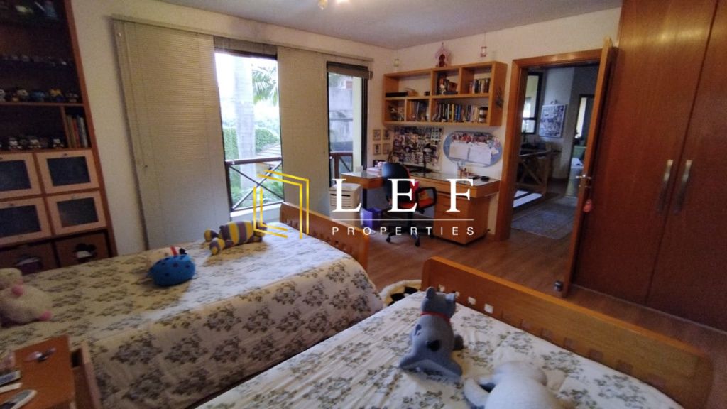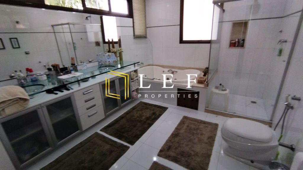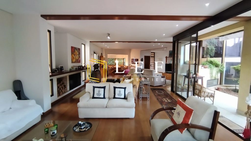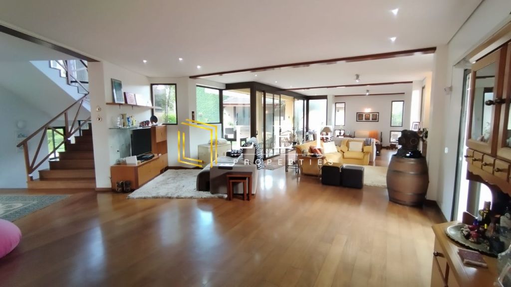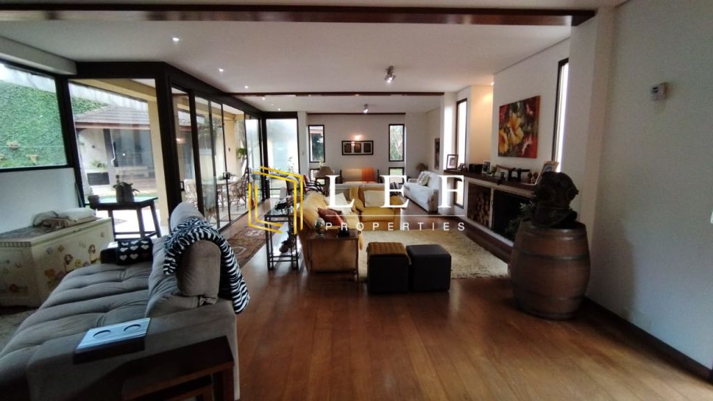 Imóvel dispõe de 4 suítes, sendo master com closet e banheiro Sr e Sra, living para 3 ambientes com lareira, lavabo, sala de tv, sala de jantar, sala íntima com lareira, escritório, banheiro social, cozinha e área de serviços, totalizando 805m².