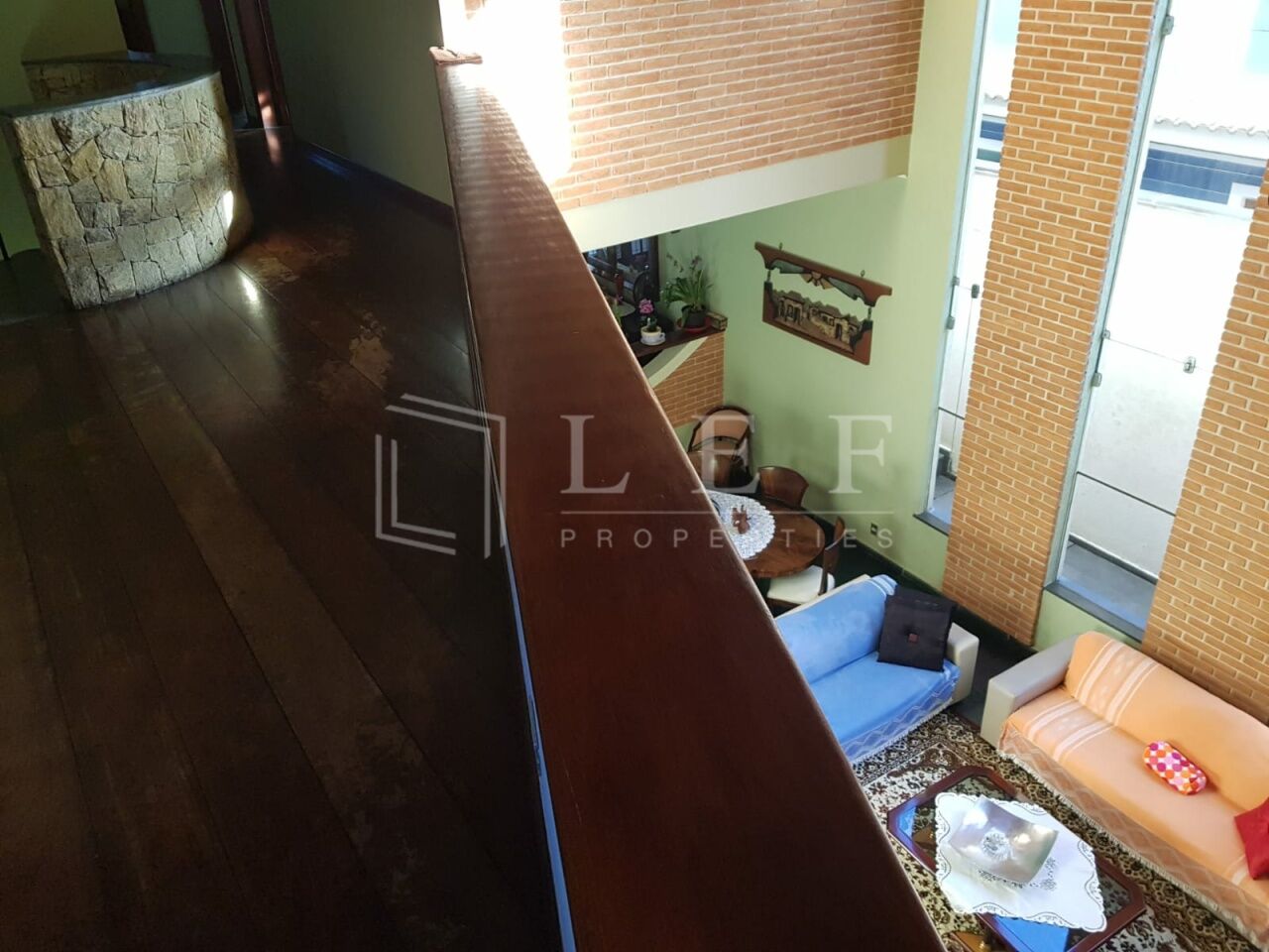 Imóvel com mezanino amplo, piso em tábua de madeira e com boa espessura em ipê/imbuia.