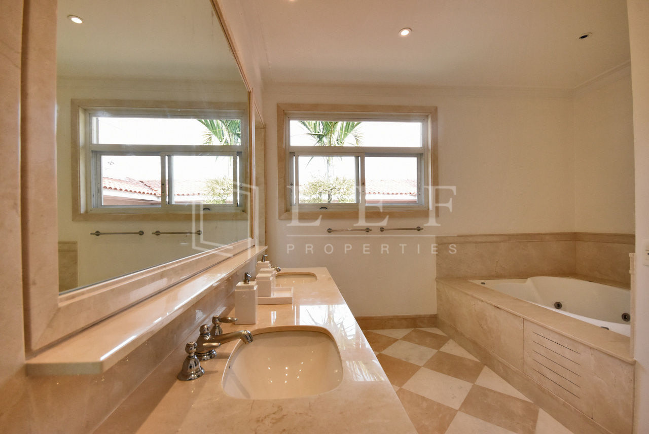 Uma das suítes com closet de 21 m² e banheira de casal;