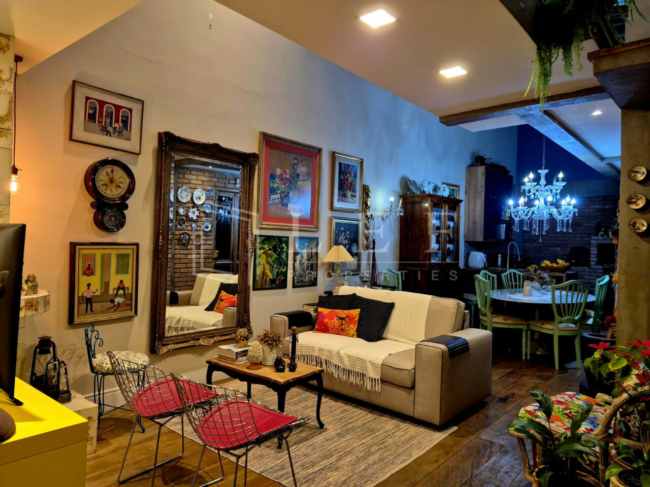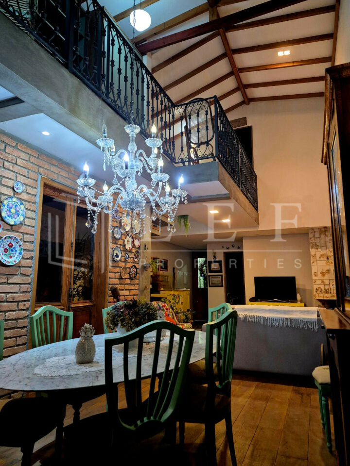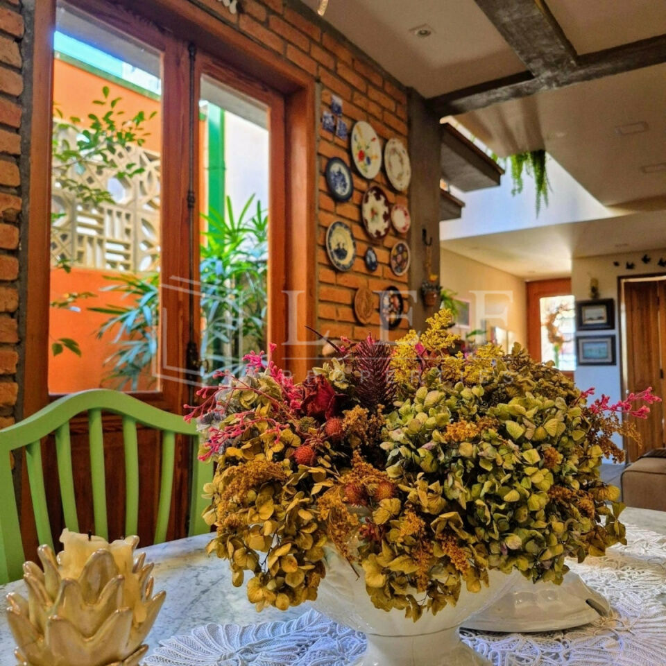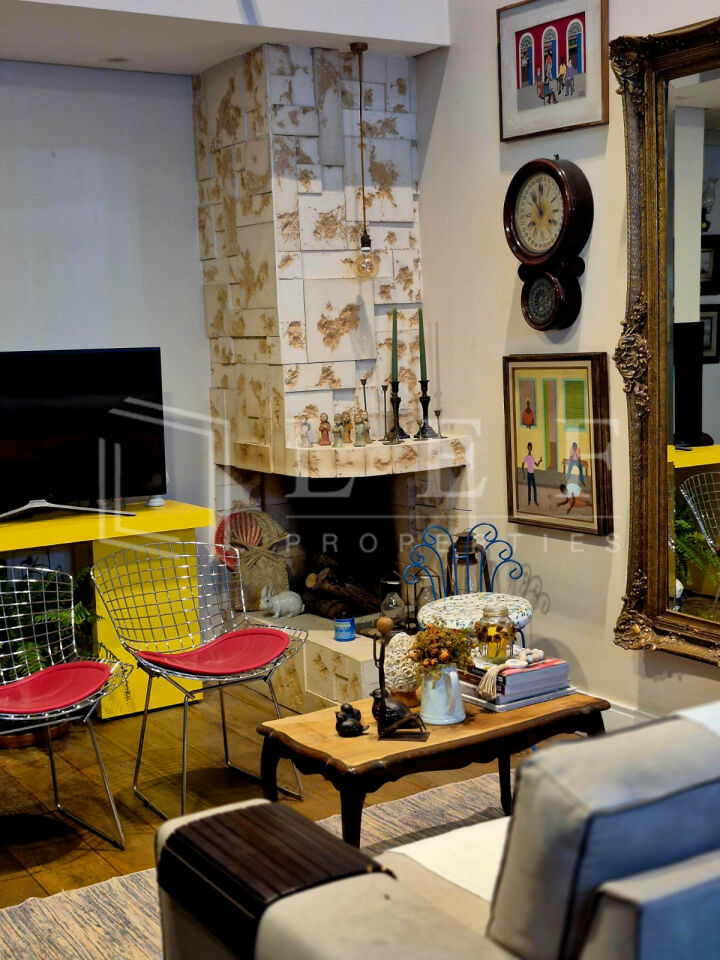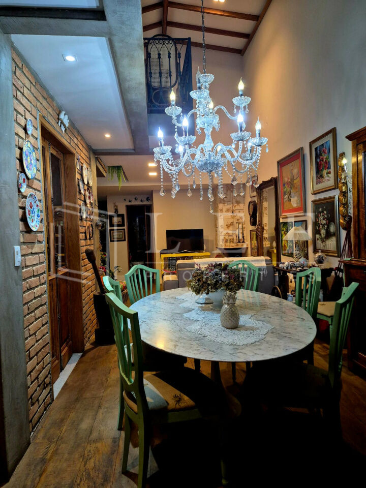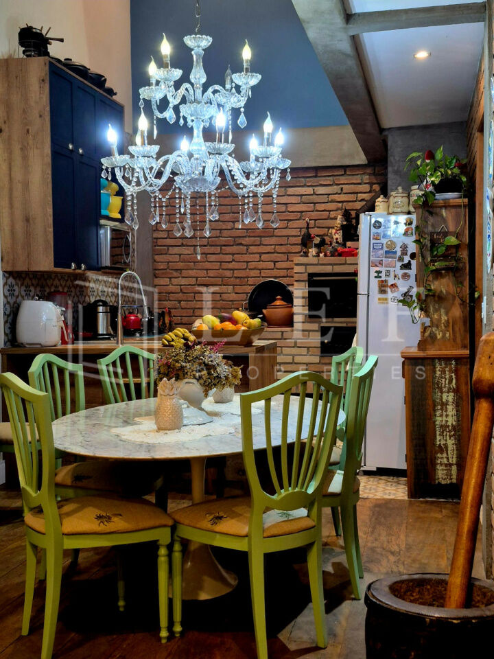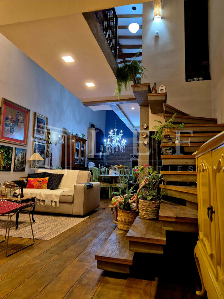 Casa de sítio na cidade, estilo rústico, conceito aberto, pé direito duplo, com 8 metros de altura. No térreo 1 vaga de garagem e um escritório com lavabo. No 1o andar, um dormitório hóspedes, 1 banheiro/lavabo, sala com lareira à lenha, sala de jantar e cozinha ilha com fogão àlenha, forno e churrasqueira. Jardim de inverno e lavanderia. No andar superior 1 mesanino com estantes para um escritório e uma suíte completa com banheira vitoriana e uma varanda. A casa tem tijolos ,piso e janelas de demolição, as demais, assim como as portas são de madeira. Infra para ar condicionado em todos os ambientes. Infra para câmeras de segurança. Sistema de placas solares para Boiler elétrico e água quente e fria em todas as torneiras da casa. Todos os armários de marcenaria planejados permanecerão na casa, somente móveis soltos e decoração não estão inclusos na venda da casa.
