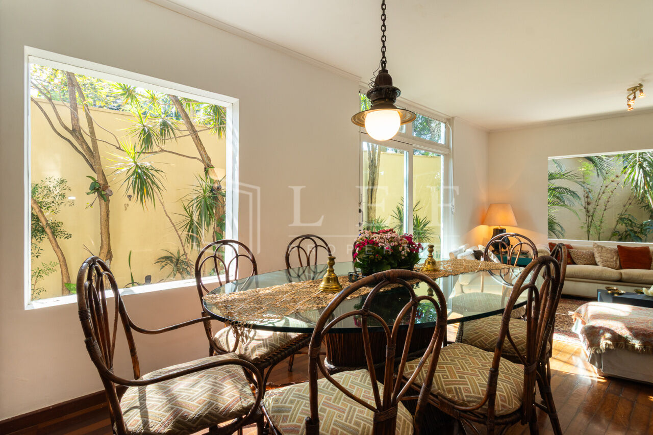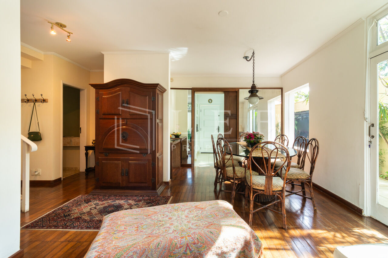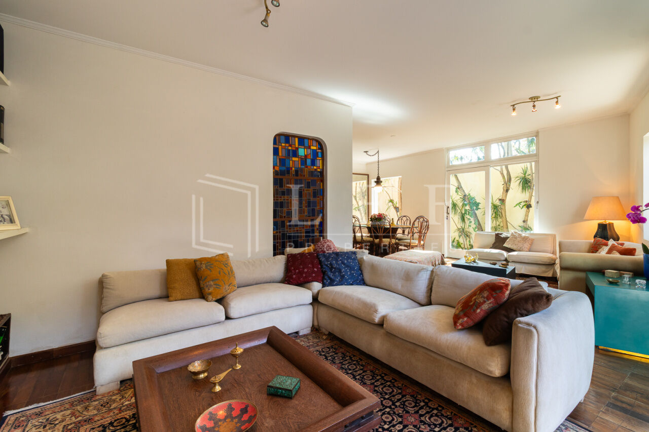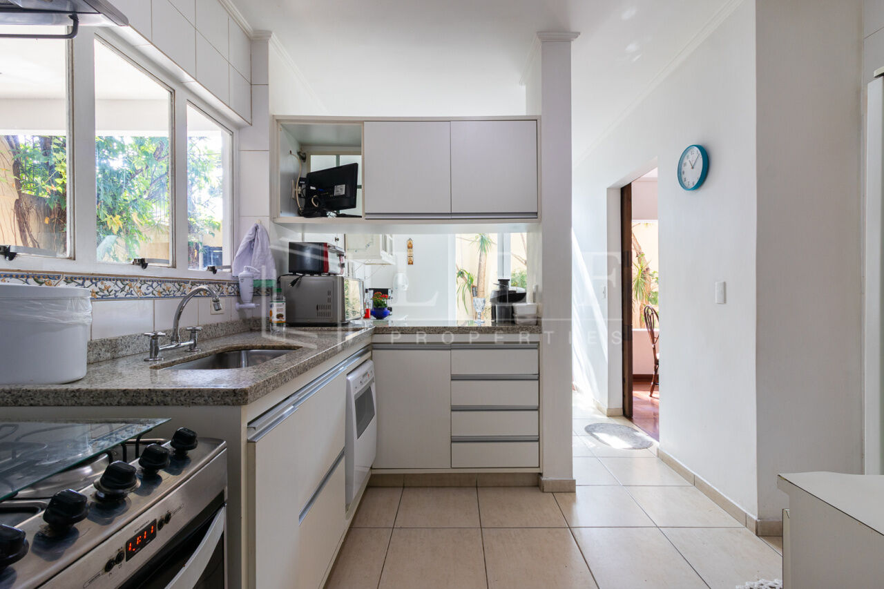 Linda casa, pronta para mudar. Face norte, muito iluminada e ajardinada. Elétrica e hidráulica renovadas. Cômodos amplos, 3 suítes, a principal com ar condicionado e varanda. Excelente localização, rua tranquila, próximo às boas escolas do bairro e do pequeno comércio de conveniência. Churrasqueira, garagem para 3 veículos, lavanderia, estúdio, jardim e área de lazer.