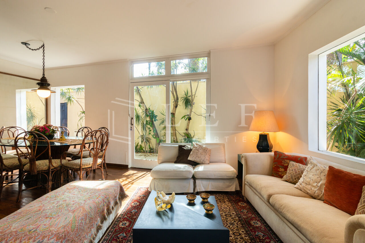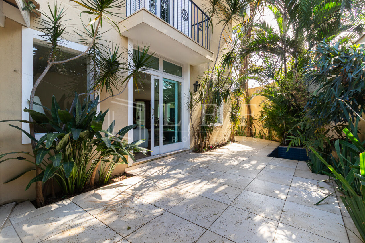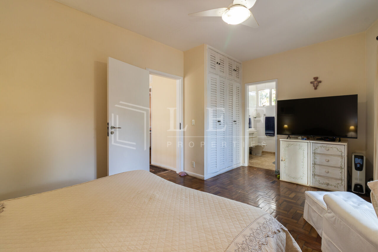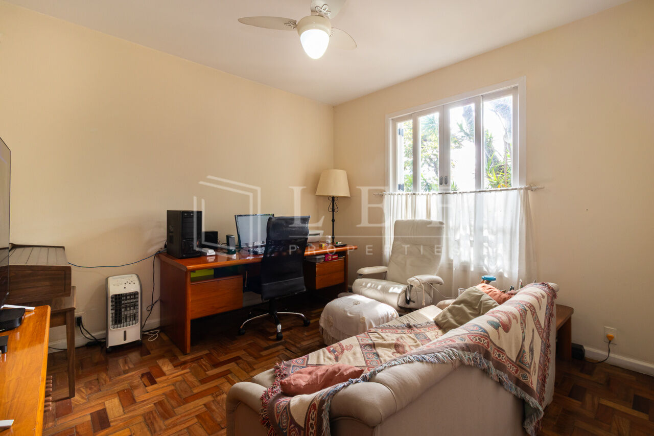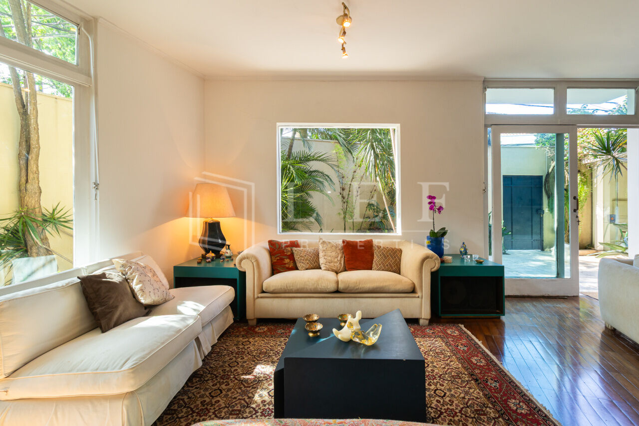 Linda casa, pronta para mudar. Face norte, muito iluminada e ajardinada. Elétrica e hidráulica renovadas. Cômodos amplos, 3 suítes, a principal com ar condicionado e varanda. Excelente localização, rua tranquila, próximo às boas escolas do bairro e do pequeno comércio de conveniência. Churrasqueira, garagem para 3 veículos, lavanderia, estúdio, jardim e área de lazer.