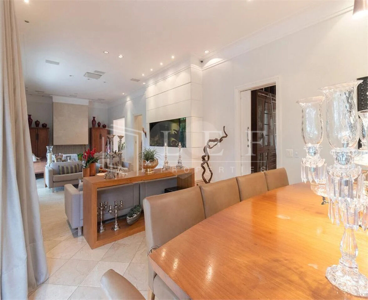 A casa dispõe de 5 amplas suítes, todas com closet, proporcionando o máximo de bem-estar aos moradores. Os ambientes sociais são generosos e integrados, incluindo living, sala de TV, sala de jantar e sala de almoço ? todos voltados para um exuberante jardim, que traz leveza e tranquilidade ao dia a dia.