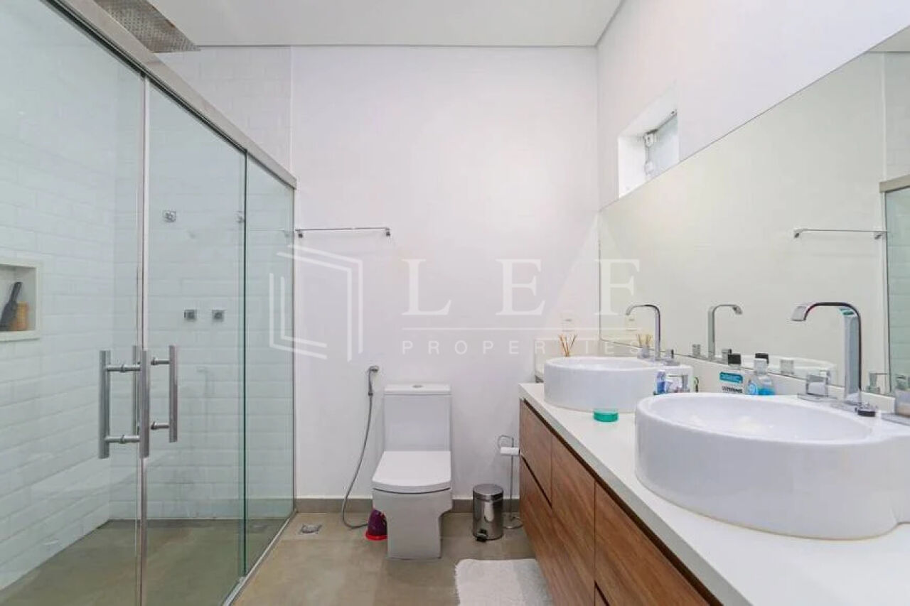 Casa reformada dispõe de 3 suítes com ar condicionado, living para 2 ambientes, escritório, adega, lavabo, cozinha, churrasqueira e área de serviços, totalizando 390m².