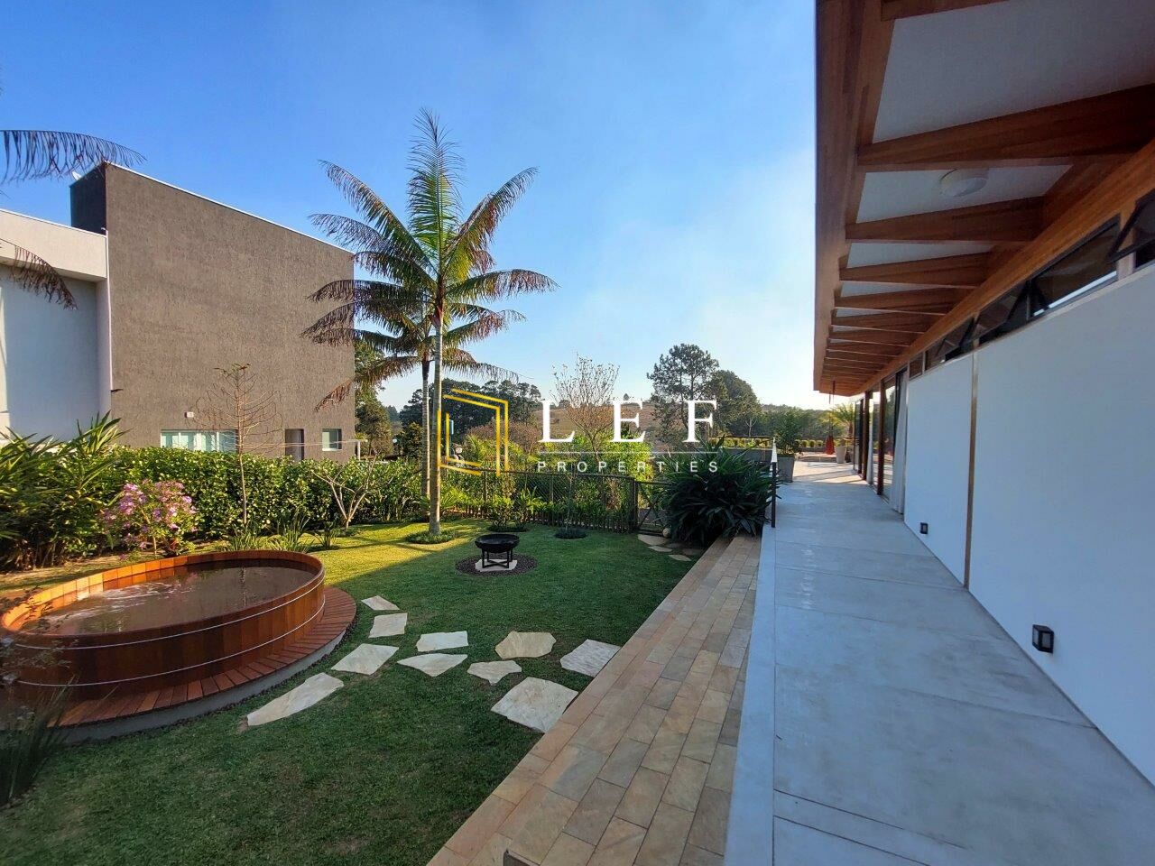 A casa principal, no nível da rua superior, foi construída com conceito sustentável, Construtora ITA, totalmente suspensa do chão (livre de umidade), com Madeira Laminada Colada (MLC), certificada para uso estrutural e à prova d'água (construção sustentável) e está inserida no condomínio residencial ecológico - Patrimônio do Carmo - a 50 km da cidade de São Paulo (1 hora de Pinheiros) entrada por Ibiúna e por São Roque.