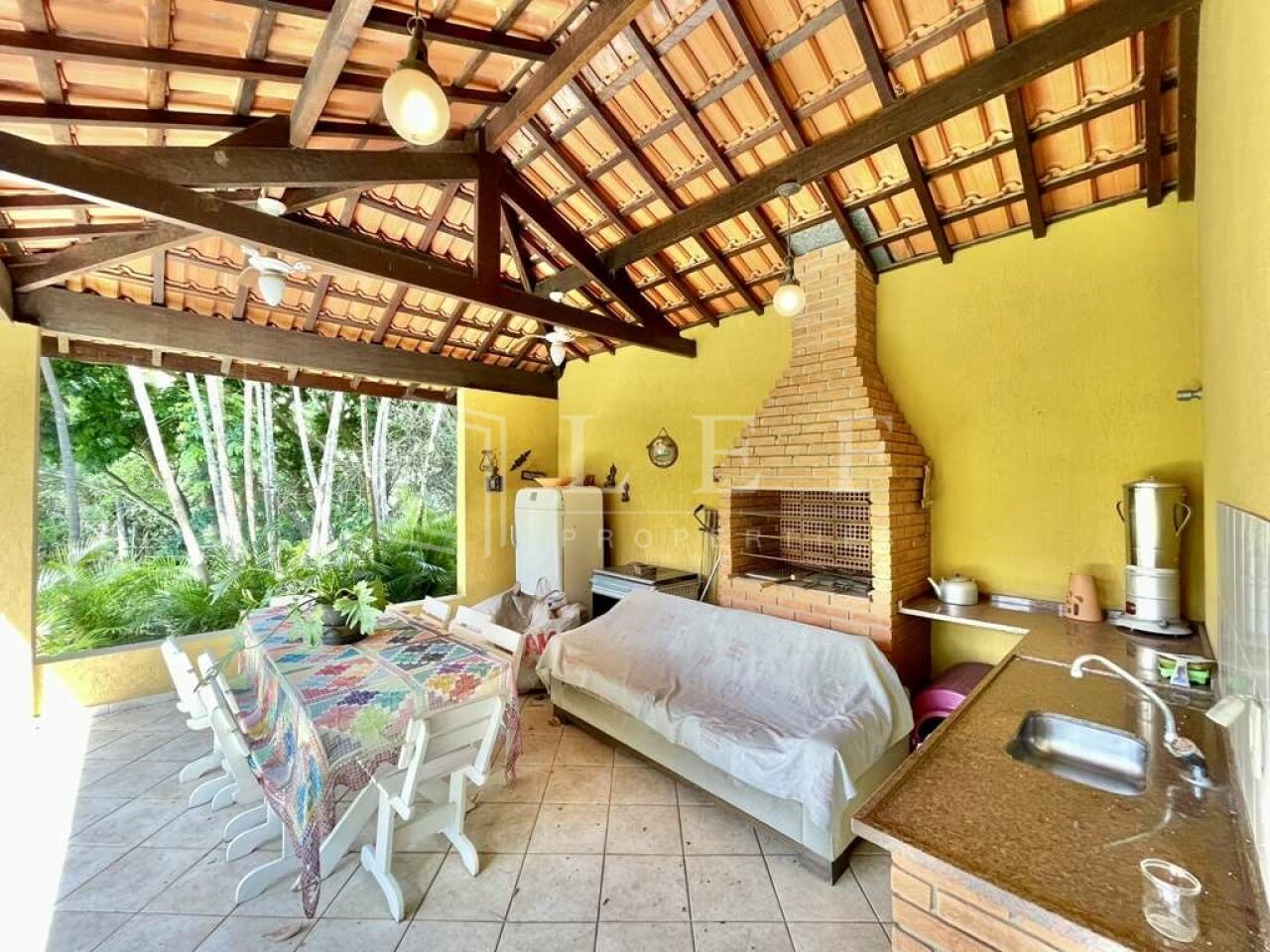 ANEXO GOURMET - Com churrasqueira, toldo retrátil, bancada de granito em ?L?, cuba inox e despensa.