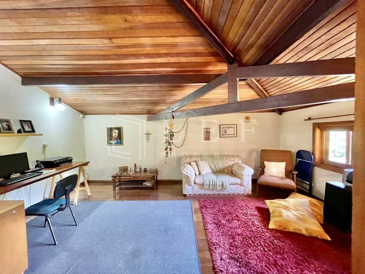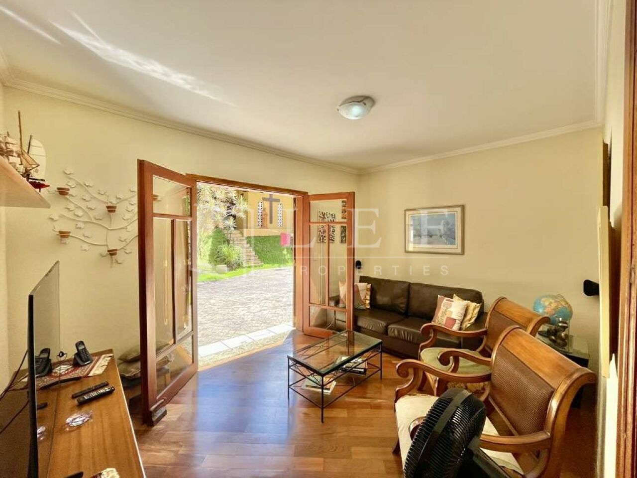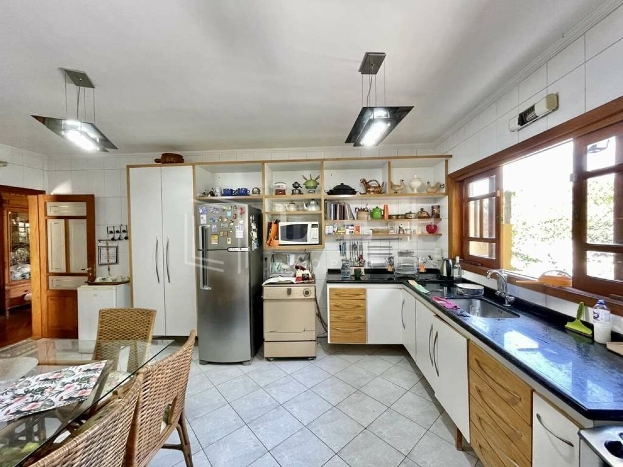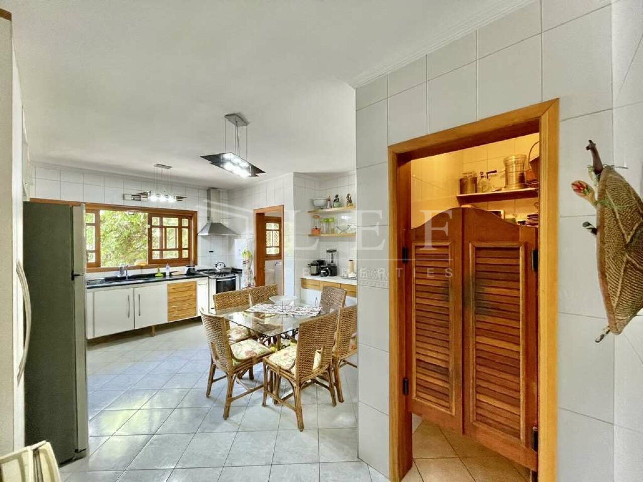 Portas e janelas em madeira e vidro.