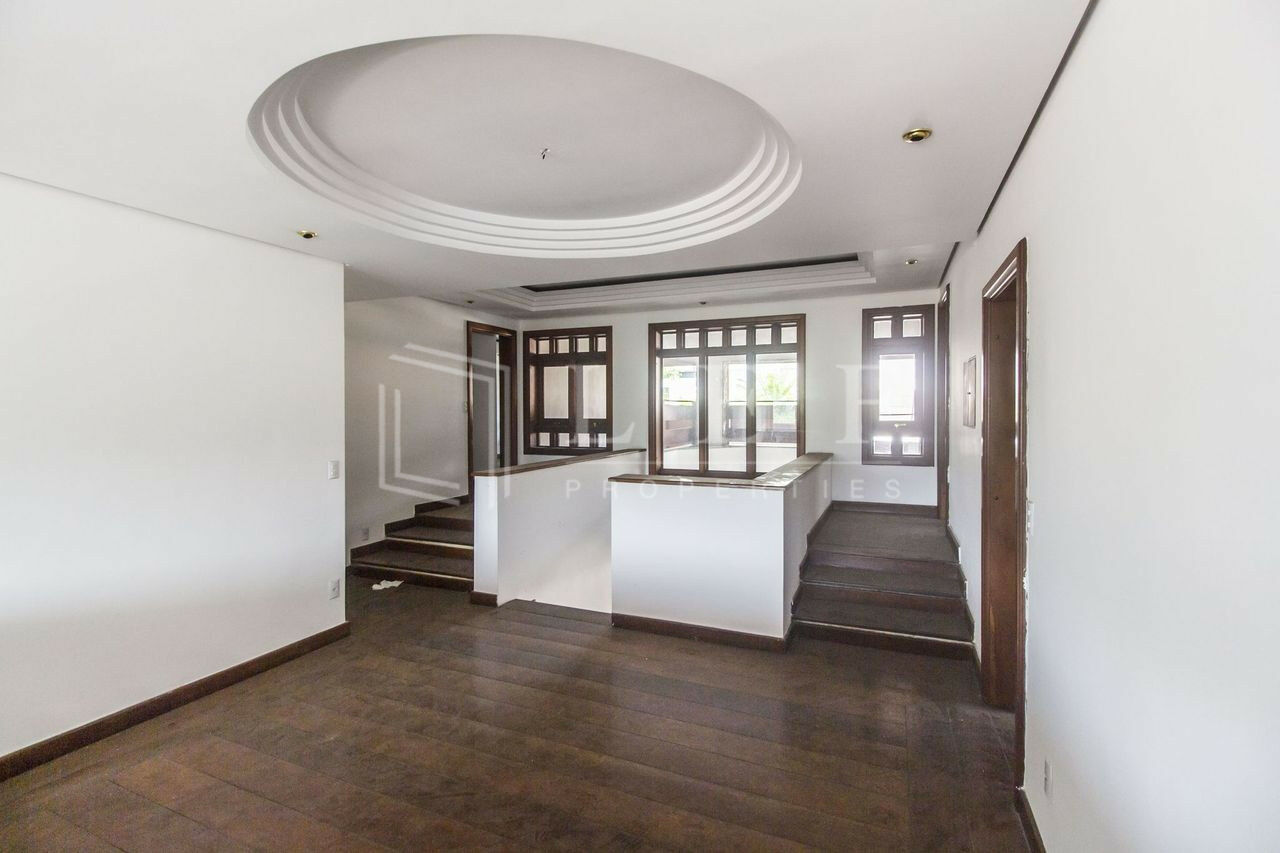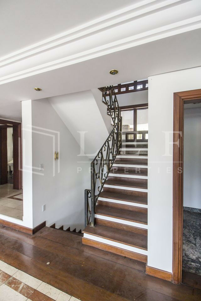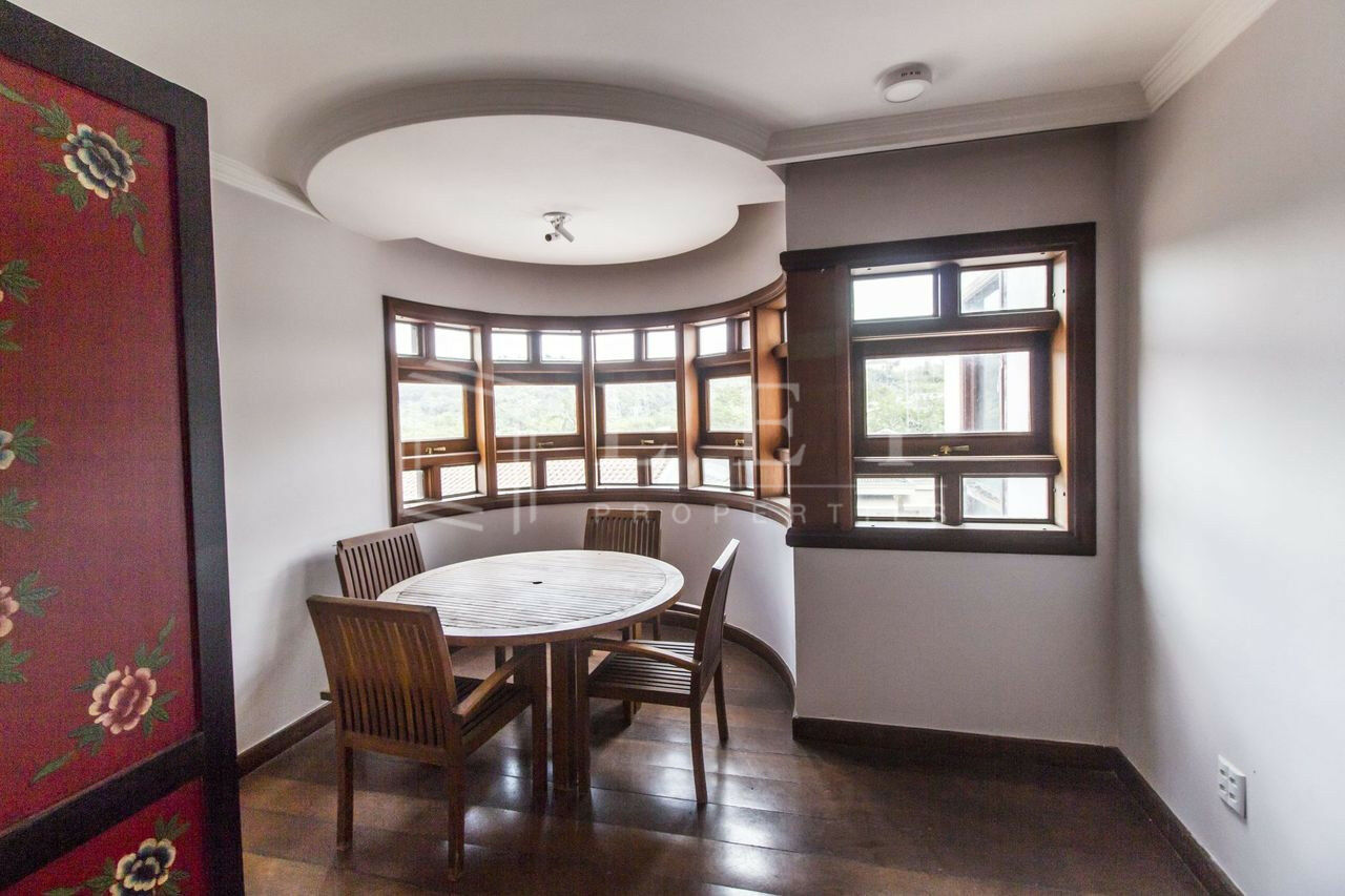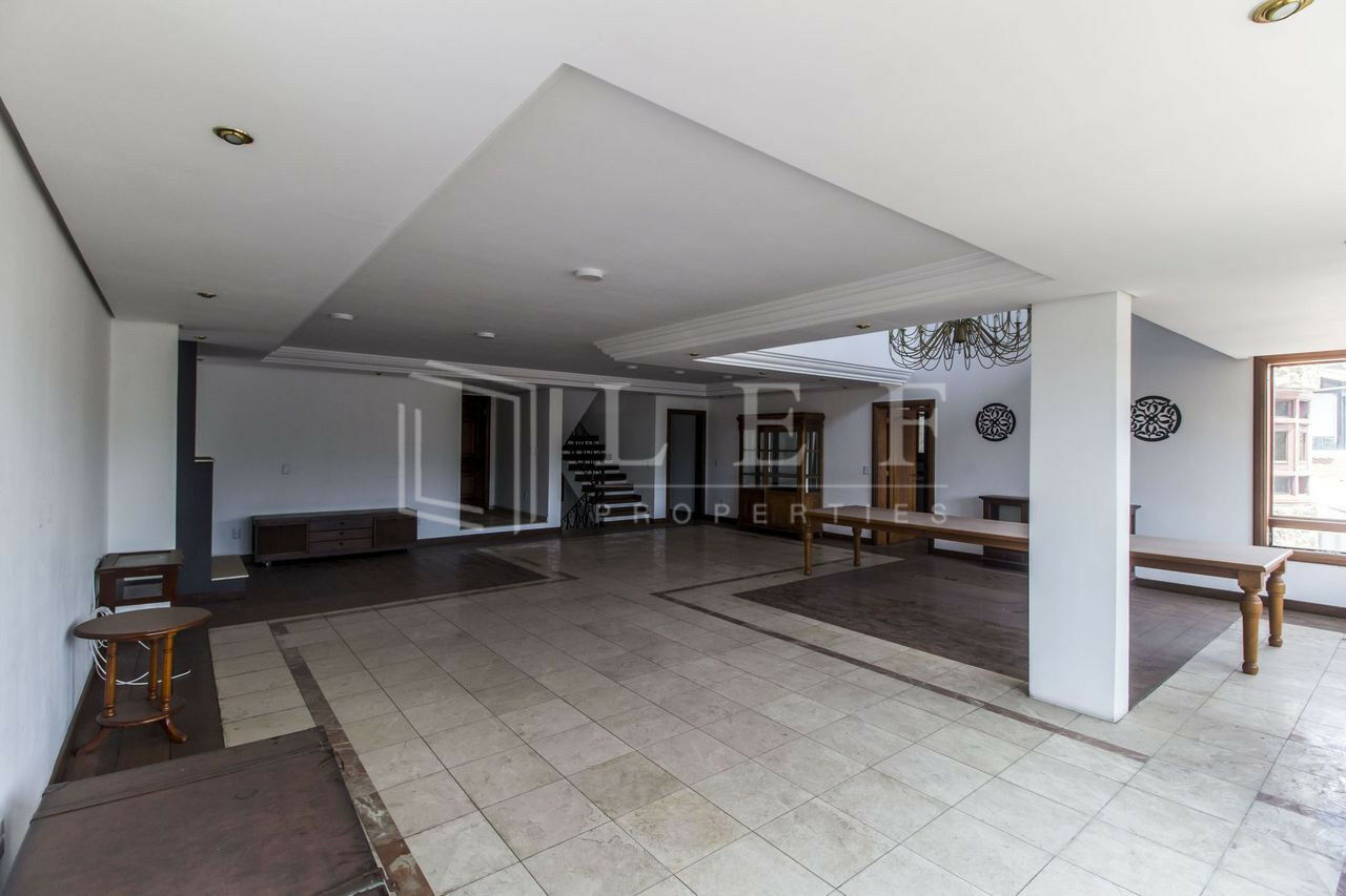 O imóvel conta ainda com salão na parte inferior com cozinha de apoio, ideal para eventos ou área de convivência independente, além de dois quartos de serviço. A garagem comporta quatro veículos.