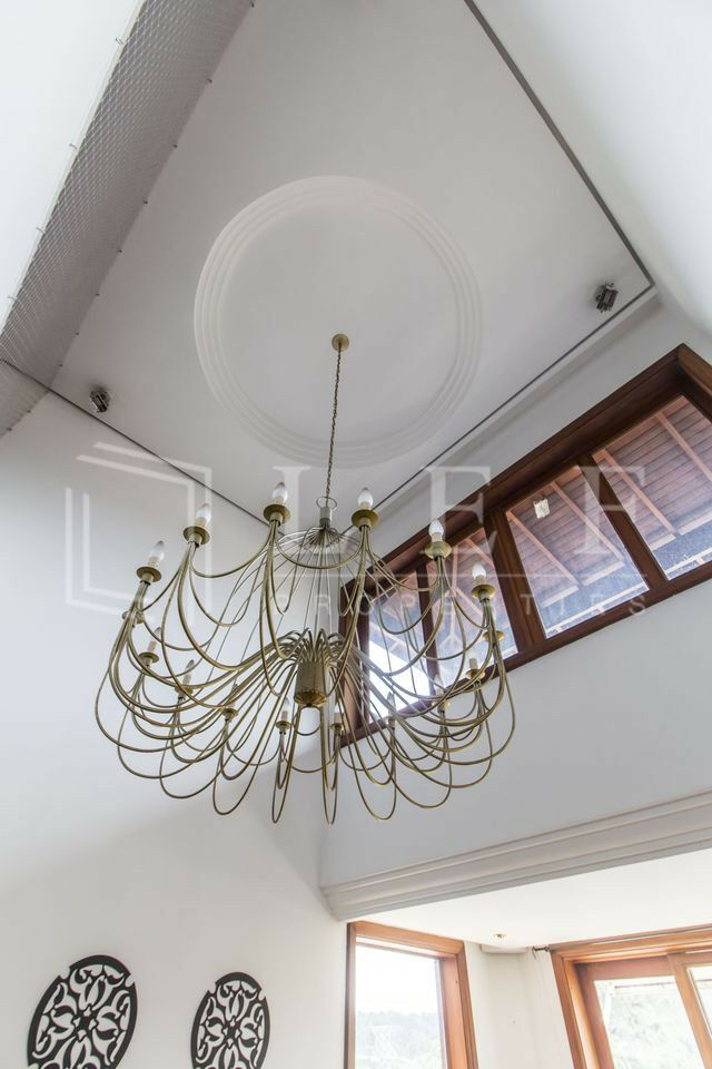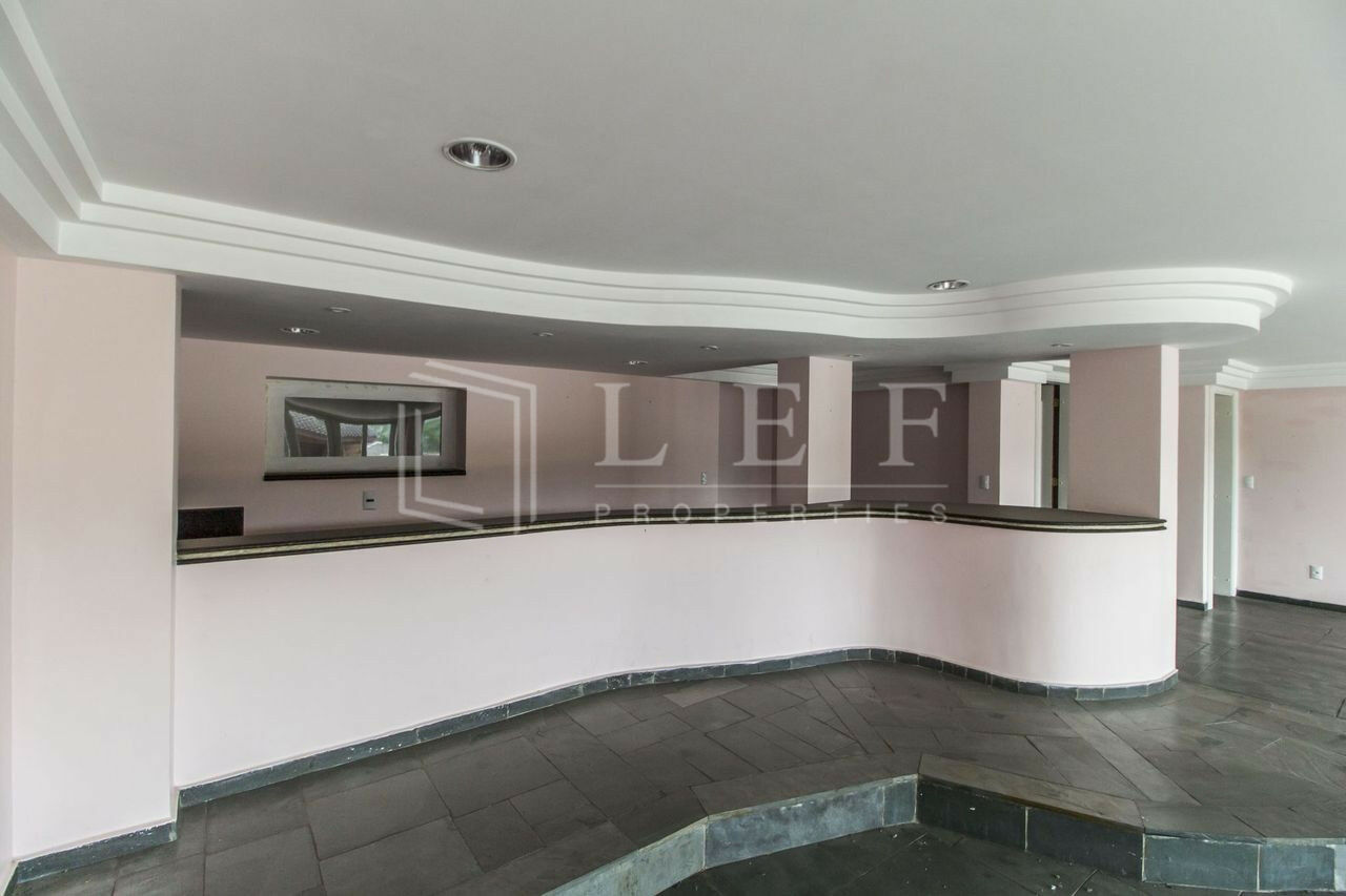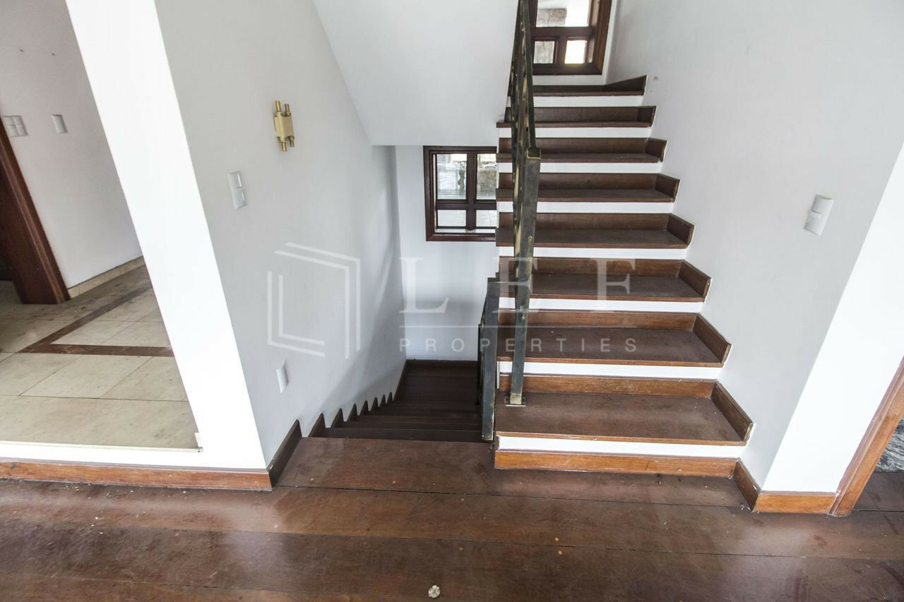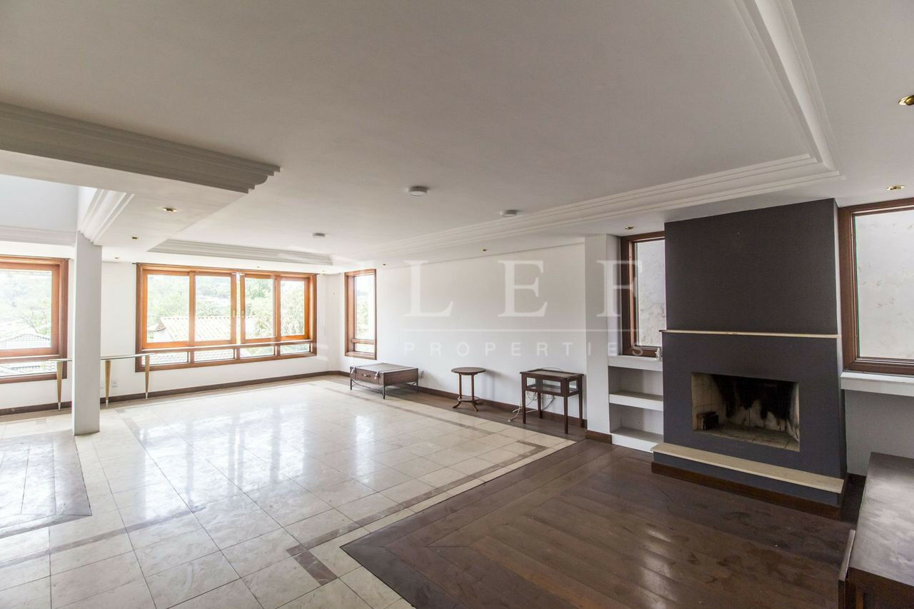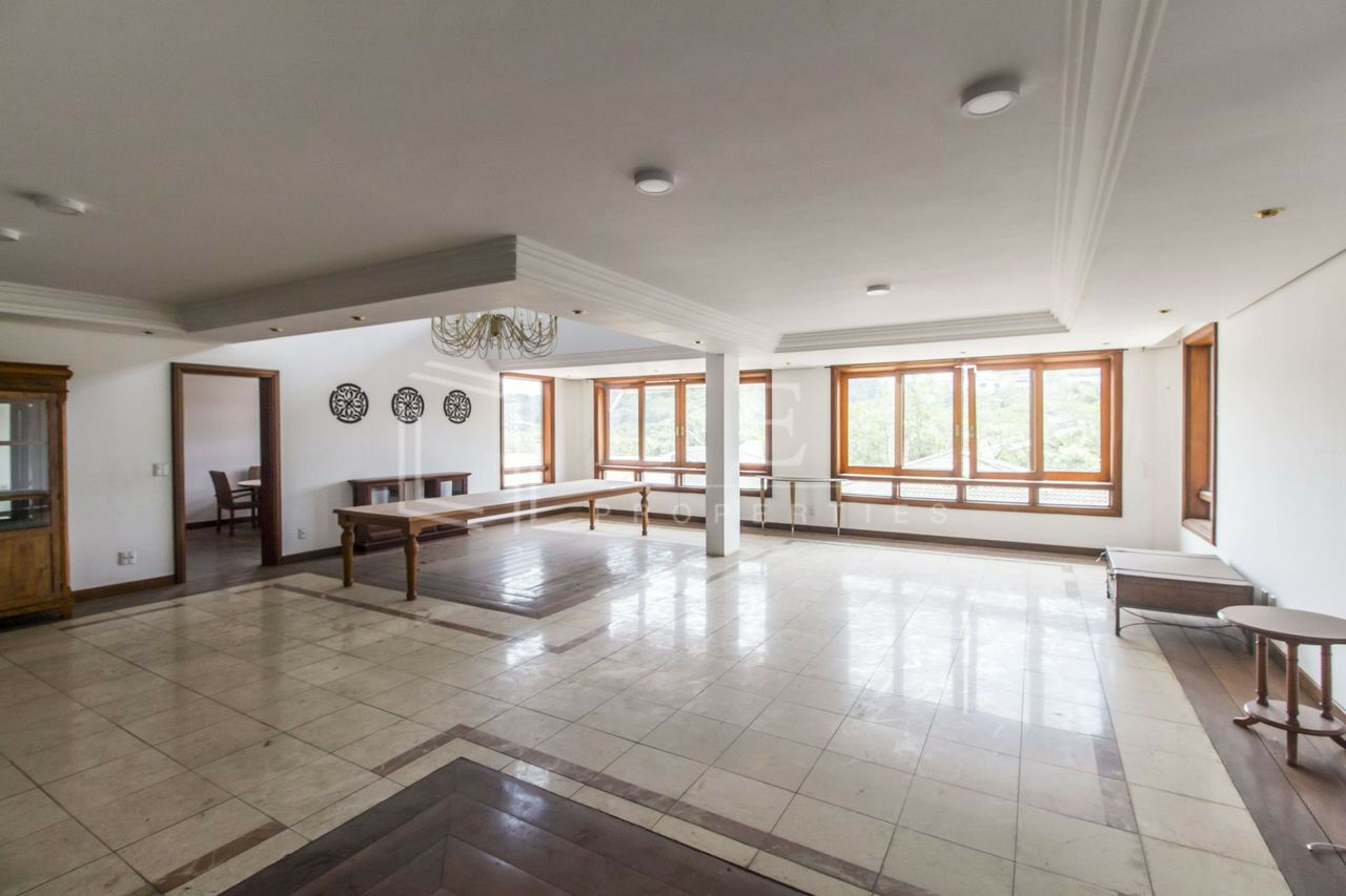 O imóvel conta ainda com salão na parte inferior com cozinha de apoio, ideal para eventos ou área de convivência independente, além de dois quartos de serviço. A garagem comporta quatro veículos.