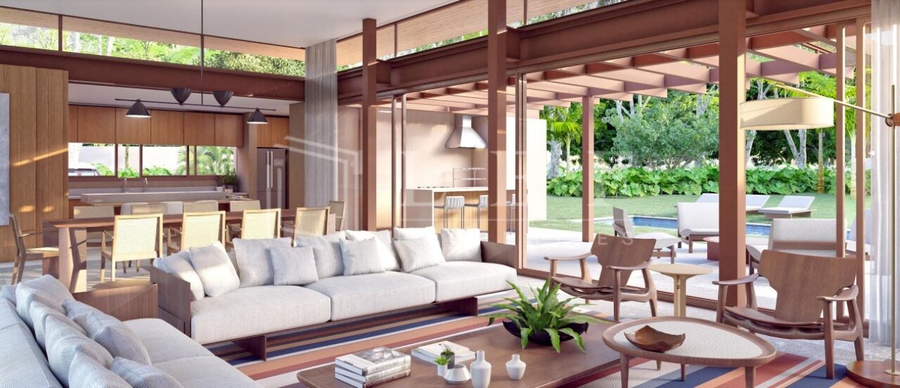 Projeto arrojado, sofisticação em cada detalhe, casa com 5 suítes, suíte master com banheiro sr. e sra. 734 m2, luz natural e muita área verde, sala de estar, sala de jantar, escritório, home theater reversível, cozinha com louceiro e despensa, adega, living integrado a piscina, rouparia,