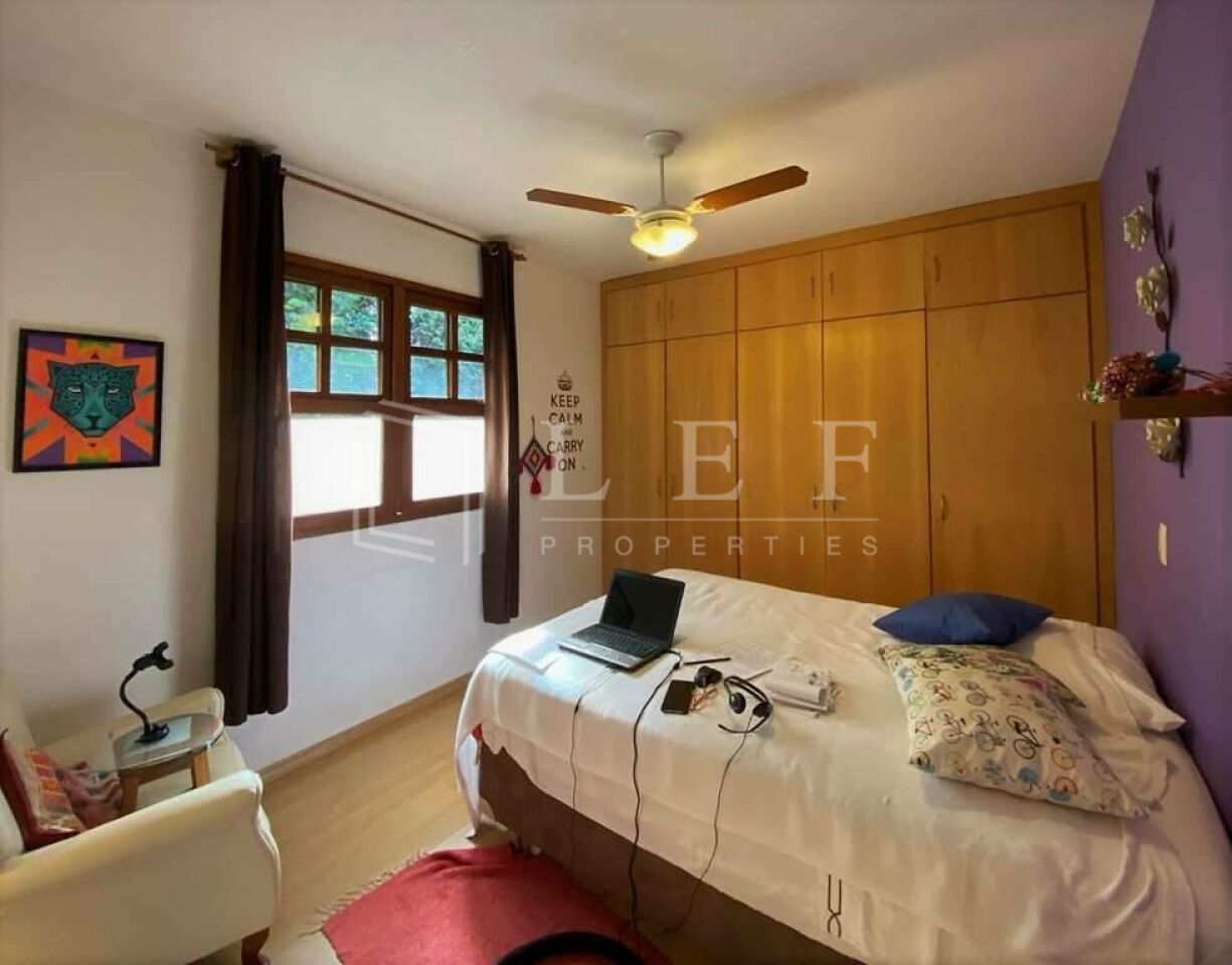 Ótima casa de campo térrea, em terreno amplo, com muita natureza e tranquilidade. 3 suítes com armários e ventiladores, sendo a master com closet. Banheiros com bancada, pia, espelho, gabinetes, bidê e box de vidro. Sendo a máster com tampo em mármore travertino. Salas de TV e escritório com lareira, estar e jantar. Garagem para 4 vagas, sendo 2 cobertas.