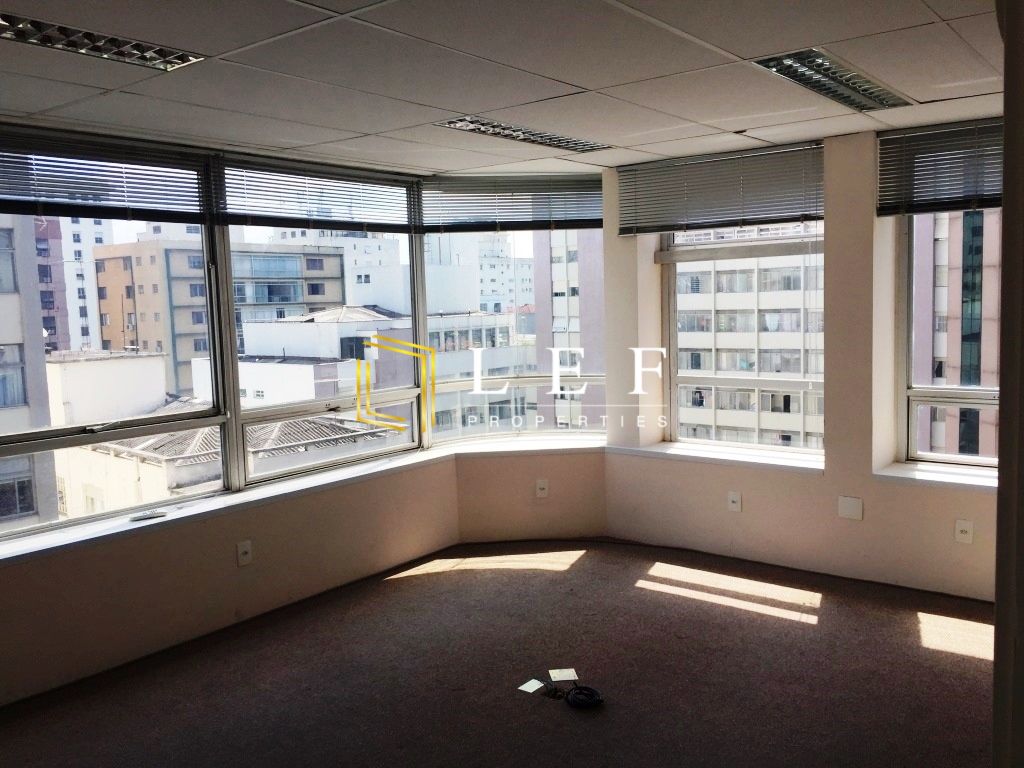Laje comercial para venda e locação em ótima localização e estado de conservação, próxima à Avenida Paulista. Possui rebaixo de teto com luminárias embutidas e ar condicionado, piso com canaletas e persianas. Distribuídas em recepção, 12 salas, 2 copas, CPD e 6 wc's.