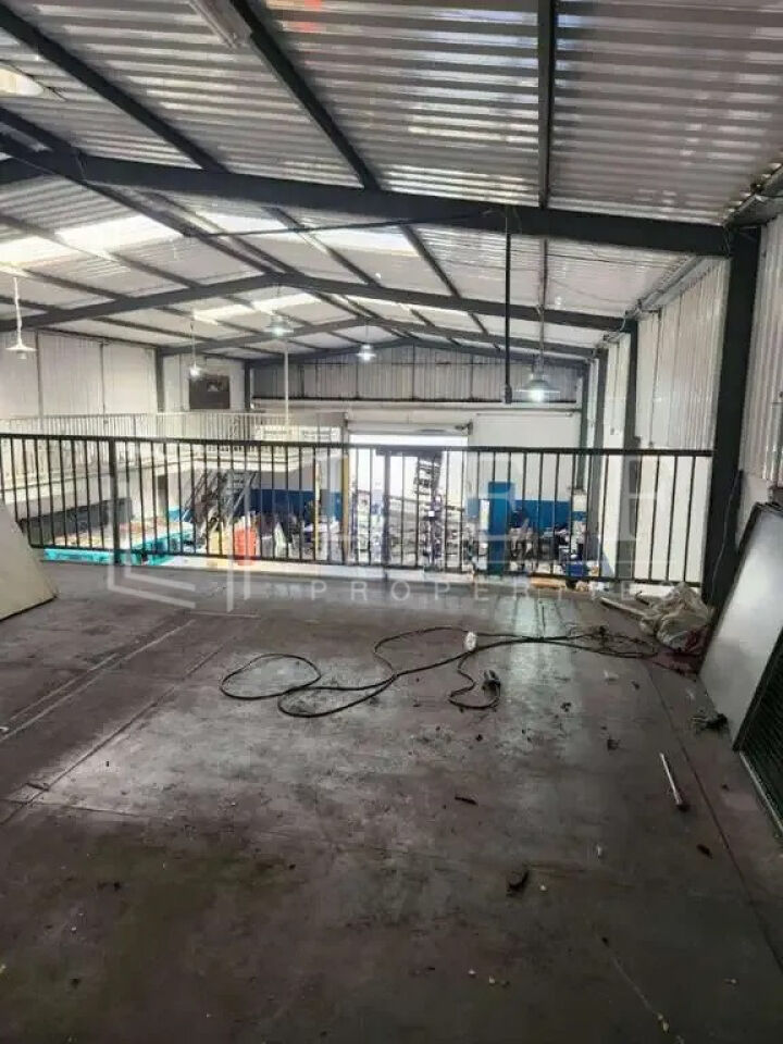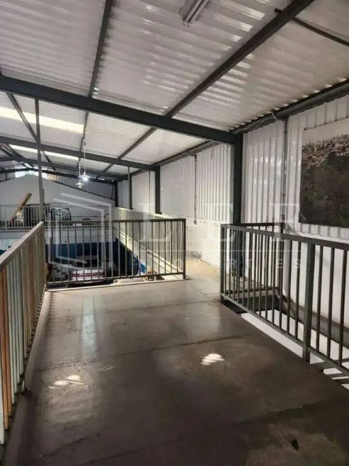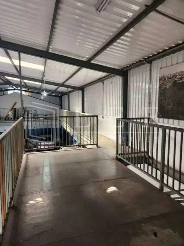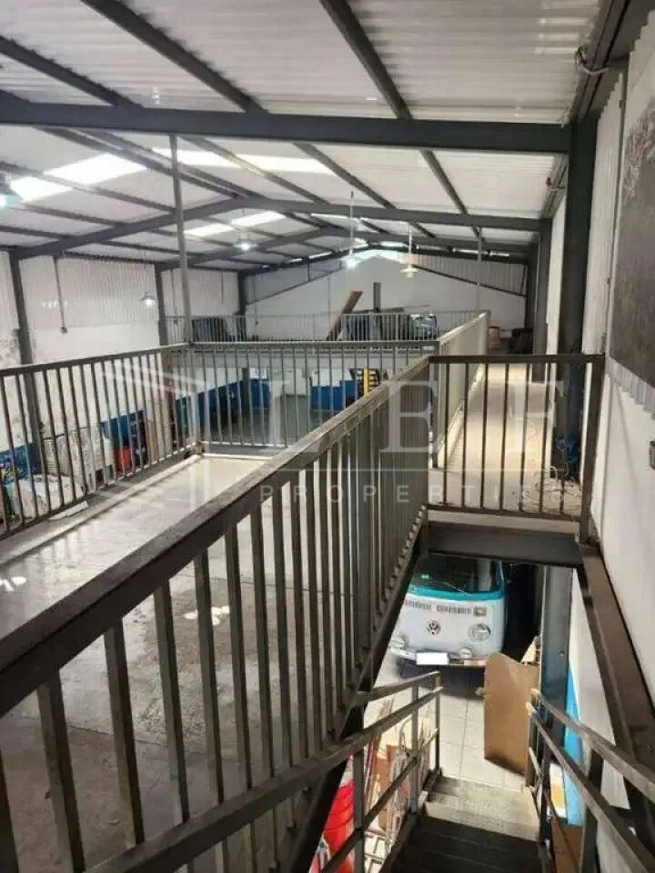 Dispõe de dois banheiros, área com tanque de lavar e dois cômodos de apoio que podem ser utilizados como escritório, almoxarifado ou vestiário. O mezanino oferece espaço adicional para área administrativa ou estoque.