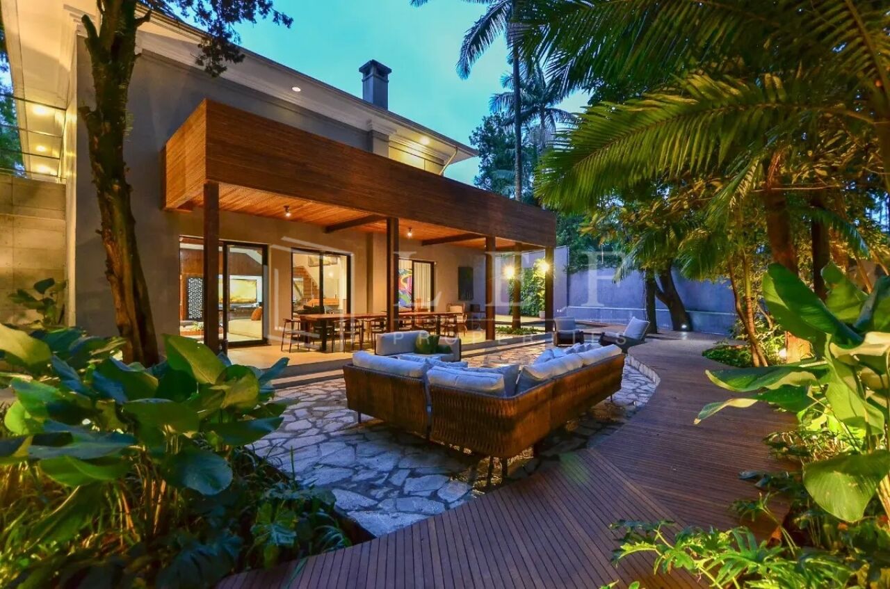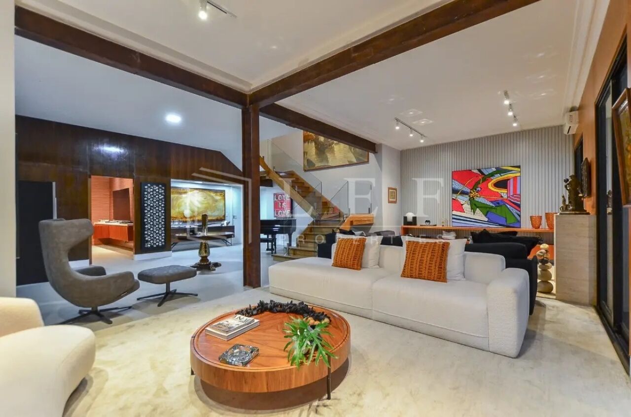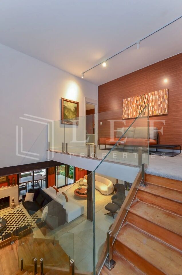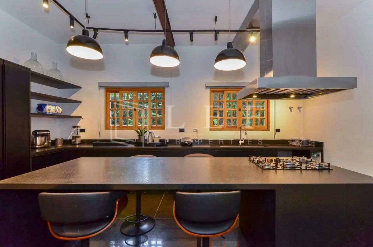 Amplo e iluminado living com decoração moderna, sofás design italianos (vitra), janelas grandes com anti ruido, lareira, sala de tv extremamente confortável com sistema de som, escadas de madeira com uma ante sala, trazendo em sua área íntima 3 suítes amplas com closet, mais 1 suíte Master com closet, sala e 2 banheiros com pias duplas, banheira, portas blindadas e ar condicionado, com uma vista espetacular para o jardim e para a piscina, com extremo bom gosto em sua decoração criam um cenário perfeito para noites tranquilas.
