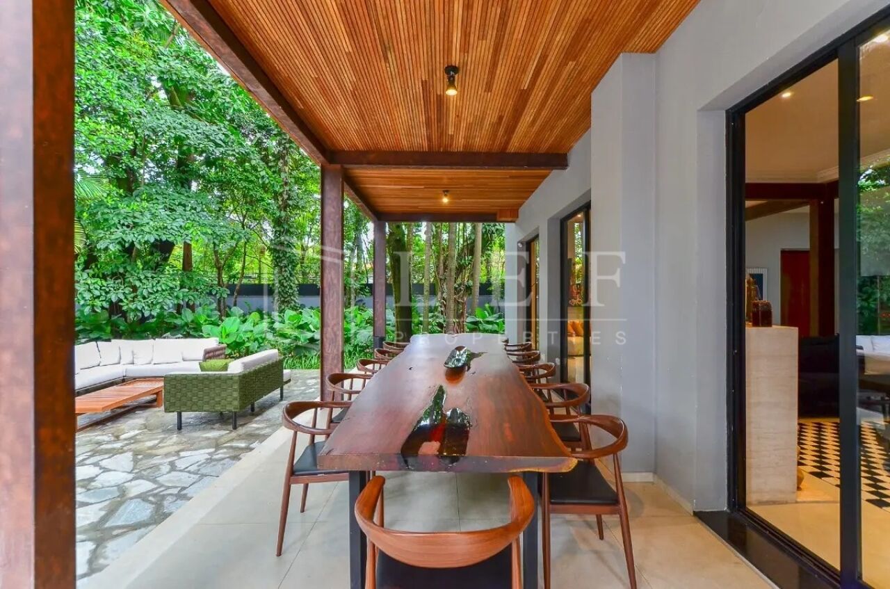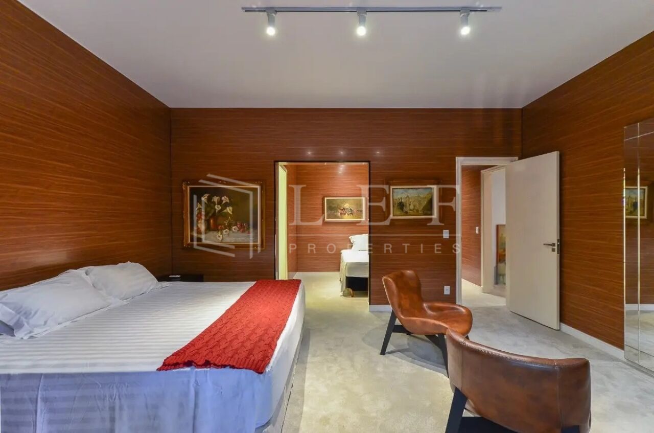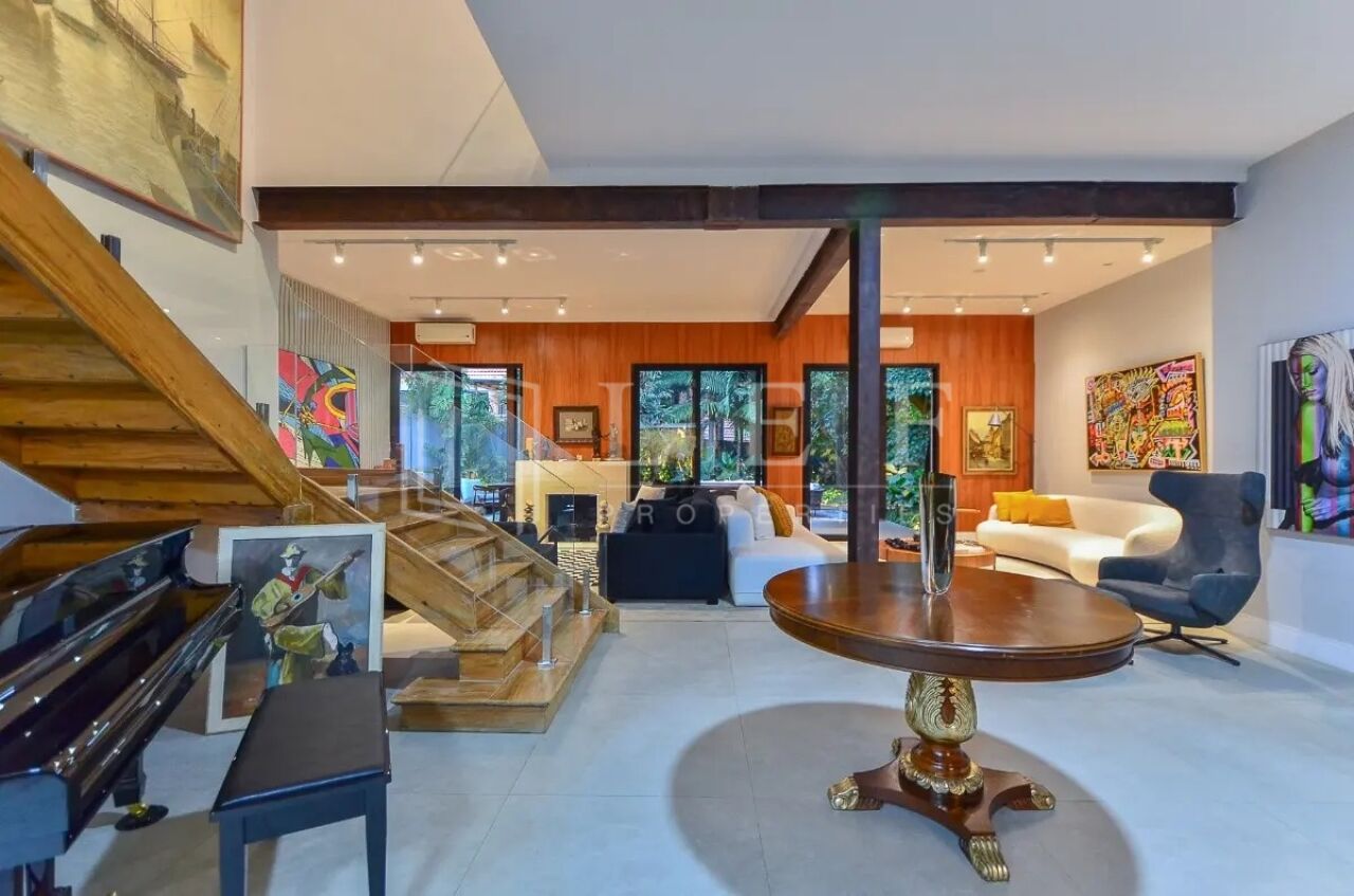 Amplo e iluminado living com decoração moderna, sofás design italianos (vitra), janelas grandes com anti ruido, lareira, sala de tv extremamente confortável com sistema de som, escadas de madeira com uma ante sala, trazendo em sua área íntima 3 suítes amplas com closet, mais 1 suíte Master com closet, sala e 2 banheiros com pias duplas, banheira, portas blindadas e ar condicionado, com uma vista espetacular para o jardim e para a piscina, com extremo bom gosto em sua decoração criam um cenário perfeito para noites tranquilas.